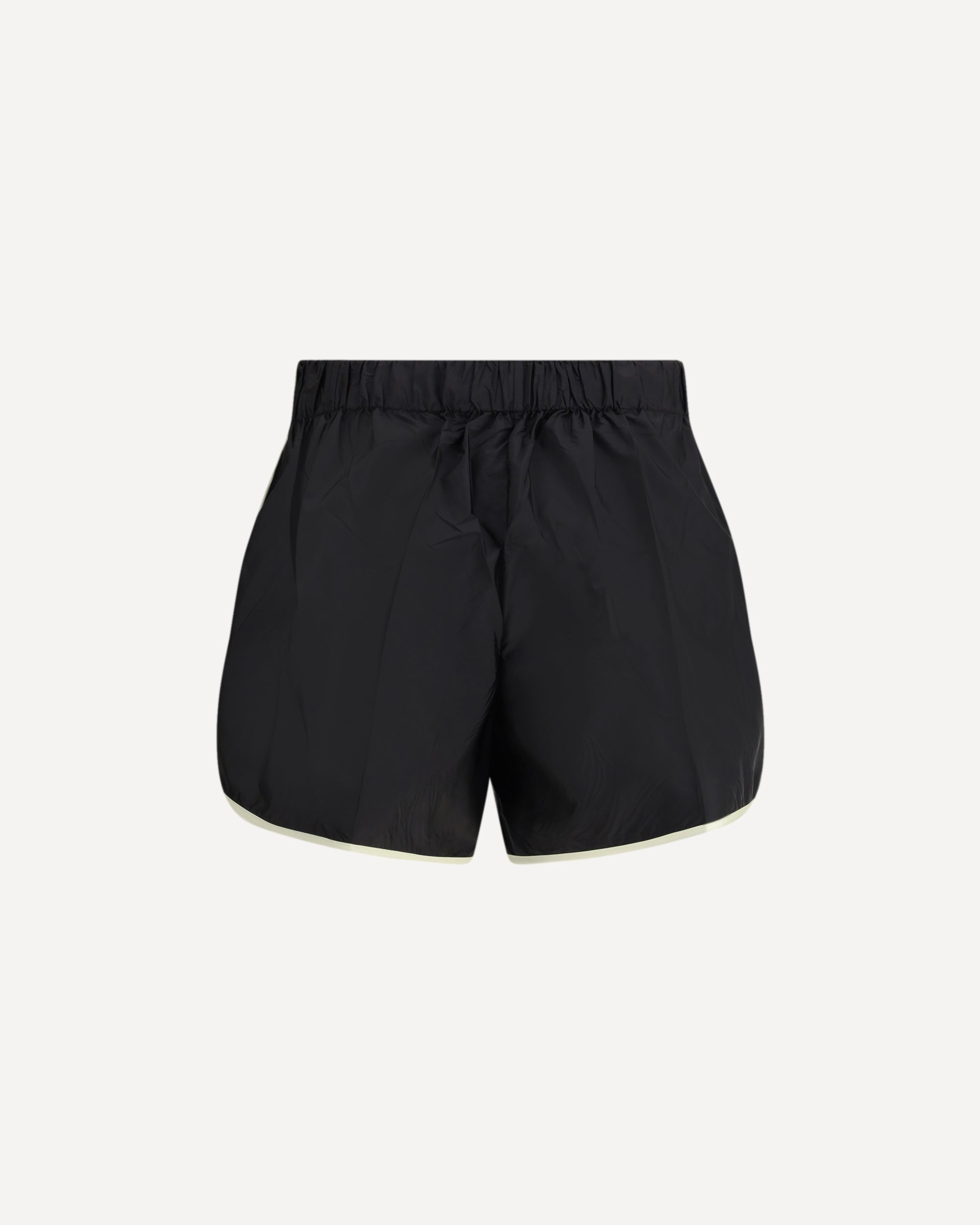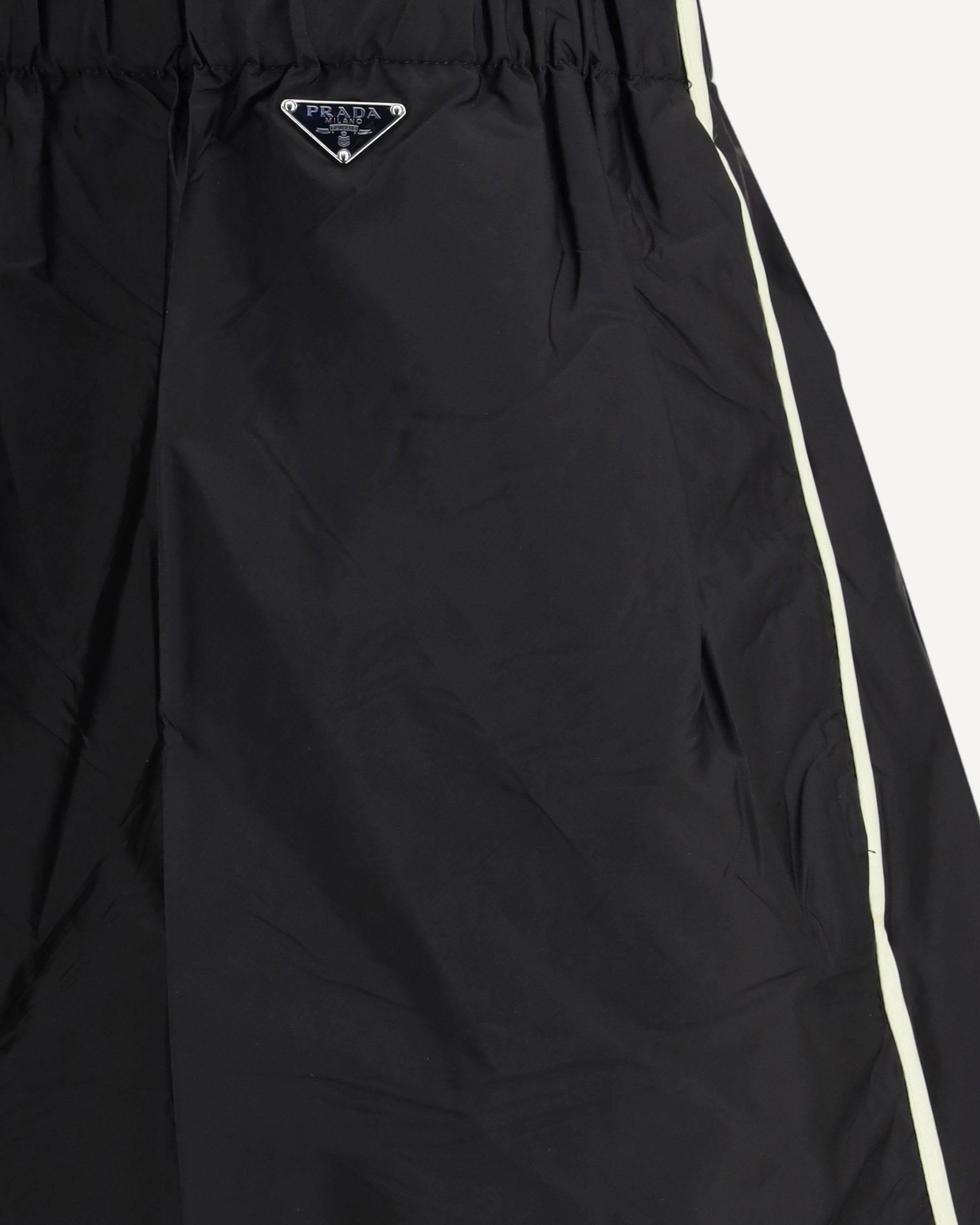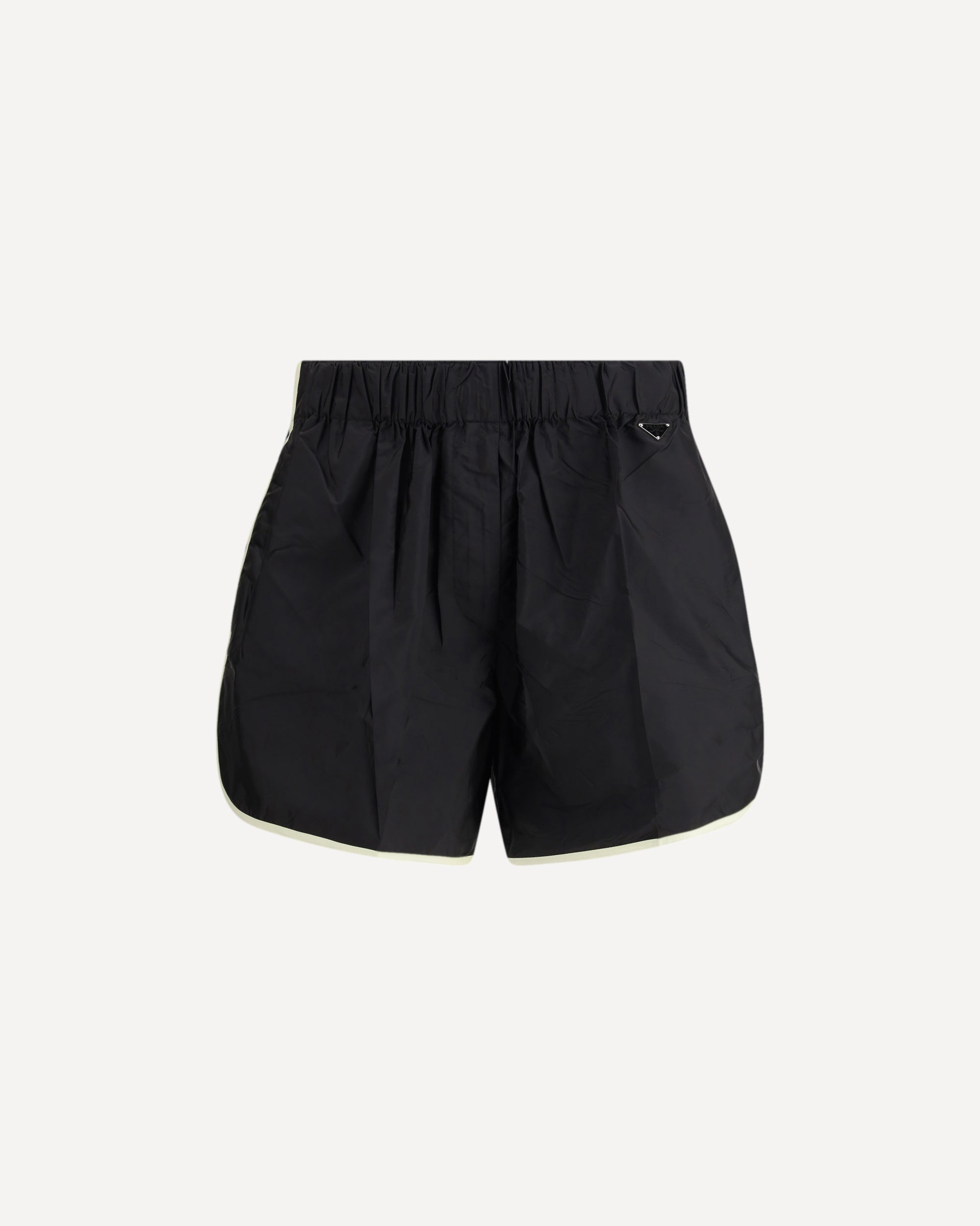 The lightweight Re-Nylon Shorts by Prada feature a sporty, functional design crafted from regenerated nylon made from recycled ocean plastics. The oversized silhouette is shaped by an elasticated waistband with an adjustable drawstring, while the side detail with an oblique cut adds a dynamic touch. The unlined construction is finished with a hem and topstitching and completed with the signature enameled metal triangle.