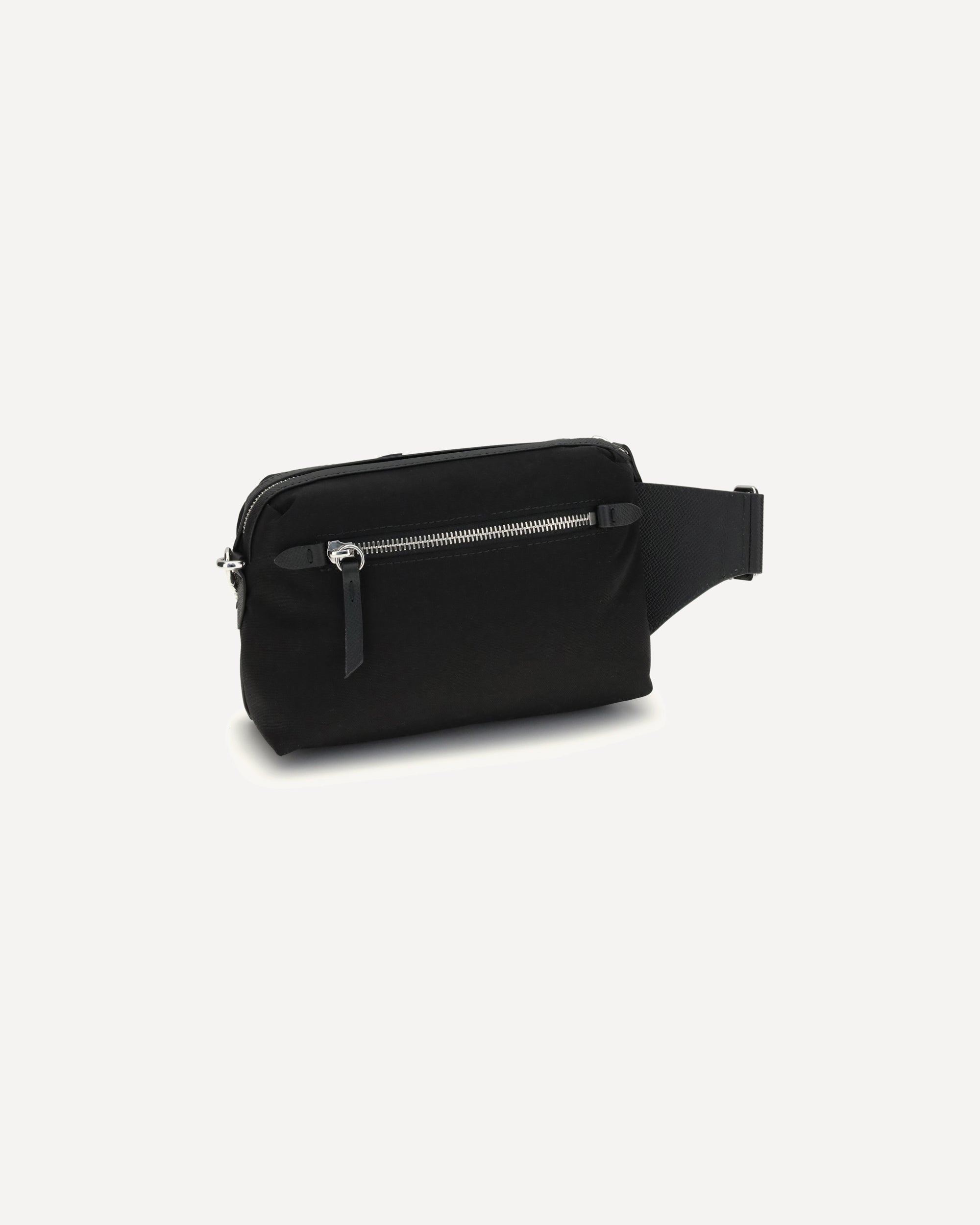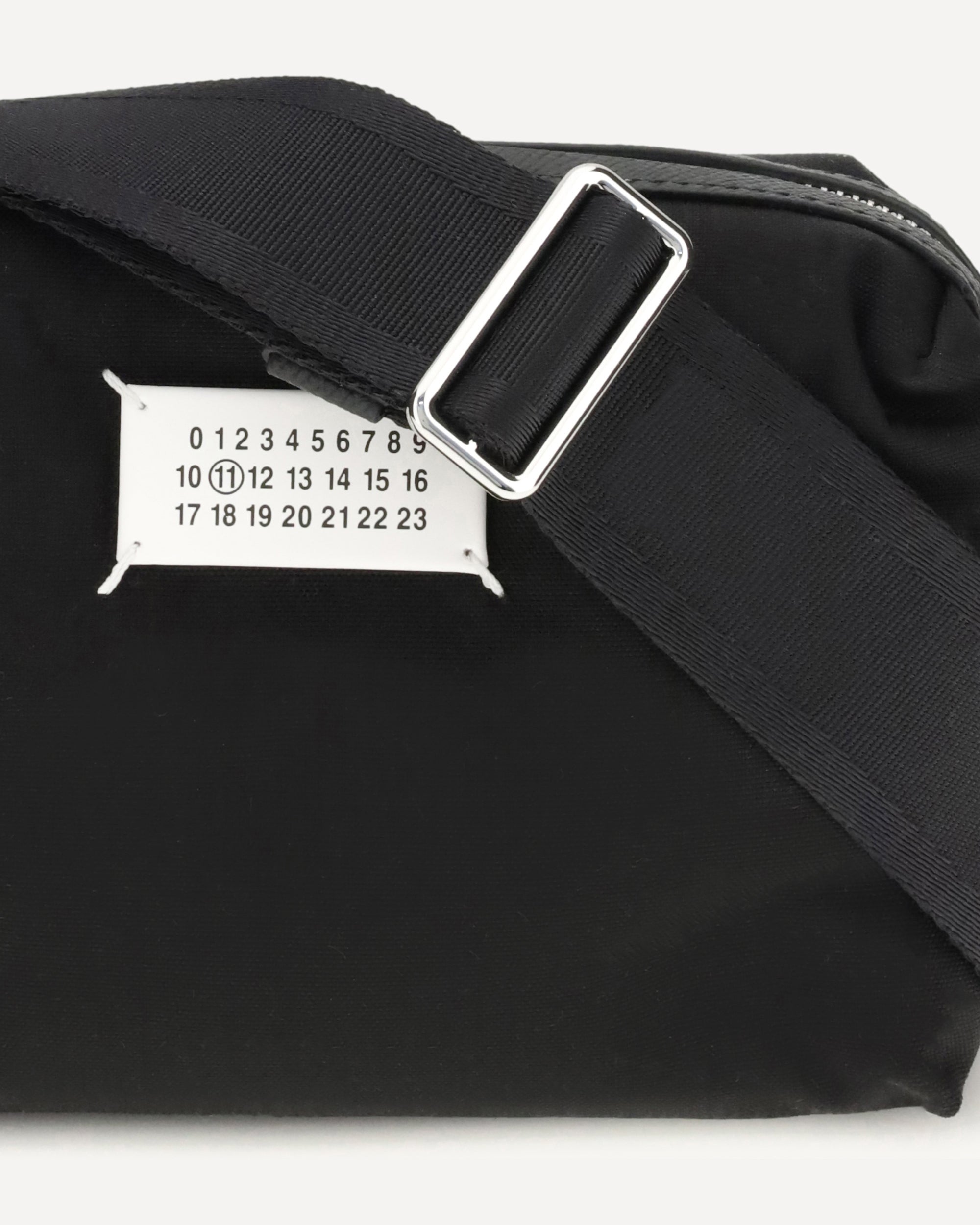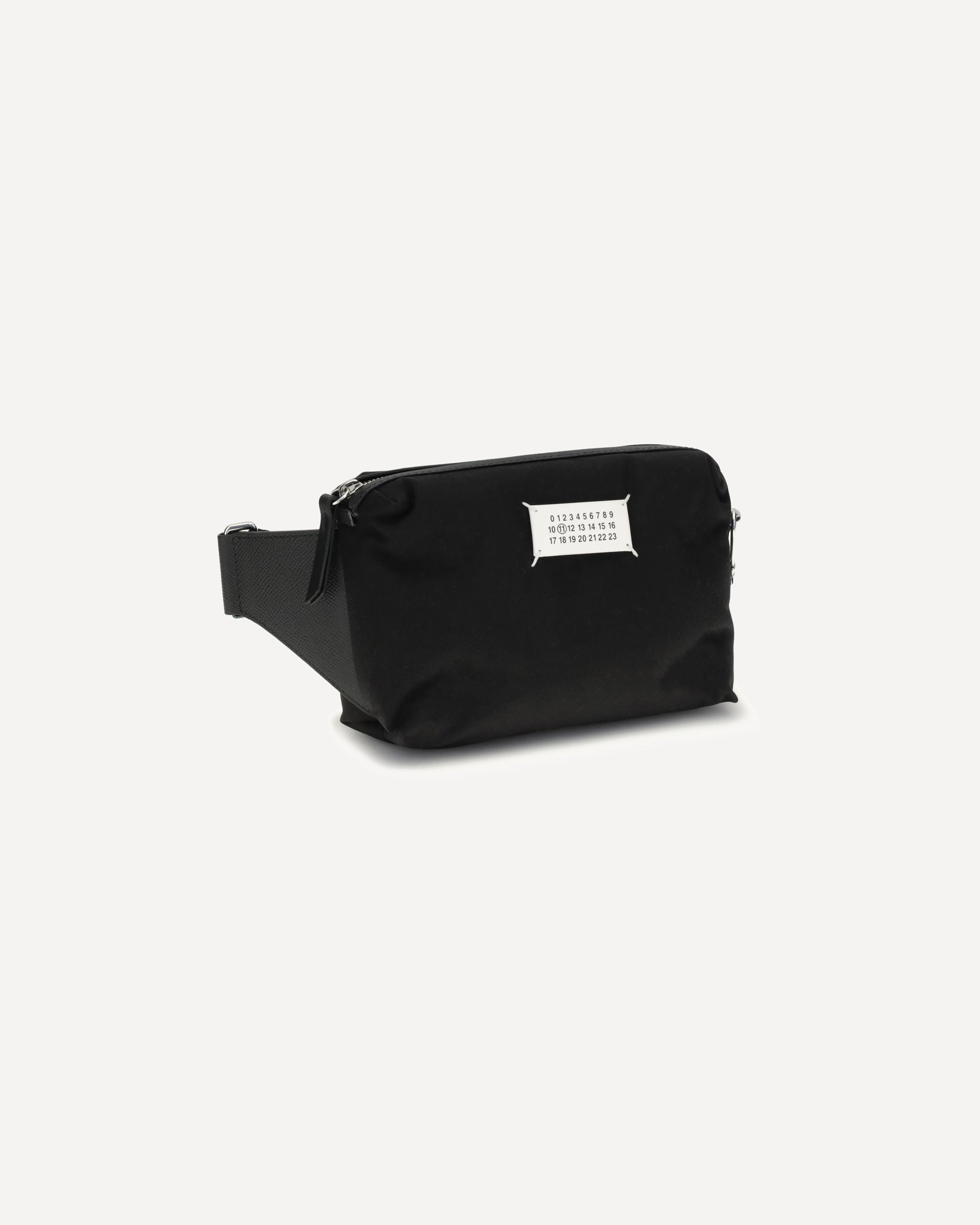 Nylon Fanny Pack by Margiela features silver-tone detailing and a distinctive logo applique on the front. Featuring an adjustable waistband, it offers a back zippered pocket and a top closure that is also zippered, with a single internal compartment to conveniently organize essentials.
