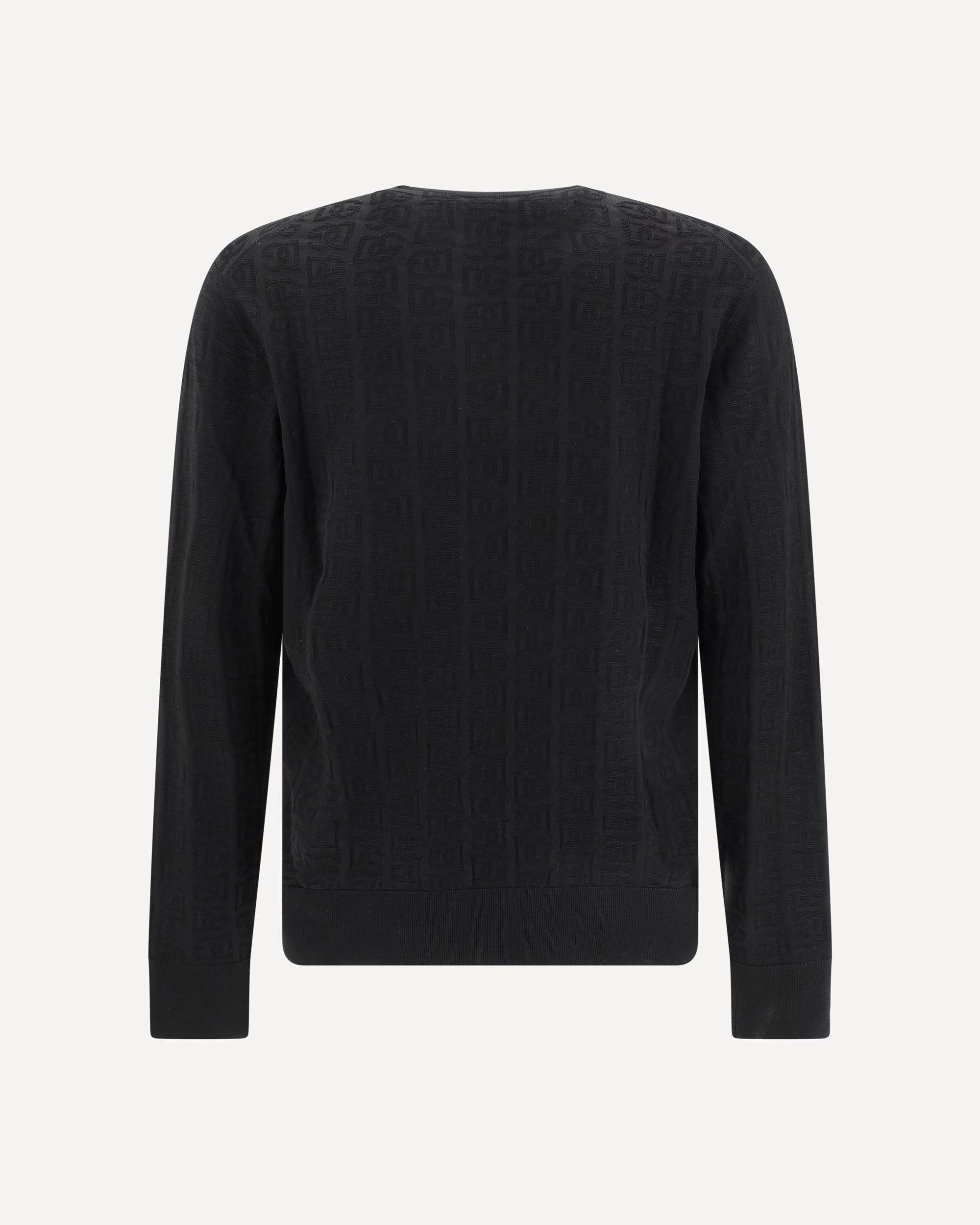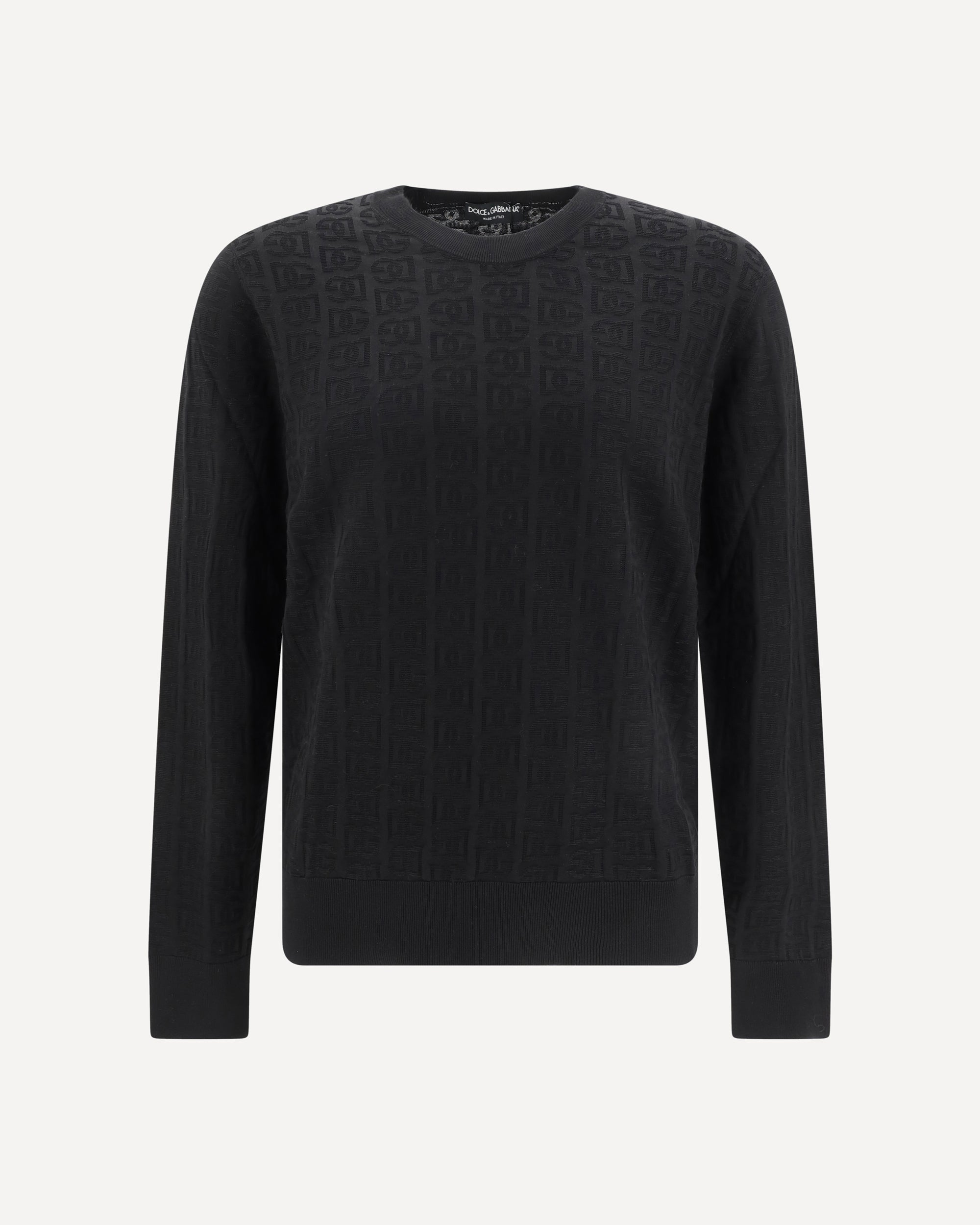 Dolce & Gabbana's silk Sweater is an elegant and sophisticated piece, perfect for those seeking a refined and timeless look. Featuring a ribbed collar, cuffs and hem that are also ribbed, the sweater offers a comfortable fit and a clean silhouette. The jacquard weave is embellished with the brand's DG logo that adds a touch of recognition without being too flashy. The monochrome pattern lends an elegant and versatile look that is easily adaptable to various pairings, from the most casual to the most formal.