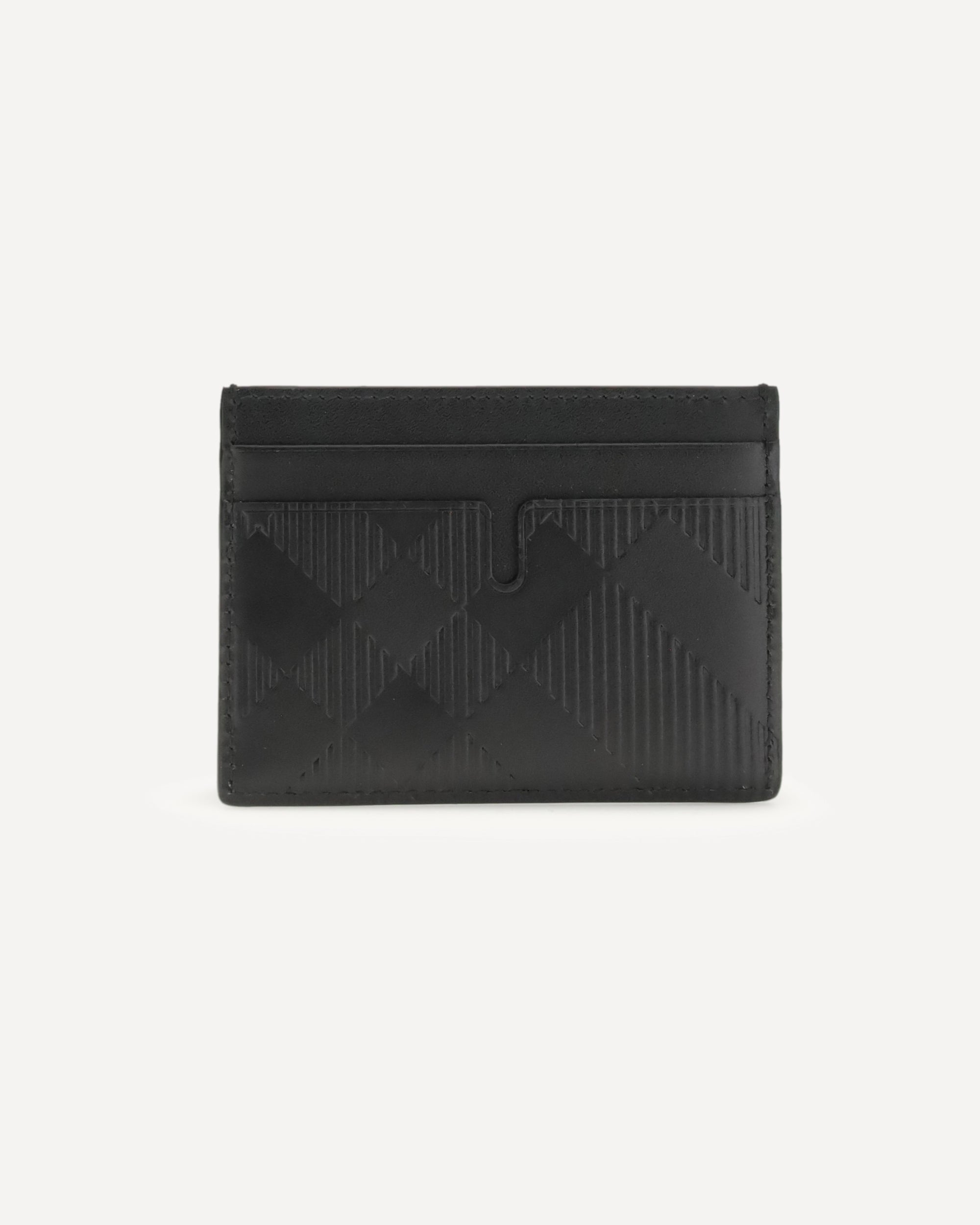 The leather Card Holder by Burberry is a stylish and practical accessory perfect for keeping your essentials in order. Made of high-quality leather, it features two slots on the front and two on the back for cards, as well as an additional interior pocket for added functionality. The tone-on-tone Check pattern on the leather adds a sophisticated and understated detail while maintaining the brand's distinctive elegance. Compact and refined, it is ideal for those seeking a functional and classy card holder.