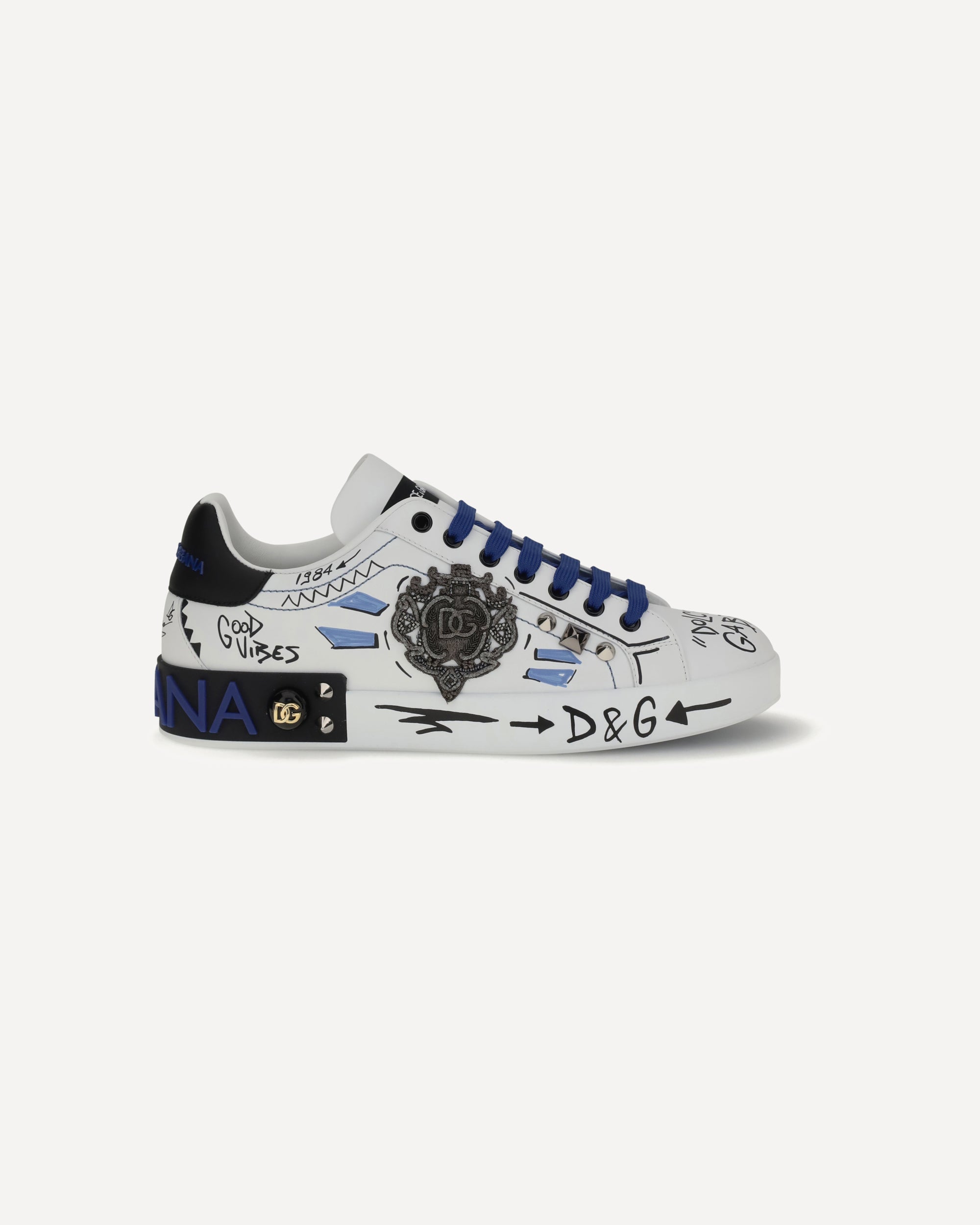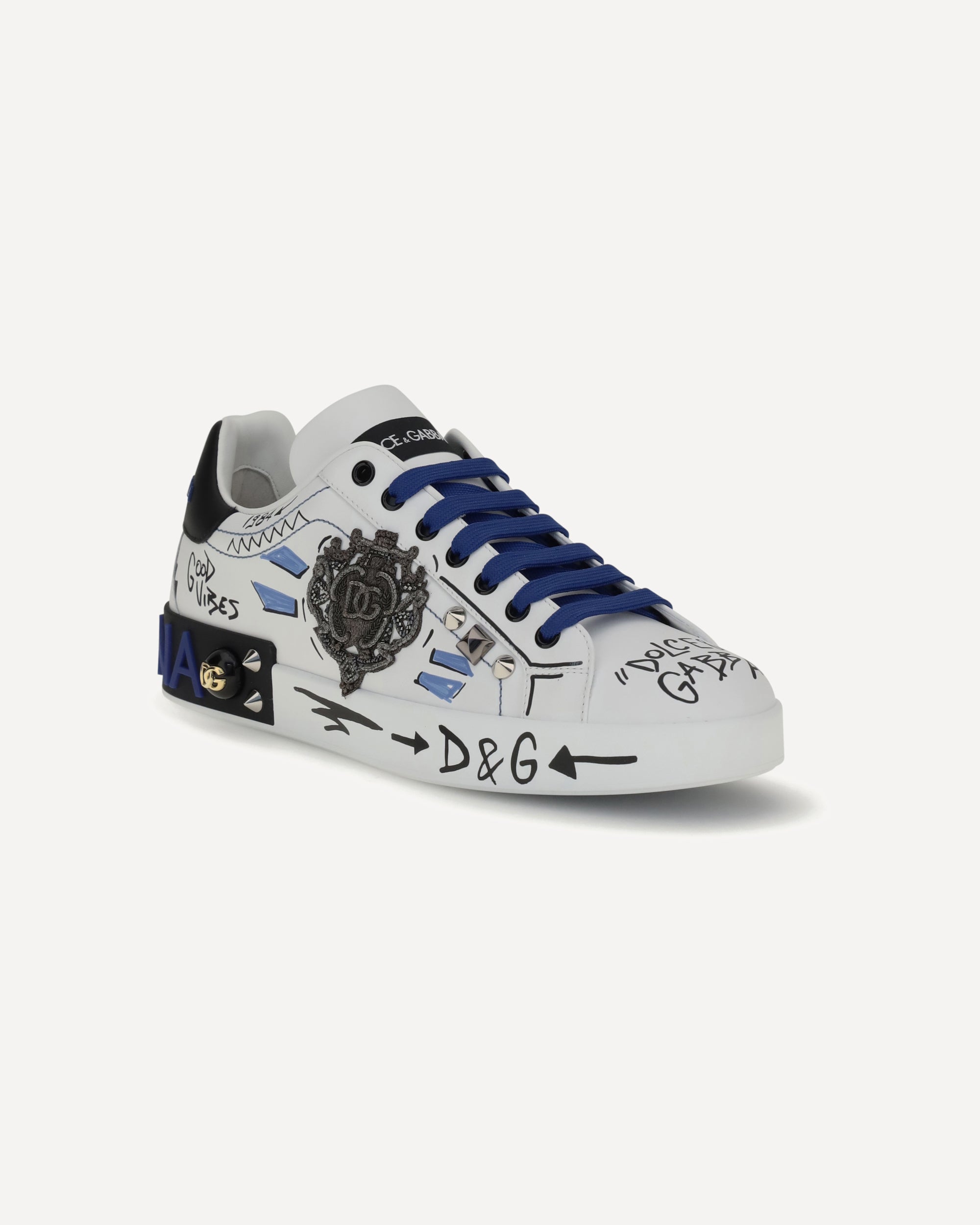 Dolce&Gabbana's Portofino Sneakers embody an urban, refined style. Made of tasseled calfskin leather, they feature a micro-injected rubber logo heel and contrasting flat laces. The leather sockliner with logo-embossed label ensures comfort and attention to detail, while a logo-embossed rubber sole and bottom complete the design with a distinctive touch.
