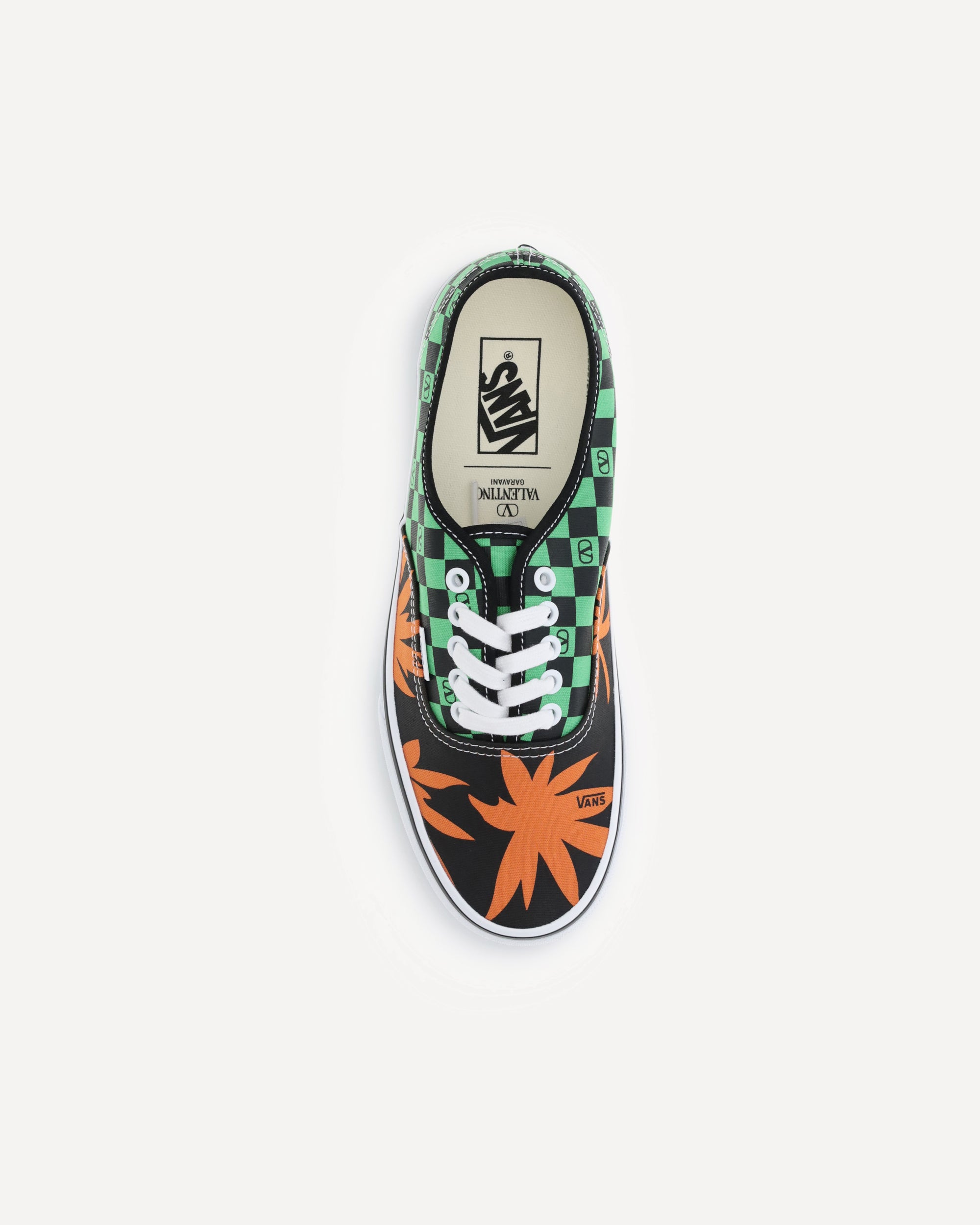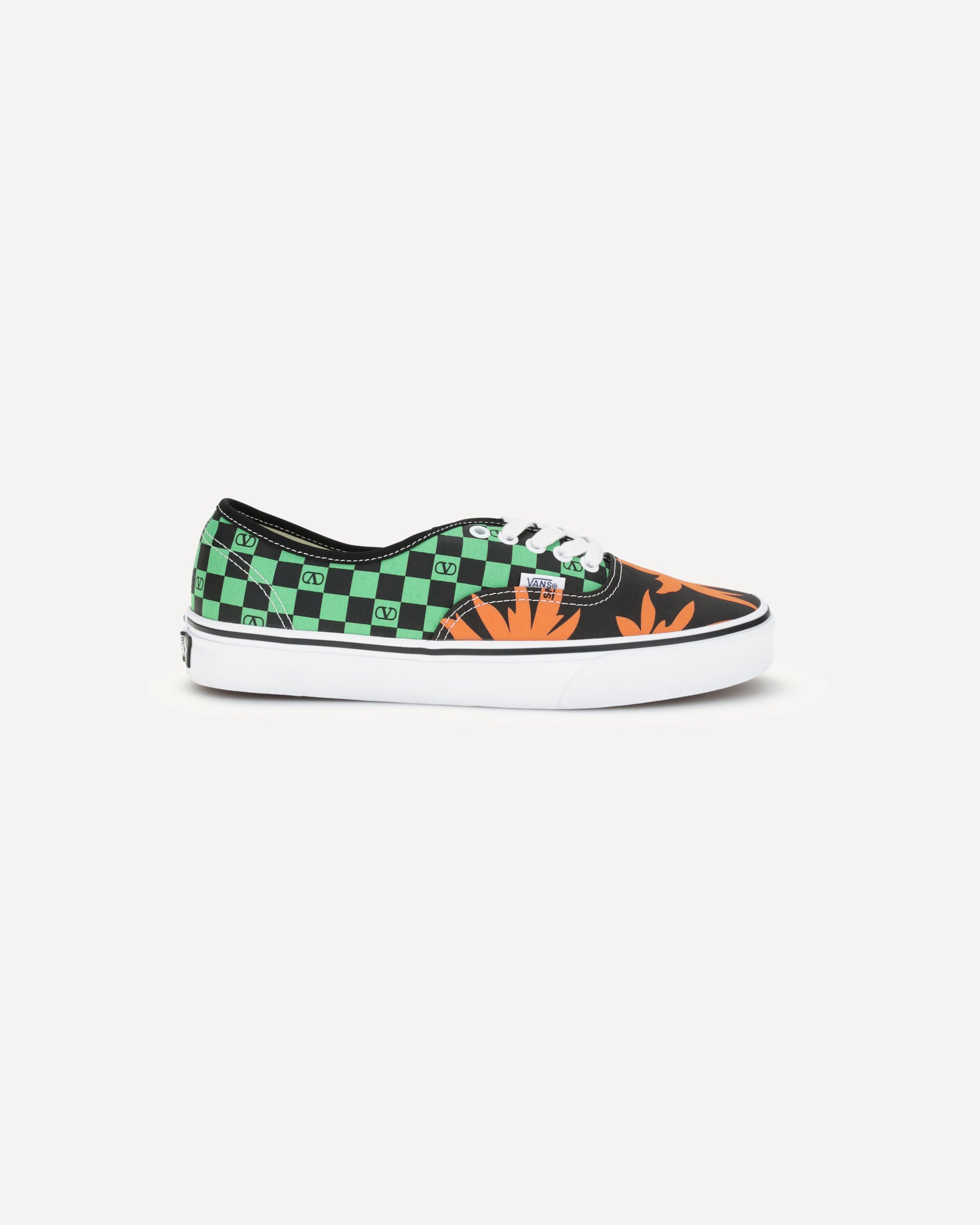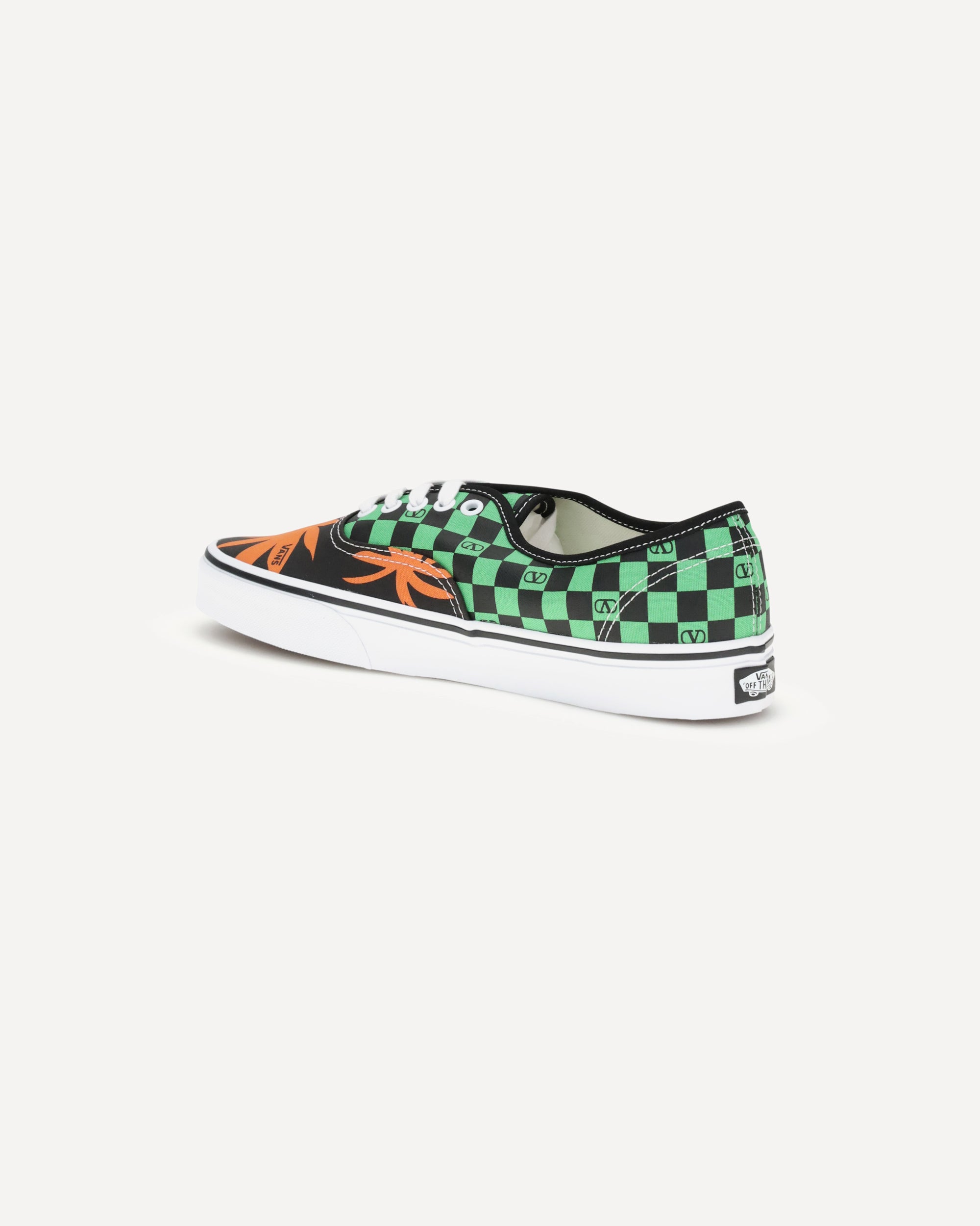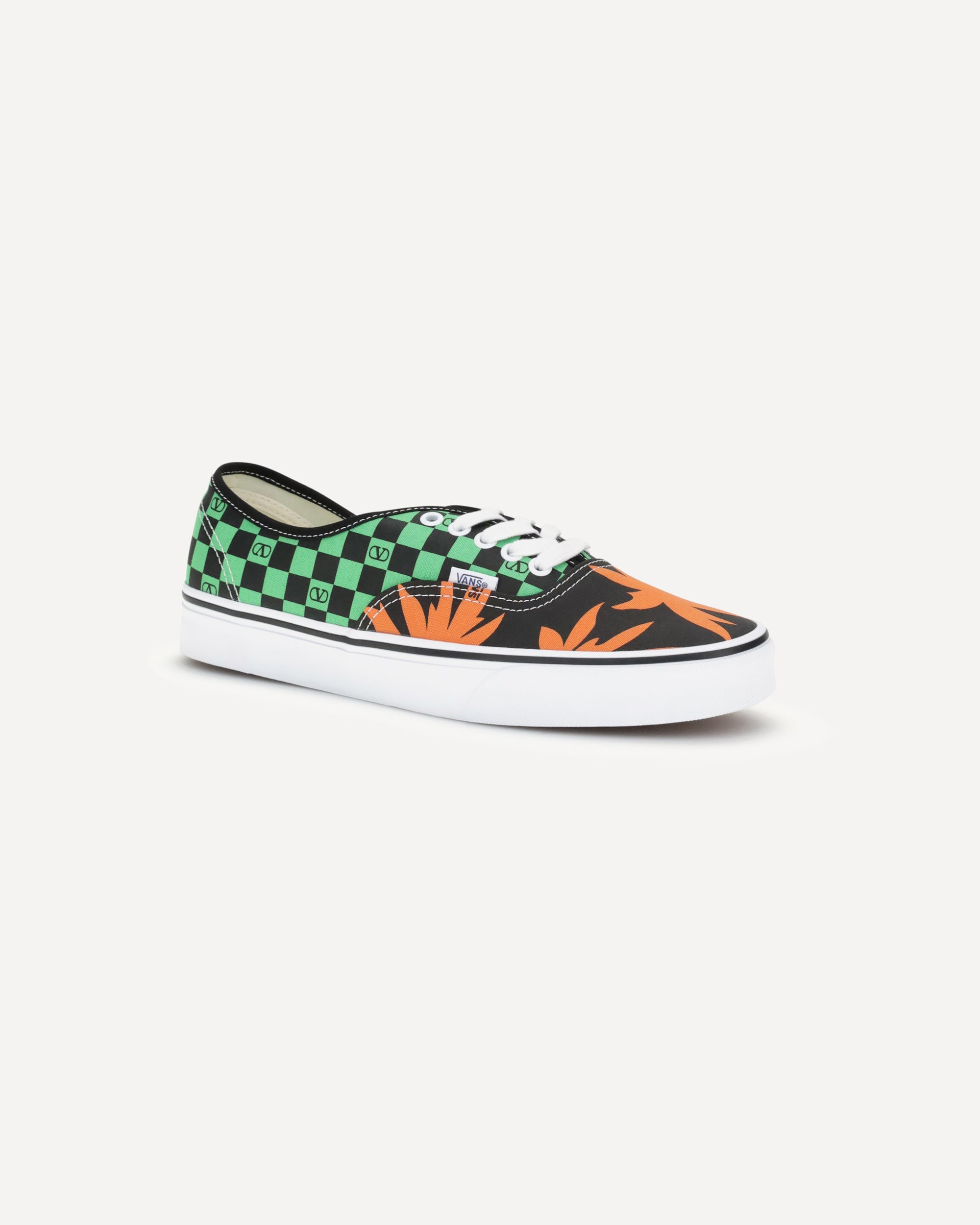 The Sneakers by Valentino Garavani X Vans reinterpret the iconic low-top silhouette with a couture twist. Made of fabric, they combine the VLogo Checkerboard print with the energy of the Tropical Leaves print. Set on the classic Vans Authentic Original rubber sole, they feature an insole with Signature VLogo detail and Vans logo for the perfect mix of streetwear and high fashion.