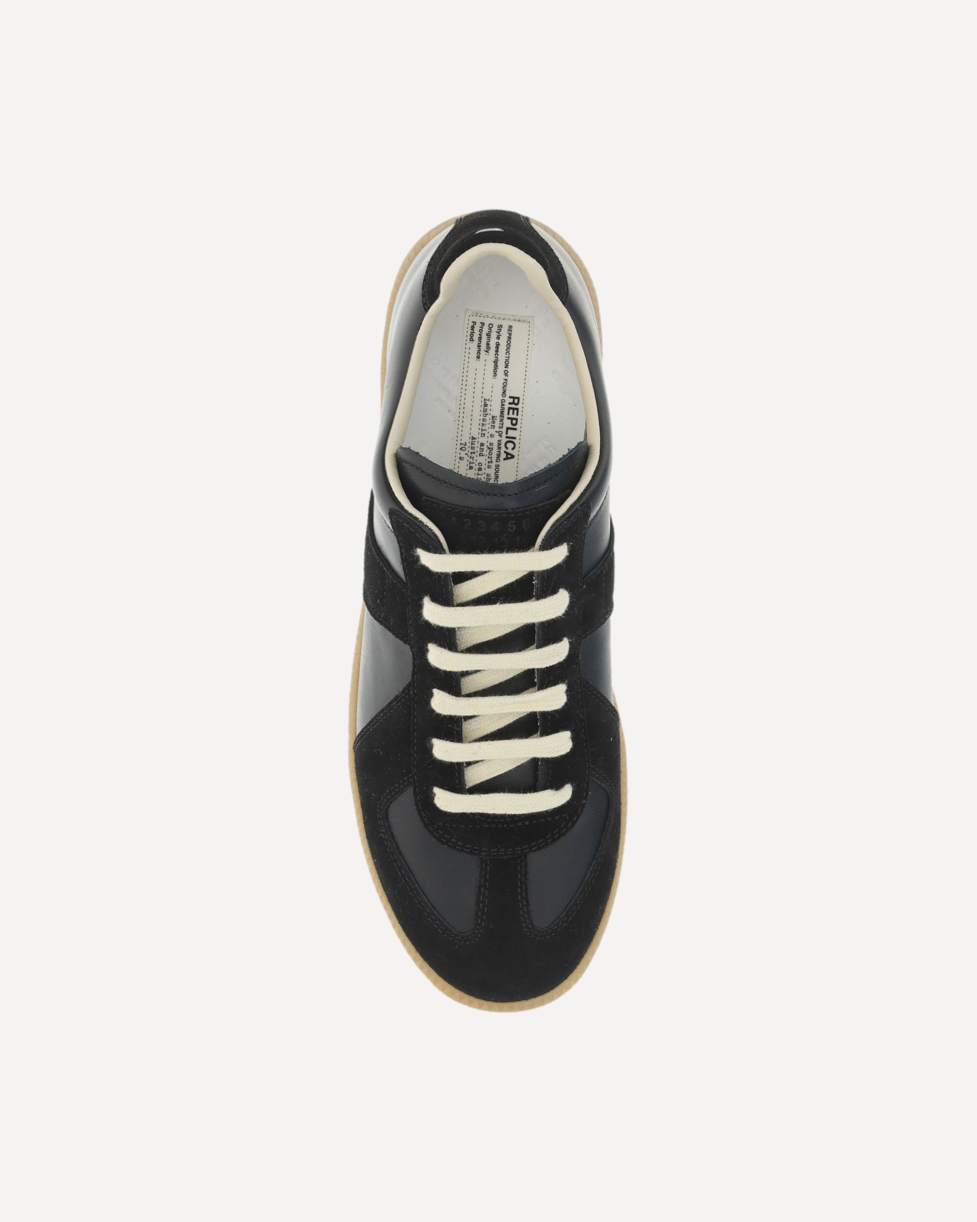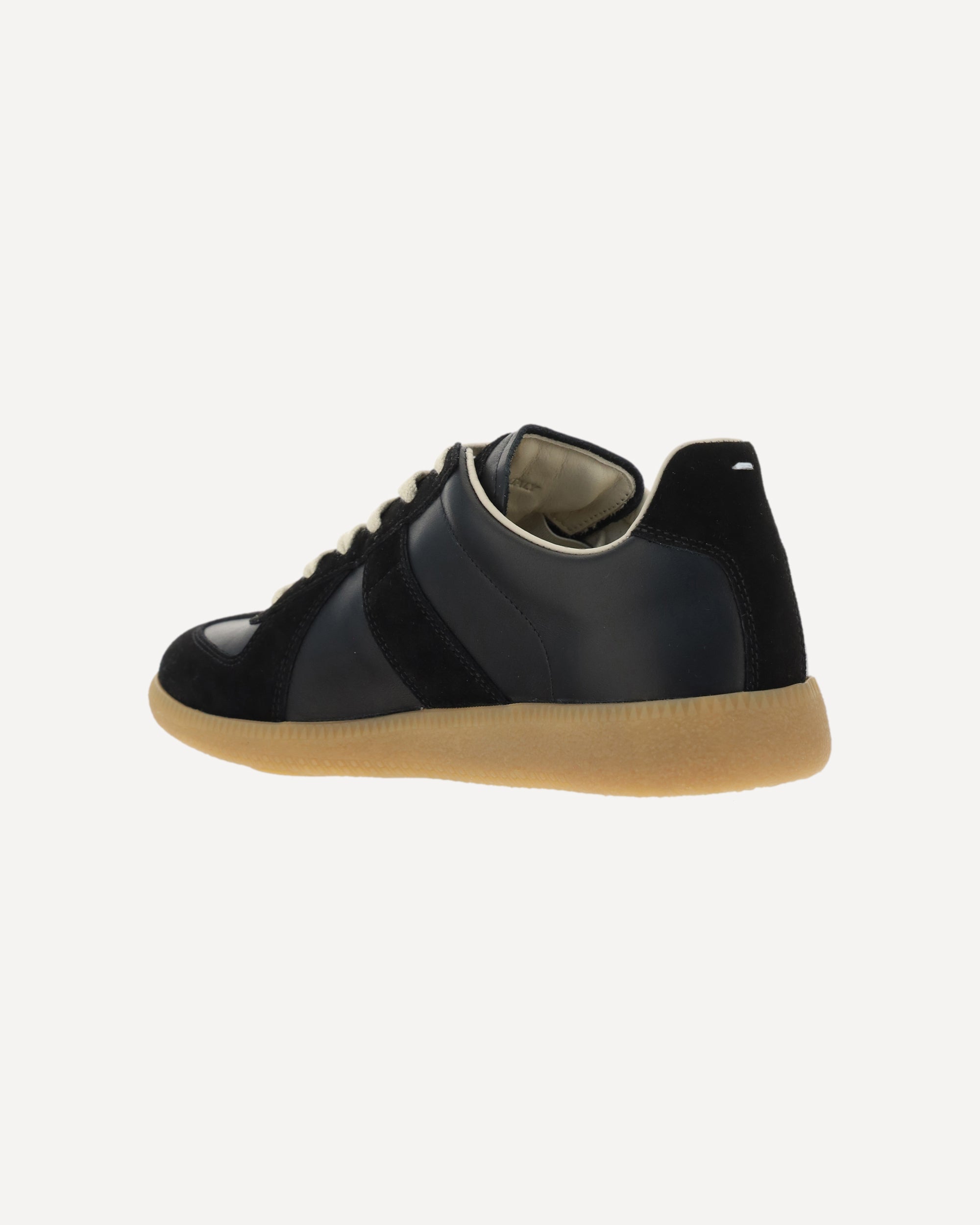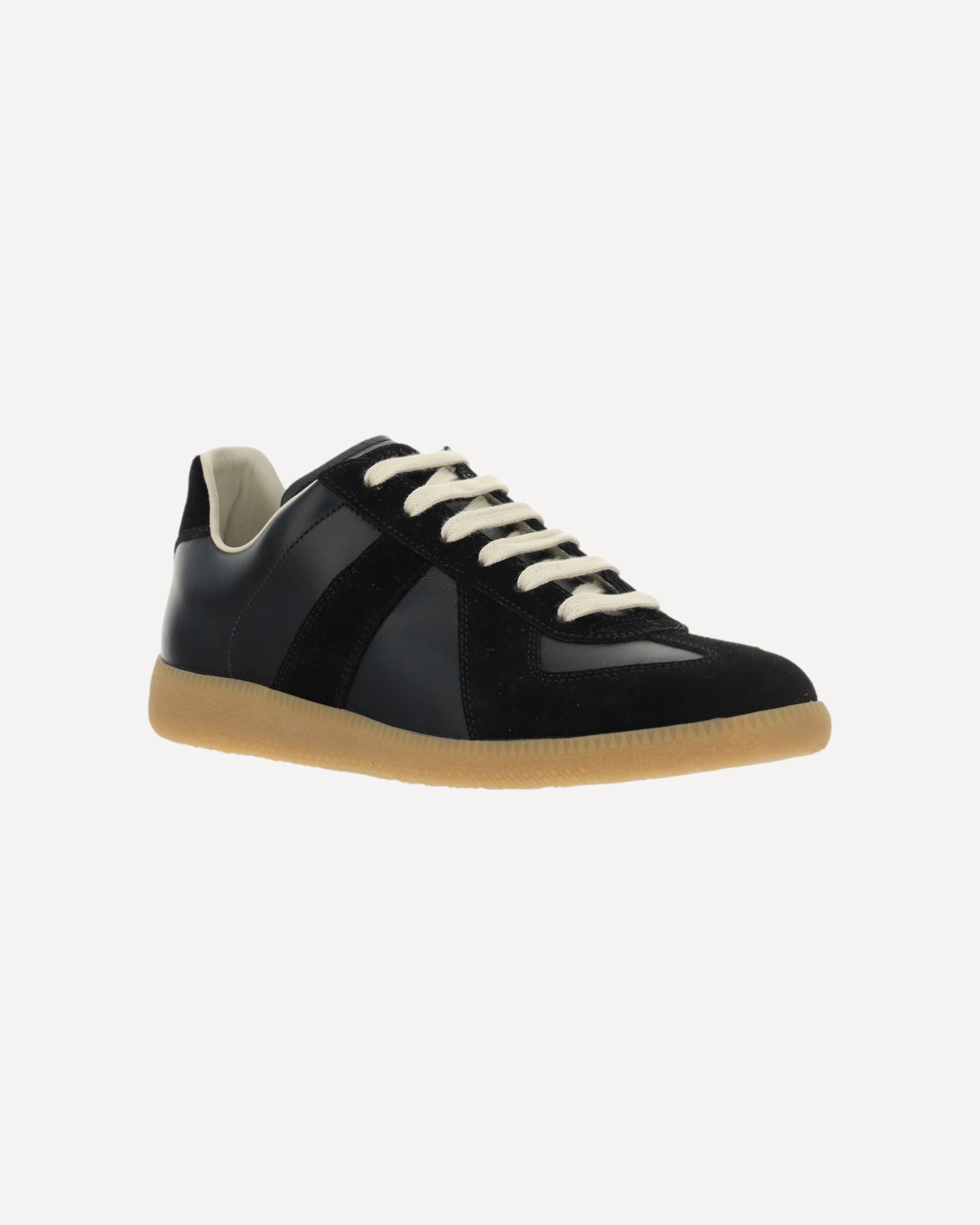 The leather Sneakers by Margiela combine contemporary style and comfort. Made of leather with suede details, they feature a paneled design and a contrasting gum sole that lends character to the model. The front lace-up closure ensures a customized fit, while the front logoed press-stud tab adds a distinctive and iconic touch.