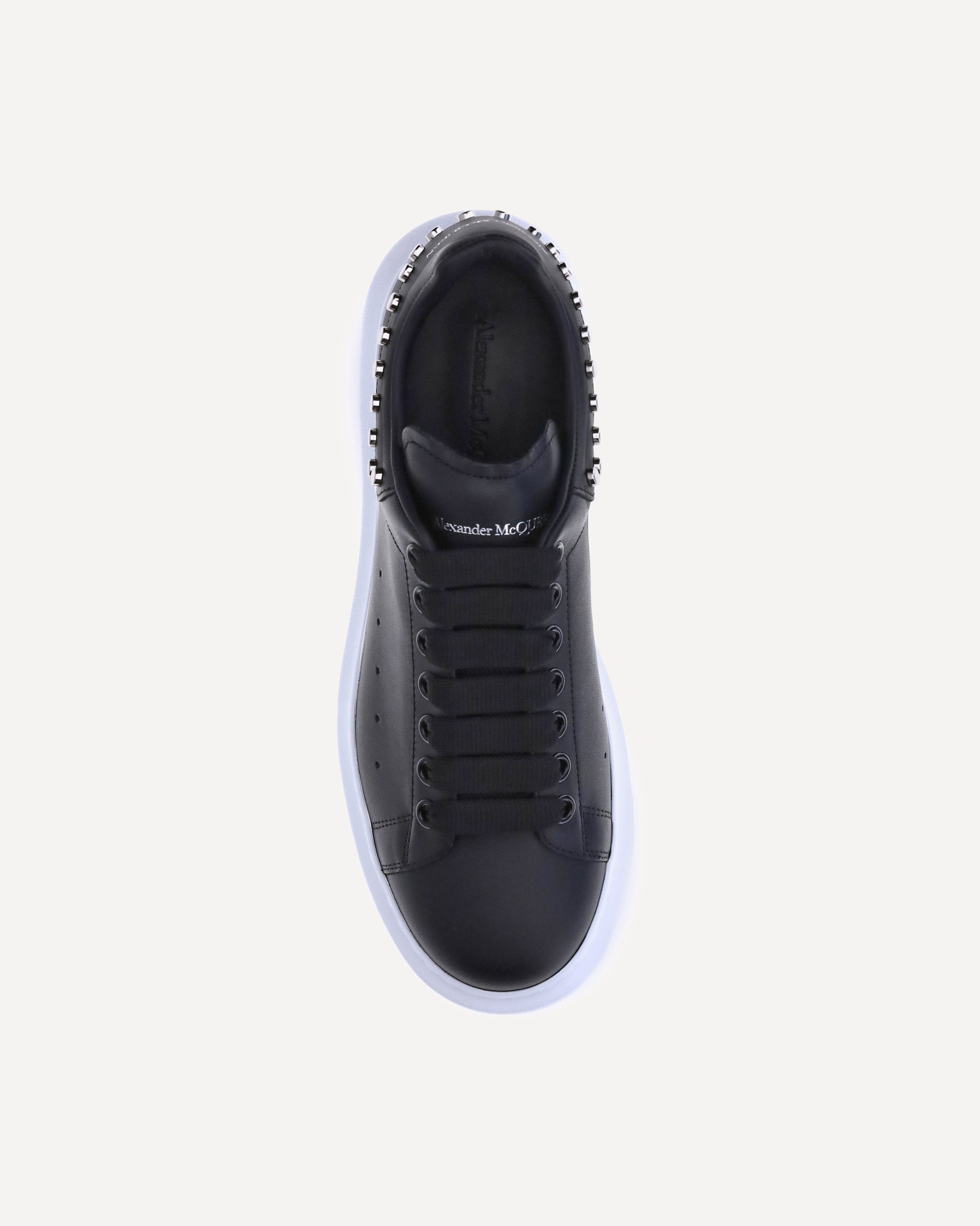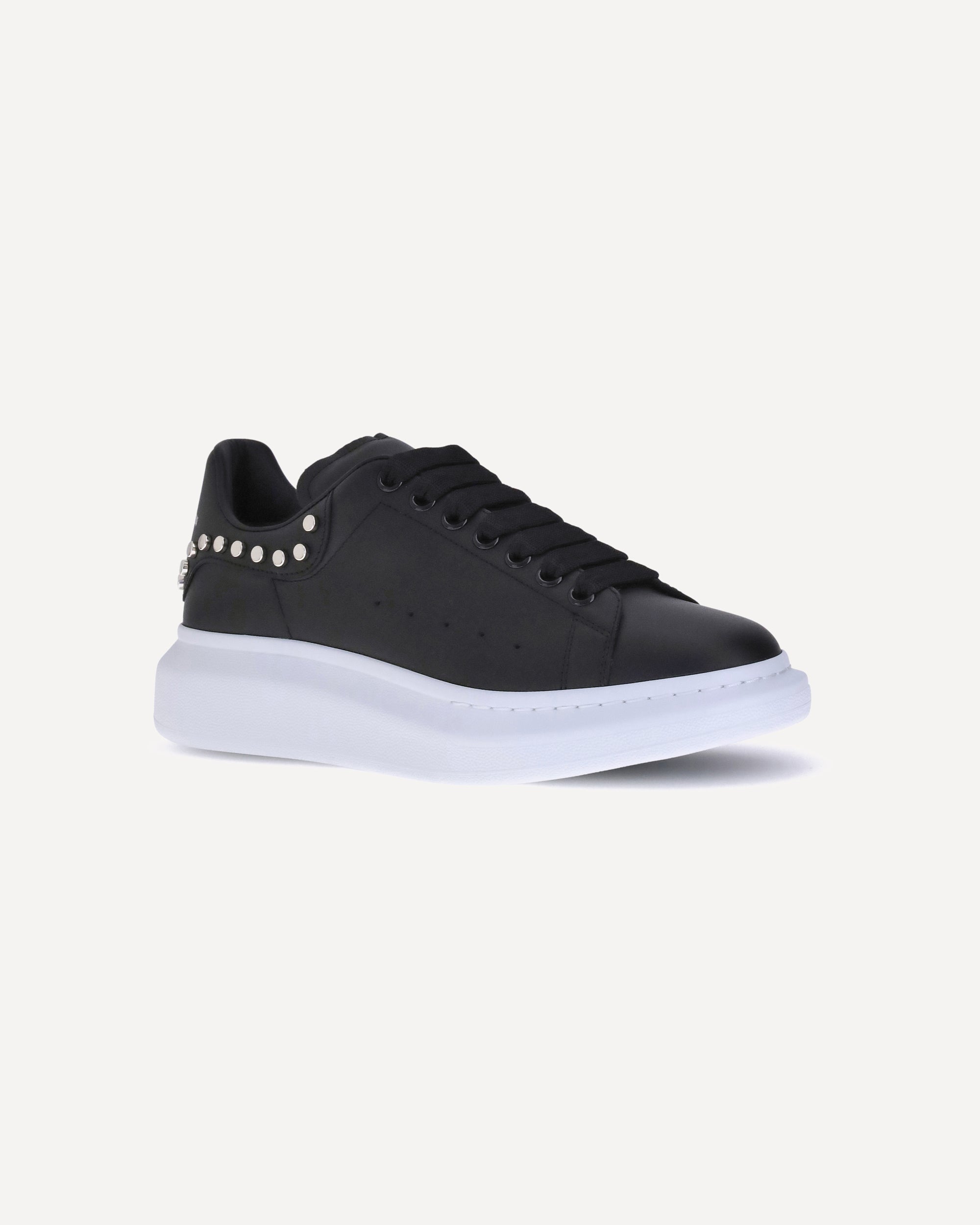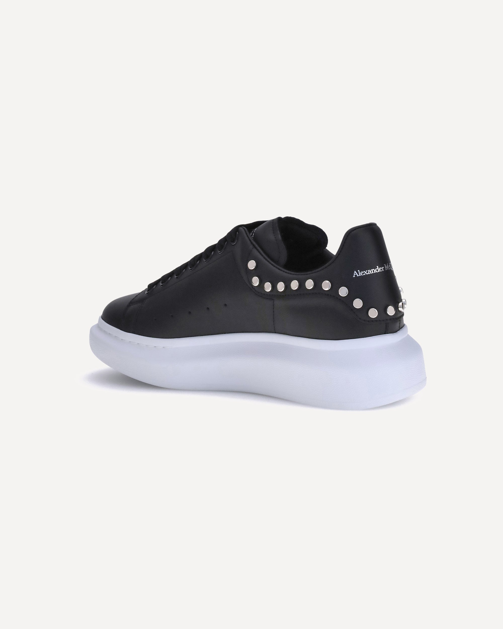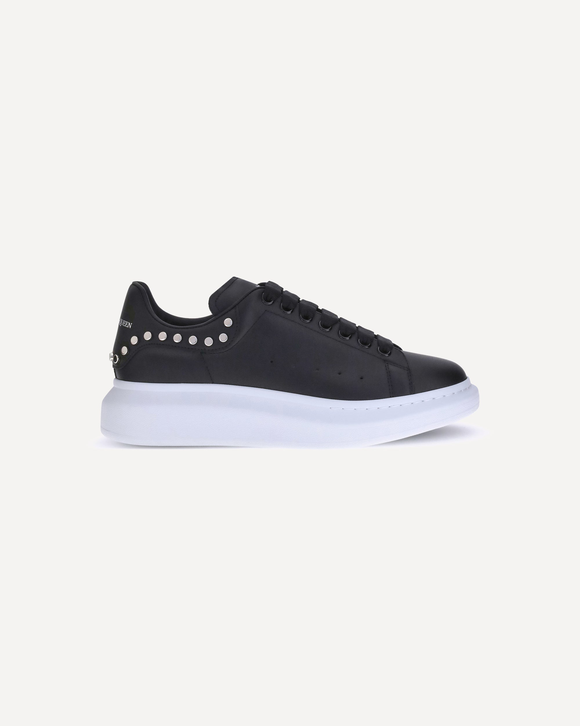 Alexander McQueen's Leather Sneakers are a distinctive piece that combines elegance and boldness in a contemporary design. They feature a front lace-up closure for a comfortable and adjustable fit, while the round toe ensures a classic and versatile look. The press-studded logoed front tab and contrasting logoed heel label add iconic details that recall the brand's authenticity. Another detail are the studs applied on the heel, giving a gritty touch. The platform sole not only gives added height, but also adds a modern and bold touch to the design.