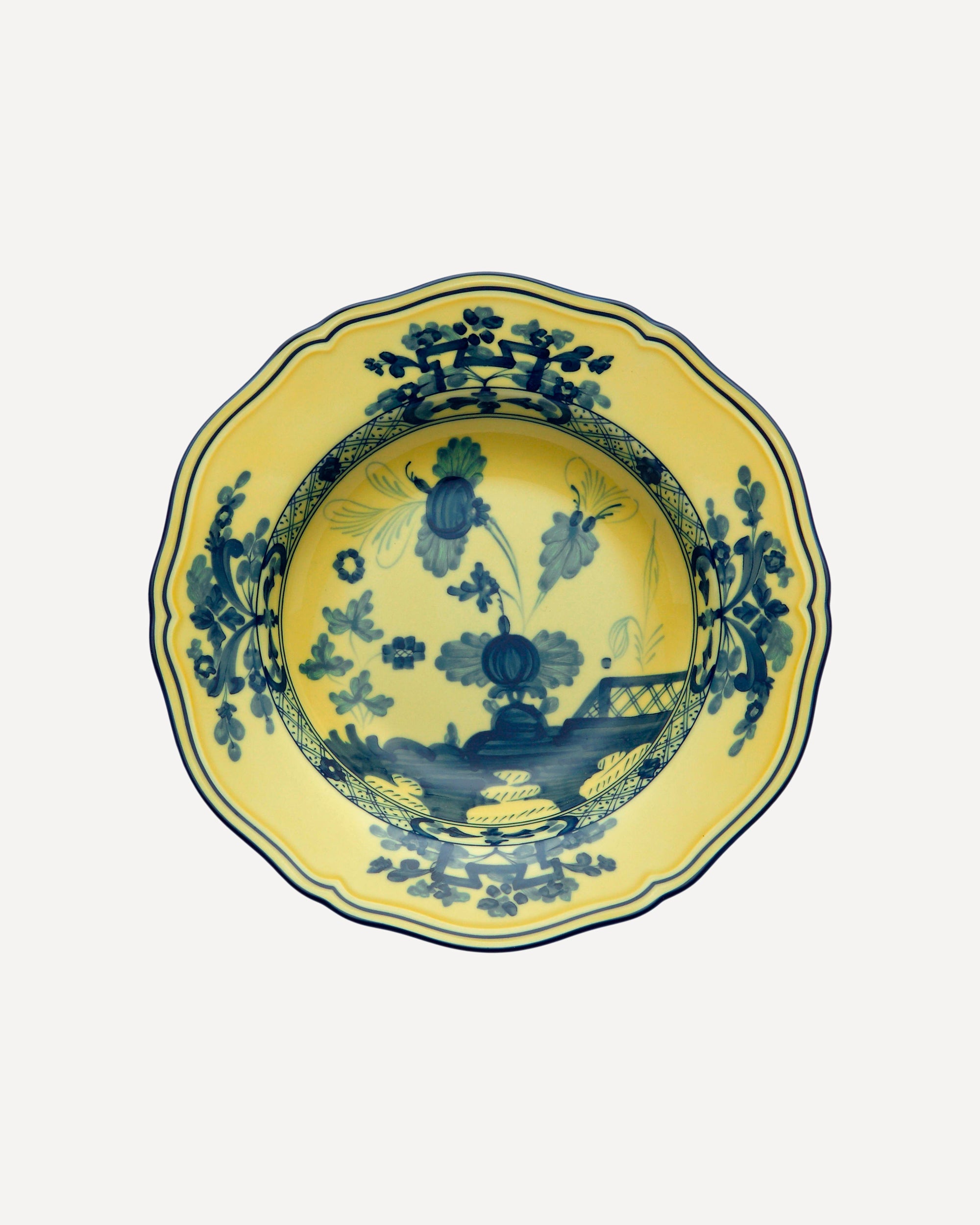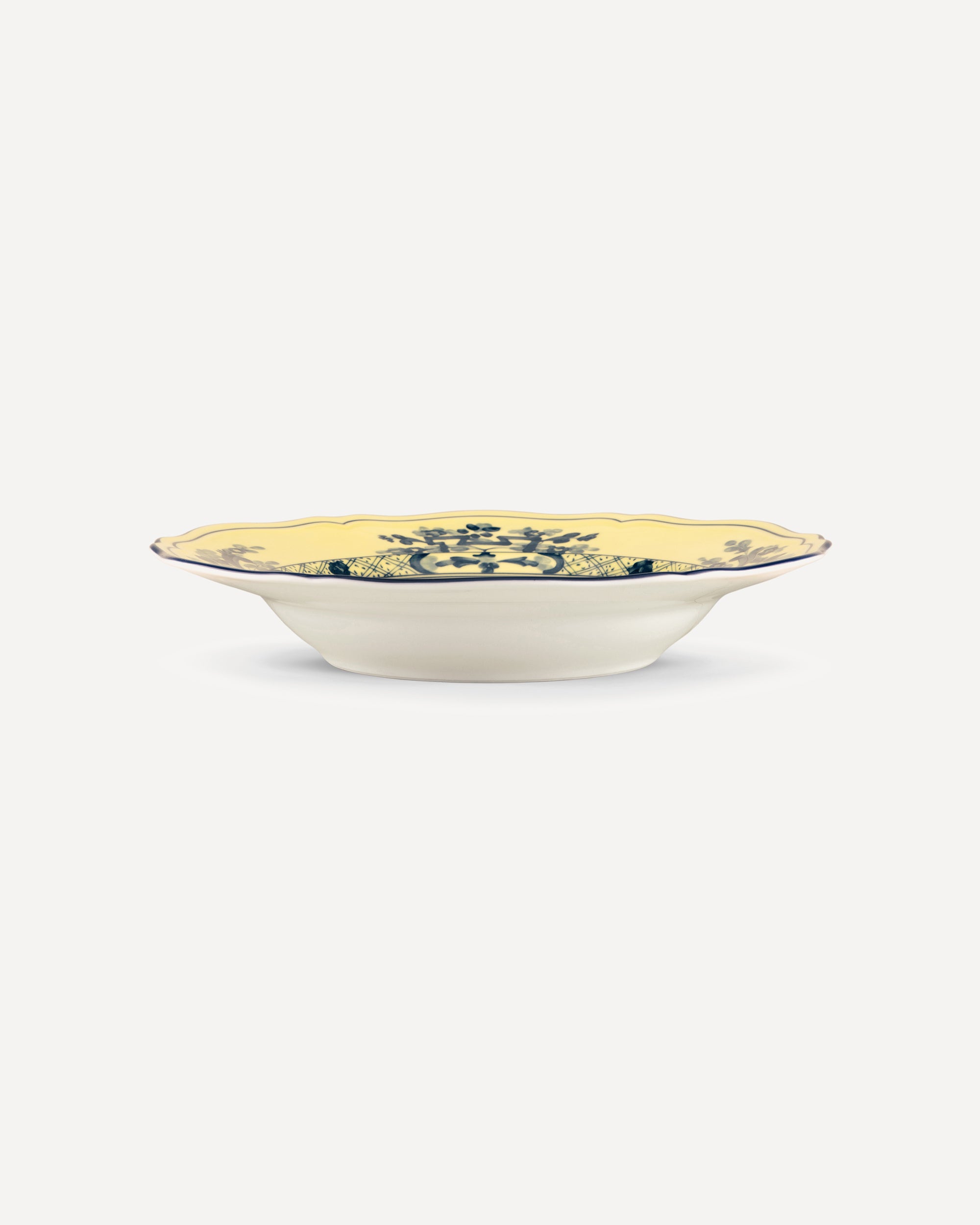 The Oriente Italiano Collection porcelain dinner Plate by Ginori combines elegance and functionality in perfect balance. The refined threading discreetly frames the collection's iconic decorations, infusing the table with a sense of comfort and sophistication. Designed to welcome risottos, velvety soups, and seasonal entrees in style, this dish is capable of enhancing even the simplest preparations. An invitation to slowness, attention to detail and the pleasure of conviviality, it is ideal for mise en place that want to convey warmth and sophistication.