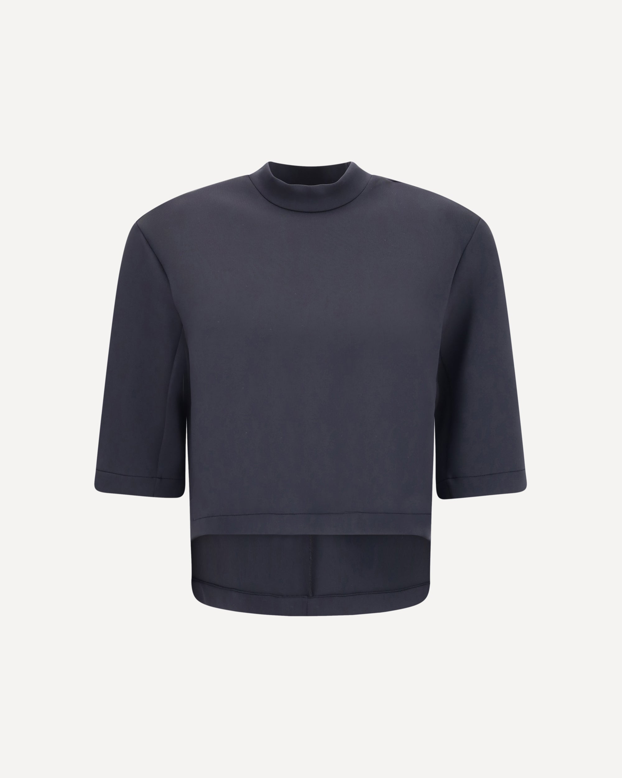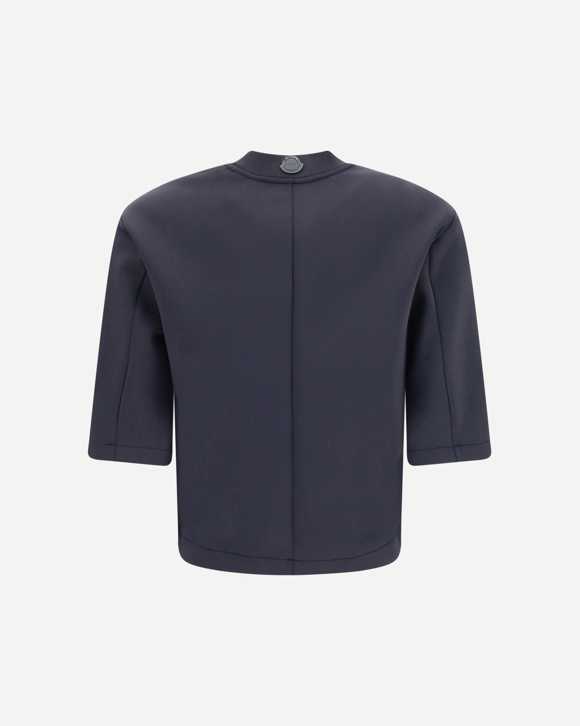 The T-shirt by Moncler x EE72 by Edward Enninful embodies the understated elegance of the collection. Crafted from neoprene, it features a clean crew neck and short sleeves that enhance its modern silhouette. The design is completed with the iconic logo patch, a distinctive detail that highlights the Moncler Genius identity.