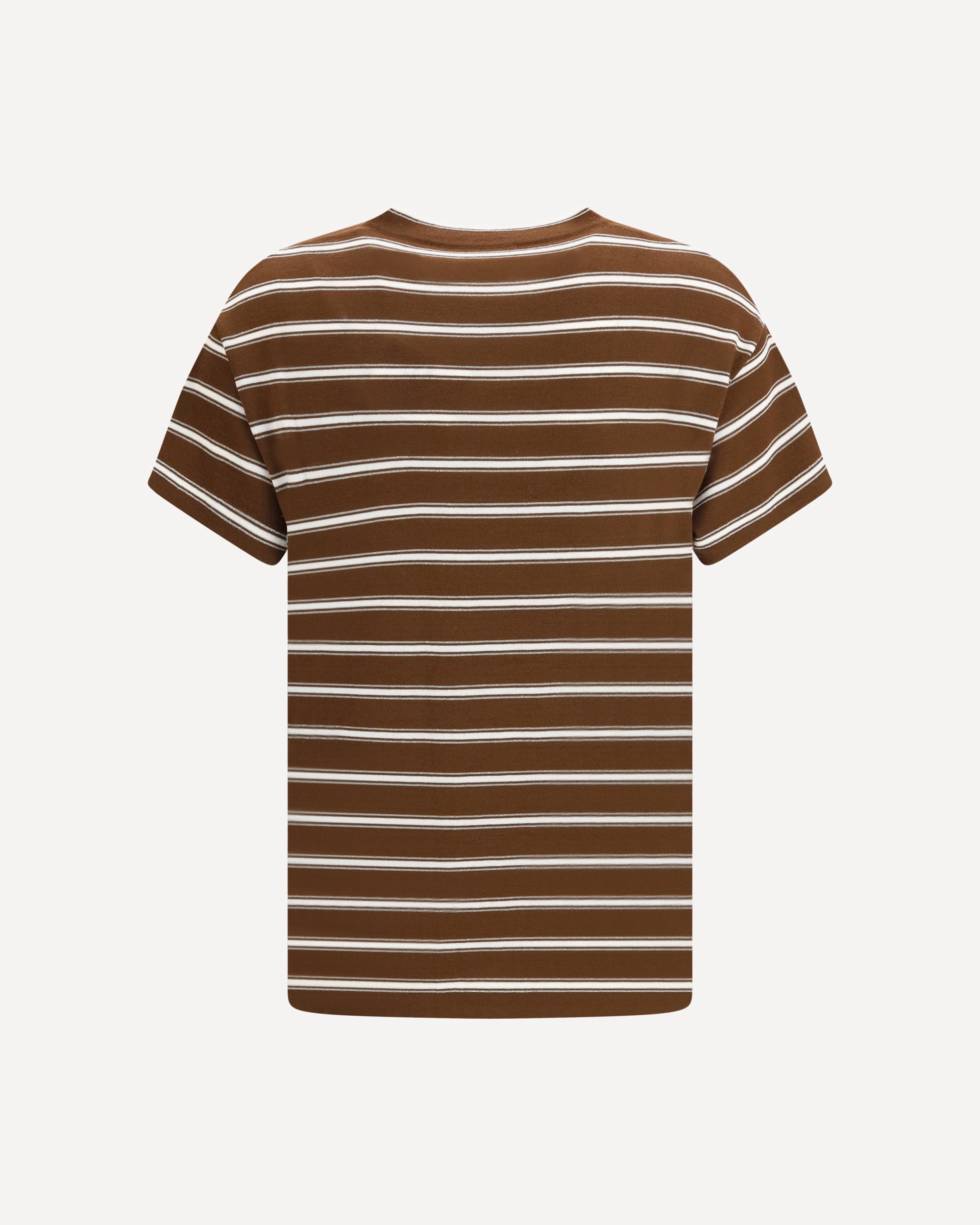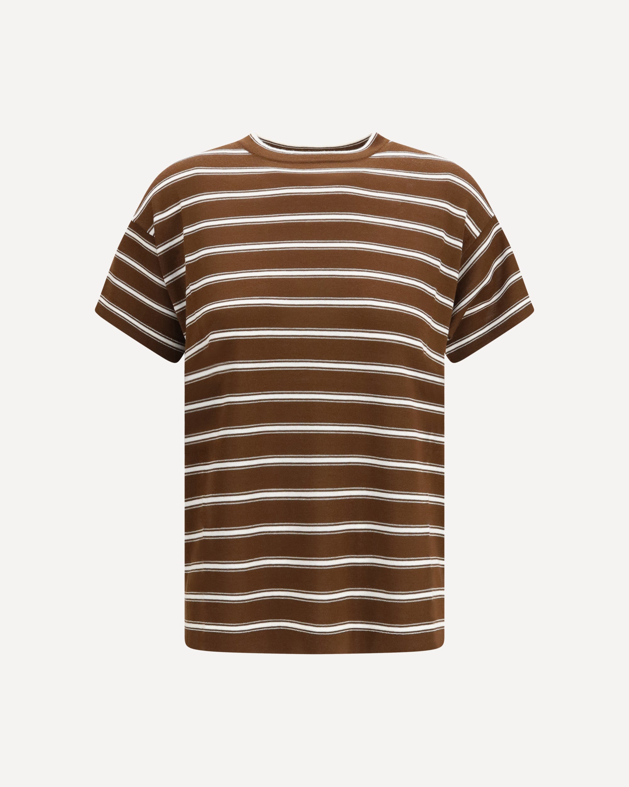 The Shirt knitted in virgin wool and cashmere by Brunello Cucinelli reflects the brand’s artisanal excellence through precious materials and luminous details. Crafted from a soft virgin wool and cashmere blend, it features a striped pattern in cream, chocolate and silver tones, enhanced by subtly shimmering fibers that create an elegant iridescent effect. A comfortable yet sophisticated piece designed for modern refined styling.