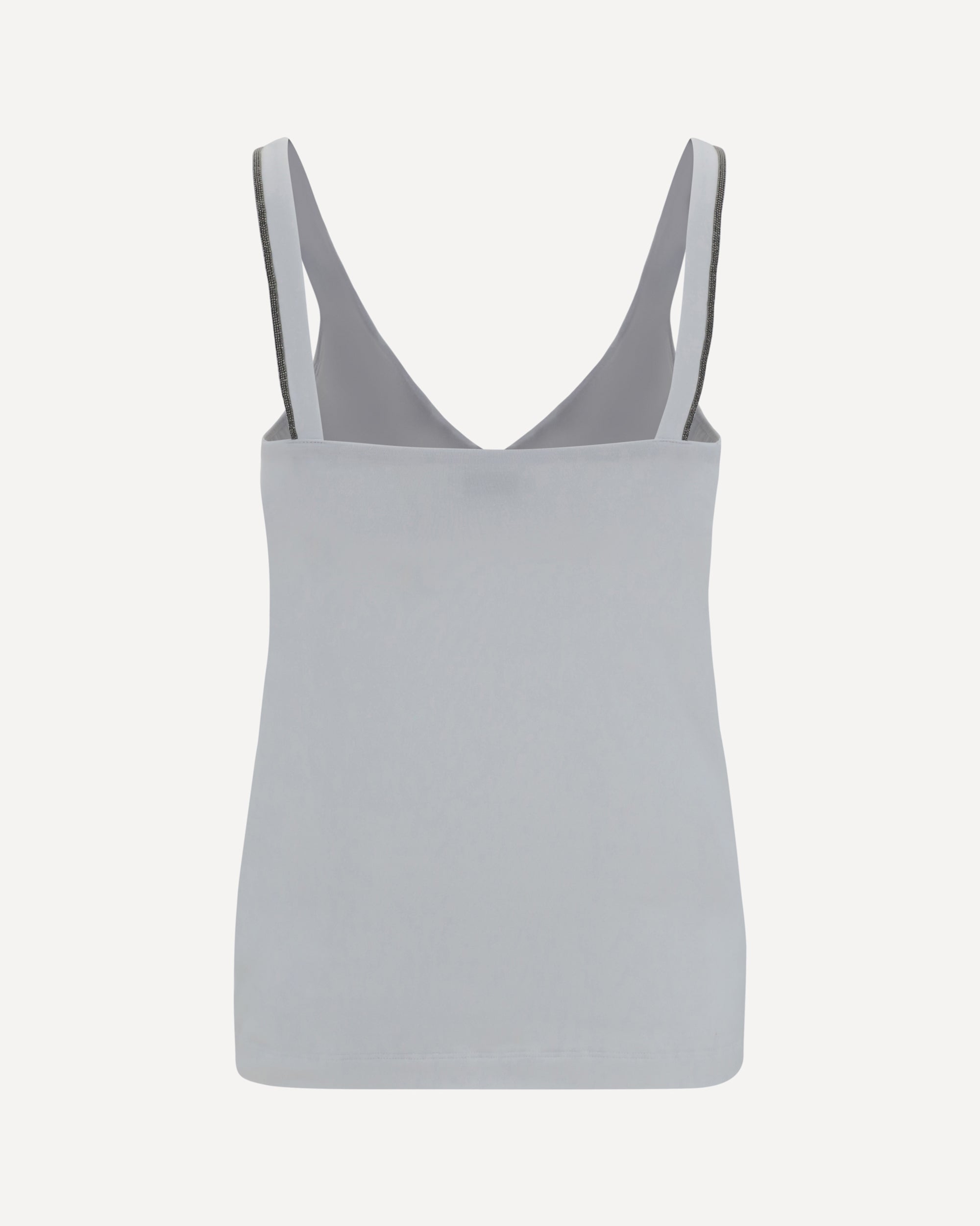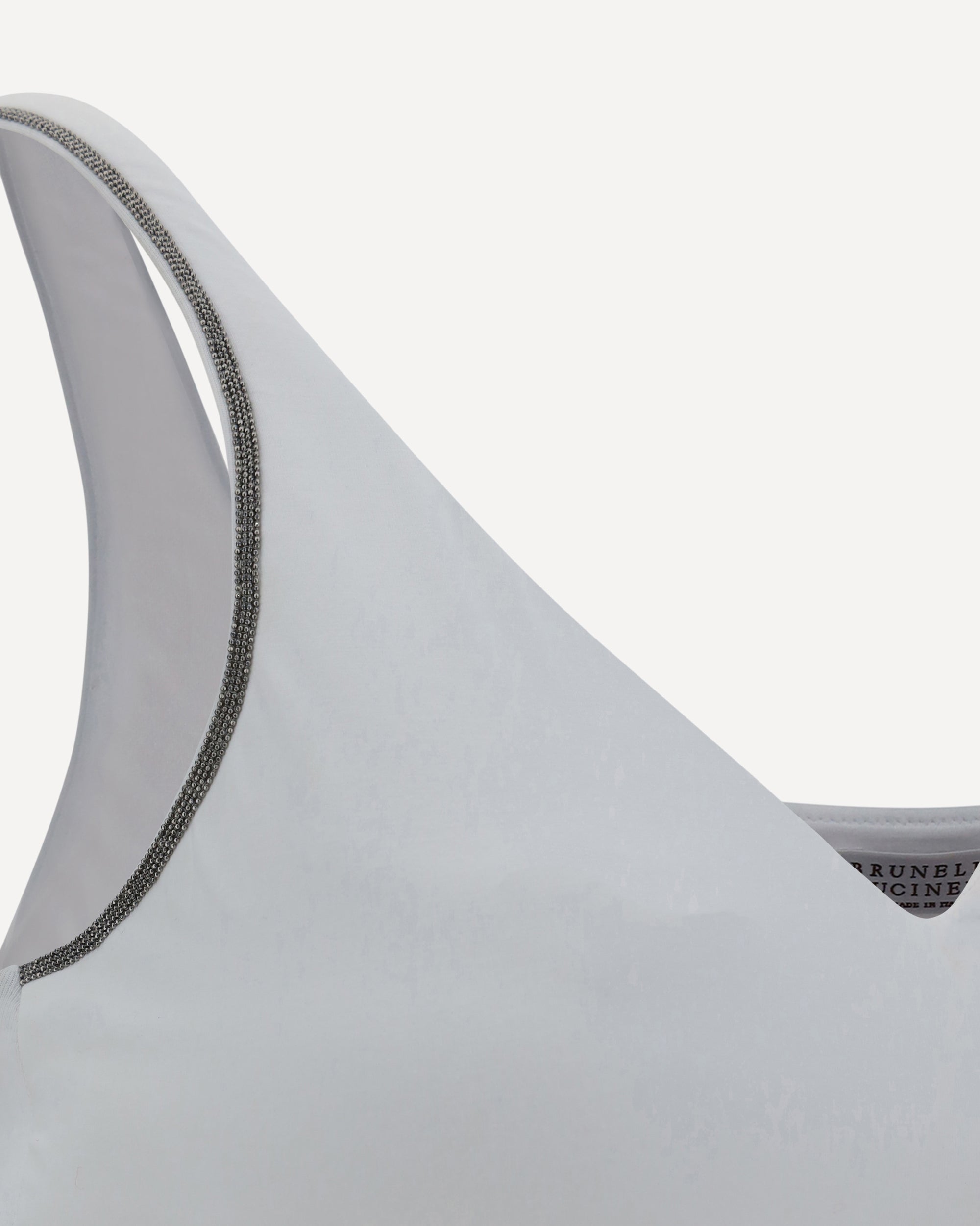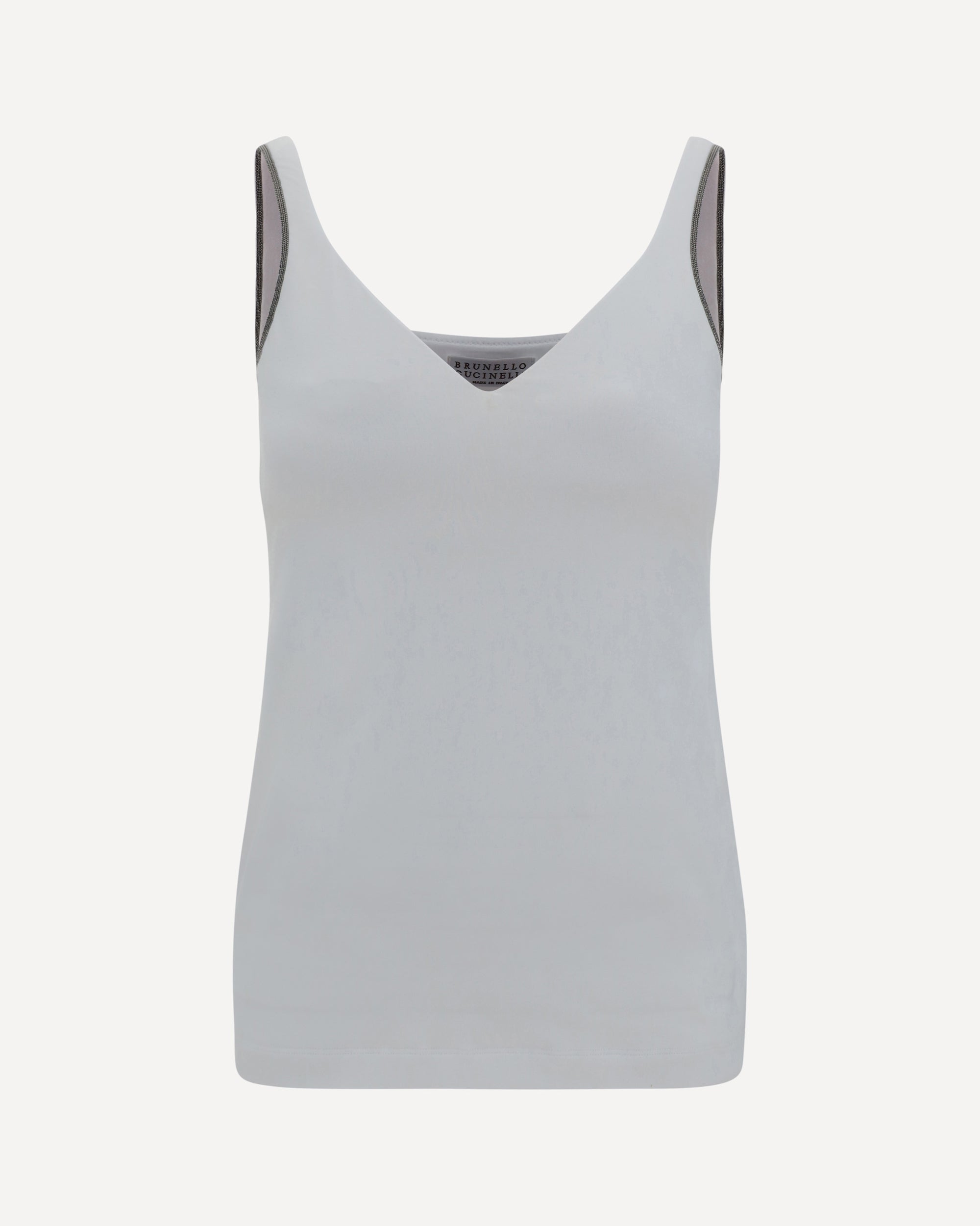 The cotton Top by Brunello Cucinelli is an elegant and refined piece perfect for sophisticated summer looks. The sleeveless design and V-neckline on the front create a feminine, lightweight silhouette, while the thin straps, embellished with the brand's iconic shiny jewels, add a touch of luxury and originality. The structured round chest ensures a comfortable and defined fit. With a monochrome pattern, this top is easy to pair with a variety of outfits, while the regular fit ensures all-day comfort.
