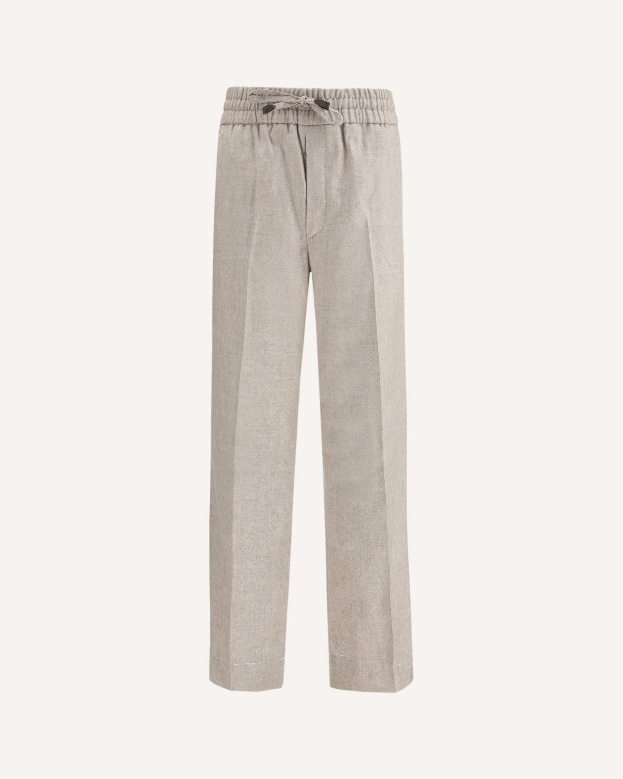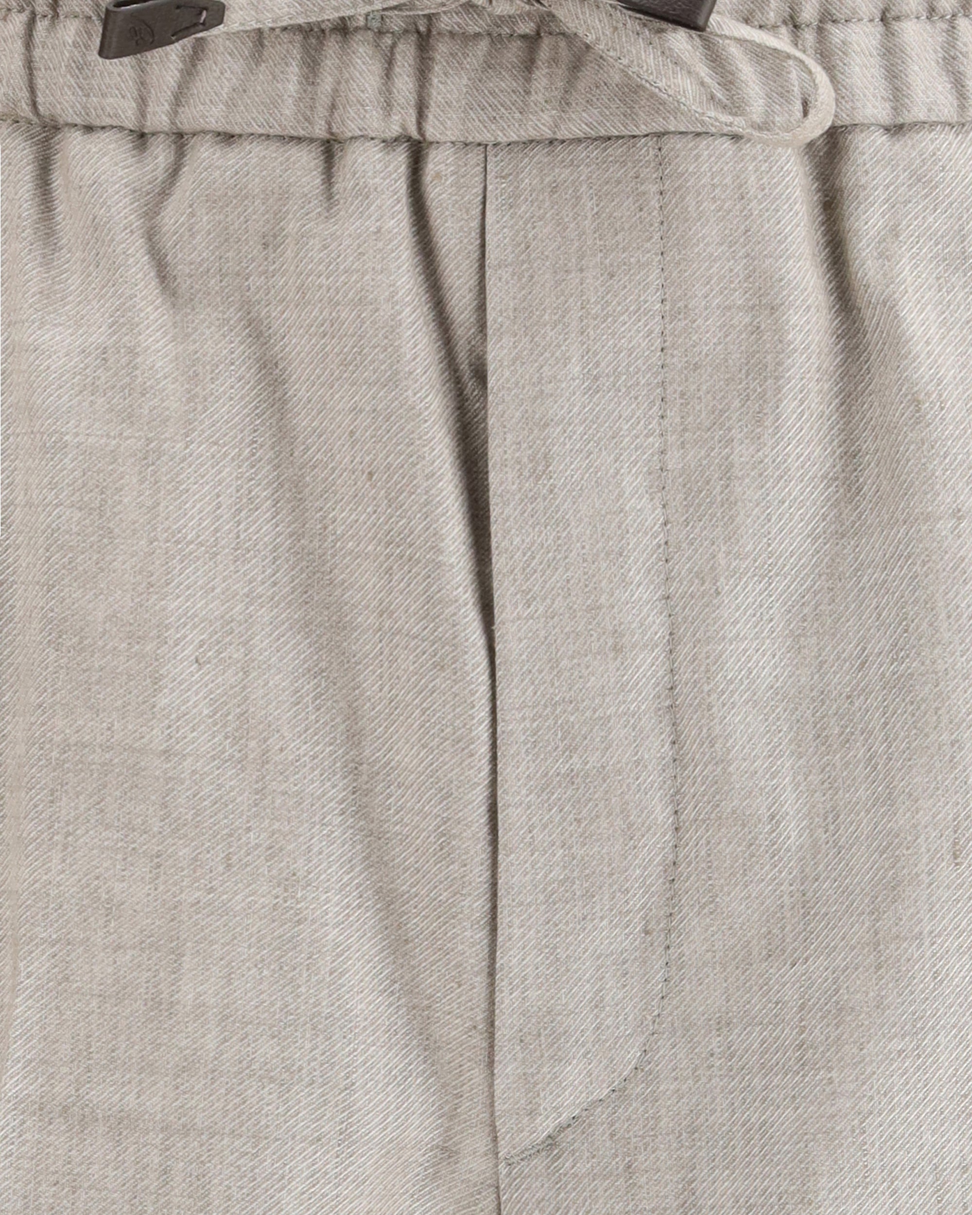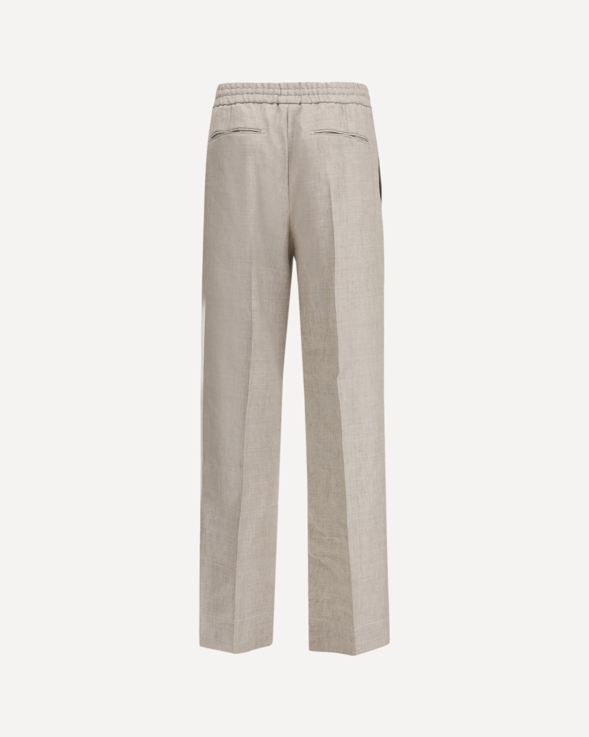 The straight-leg Asolo Pants by Brioni are crafted from a medium-weight, non-stretch fabric and feature a standard fit designed to ensure comfort and impeccable lines. The model comes with a regular straight leg and a low rise, offering relaxed yet refined elegance. An adjustable waistband allows for a customized fit, while the unfinished hem provides the option to tailor the length to personal preference.