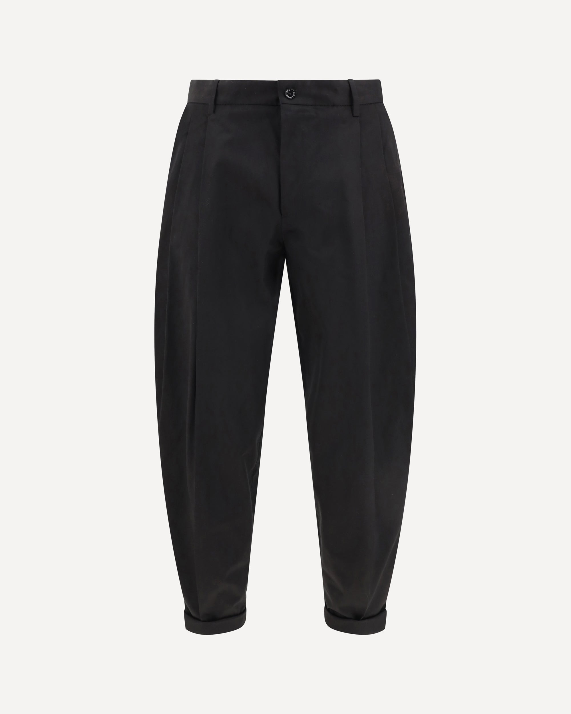 Dolce&Gabbana's Turn-Up Pants are the perfect blend of elegance and modernity. The slightly balloon leg lends a touch of originality to the design, while the lapels add a sophisticated detail that completes the look with a stylish accent. The zipper-and-button front closure ensures a secure and precise fit. The two side welt pockets offer practicality, while the back welt pockets add a touch of sophistication. The waistband with belt loops allows you to add a belt for a customized fit.