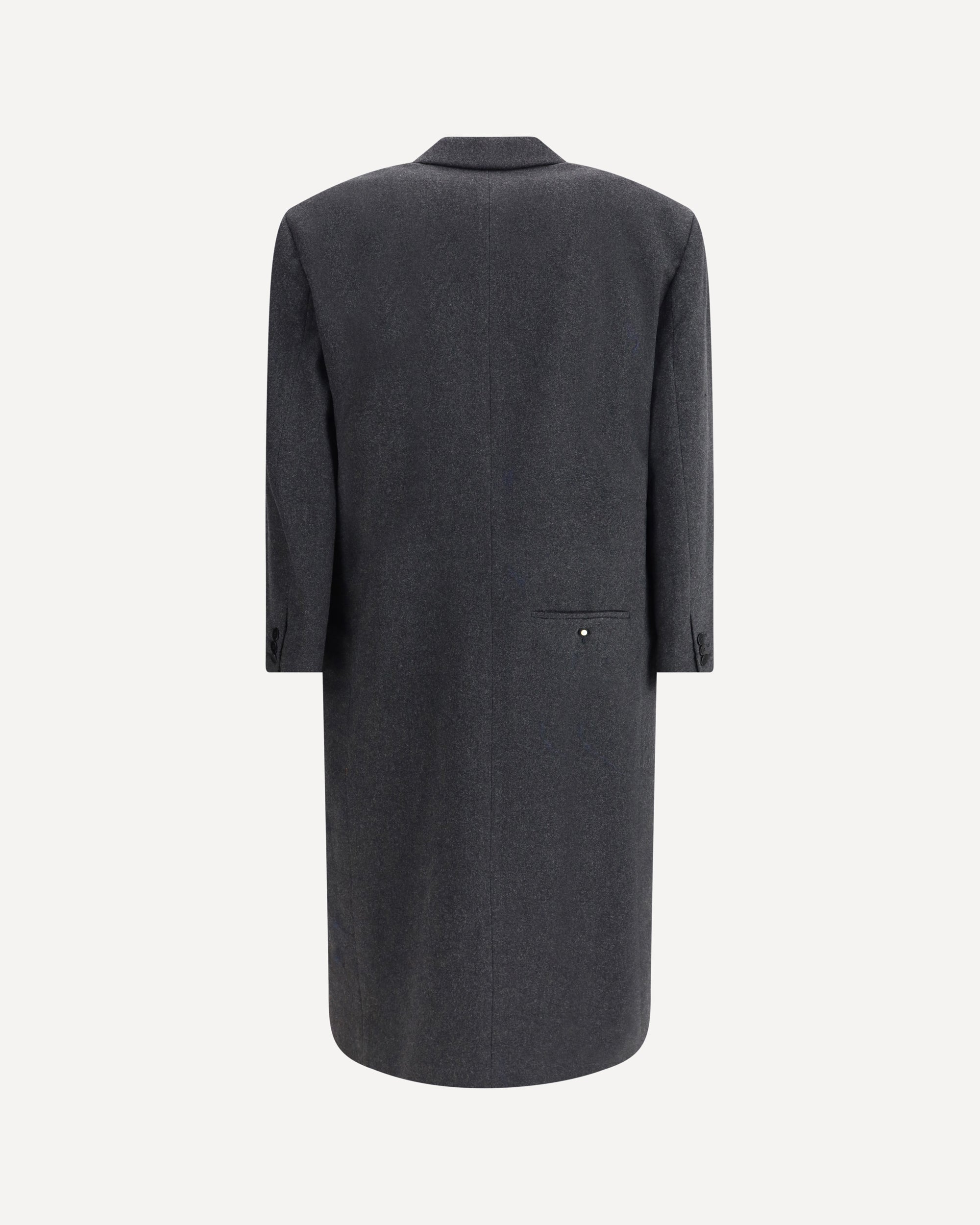 The double-breasted Coat by Magliano reinterprets classic style with clean lines and timeless proportions. Crafted from a wool blend, it offers both warmth and refinement, while its long cut and straight hem emphasize a sartorial allure. The design features a classic notch collar, regular shoulders, and long sleeves, with a button closure and flap pockets enhancing practicality. An essential piece to elevate the wardrobe with understated sophistication.