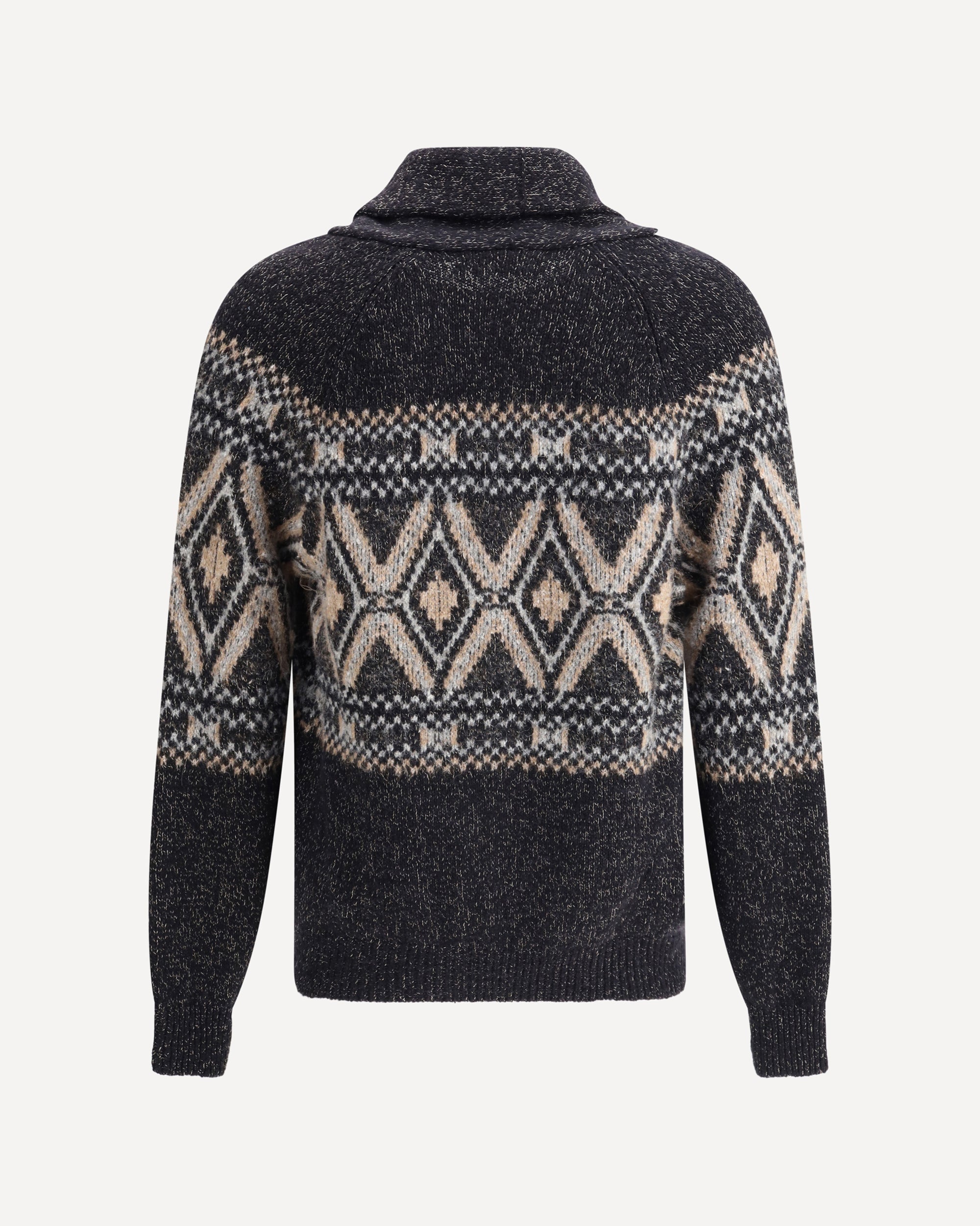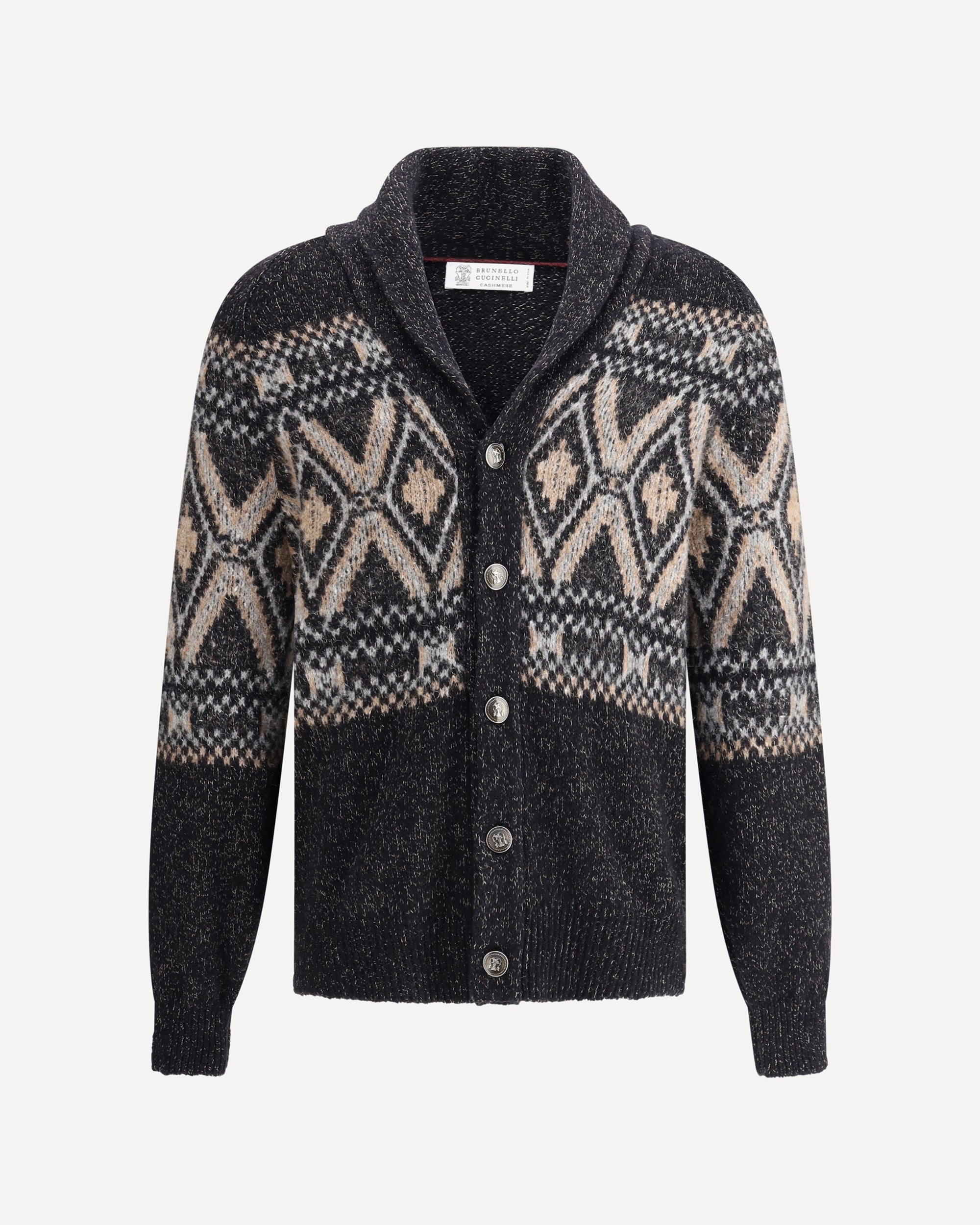 Brunello Cucinelli's virgin wool Cardigan is an elegant and refined piece, featuring a shawl lapel for a sophisticated touch. The front closure with grooved buttons adds a distinctive style detail. The diamond-patterned knit design gives a modern and sophisticated look, while the ribbed cuffs and hem ensure a snug and comfortable fit. A perfect cardigan for a stylish and comfortable look, ideal for any occasion.