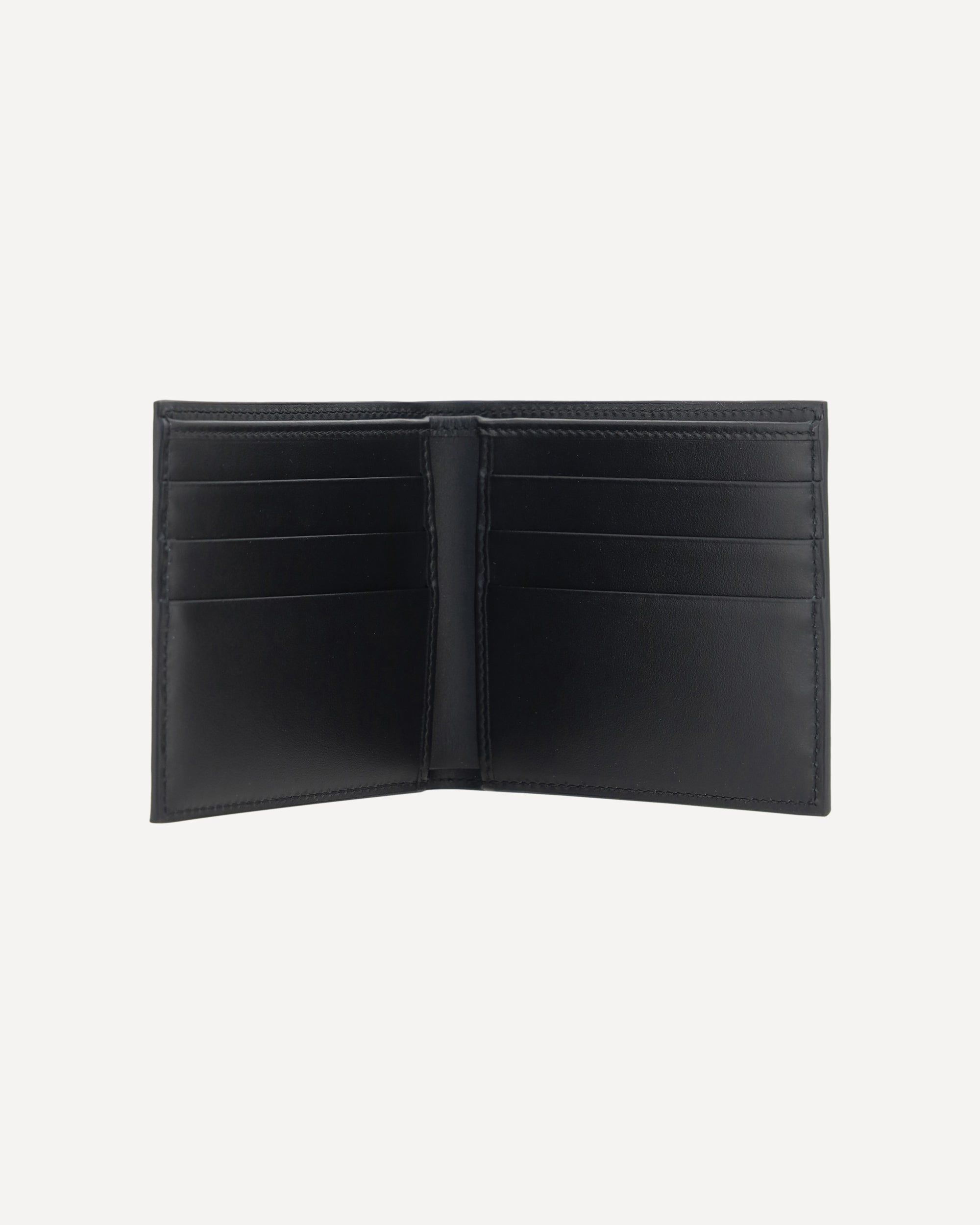 Calfskin Wallet by Dolce&Gabbana, billfold design, top note compartment, iconic brand monogram printed in pressure and contrast on the front, double internal card slots.
