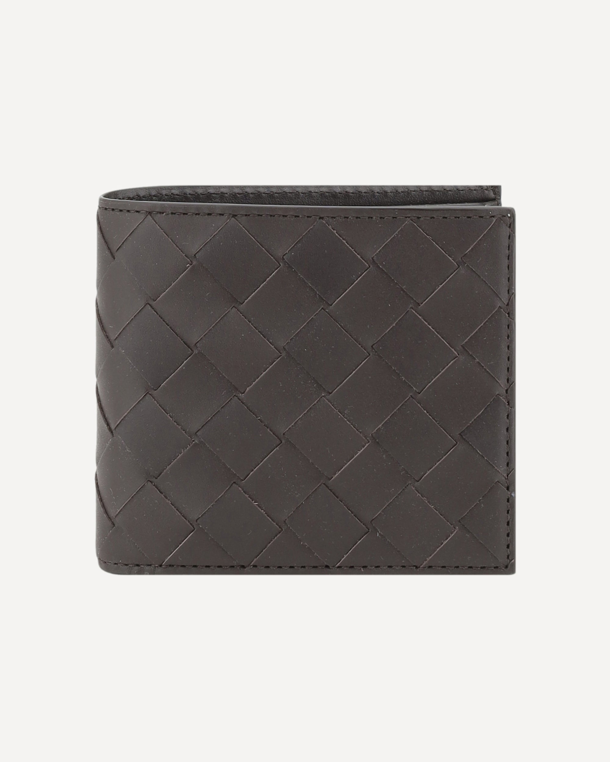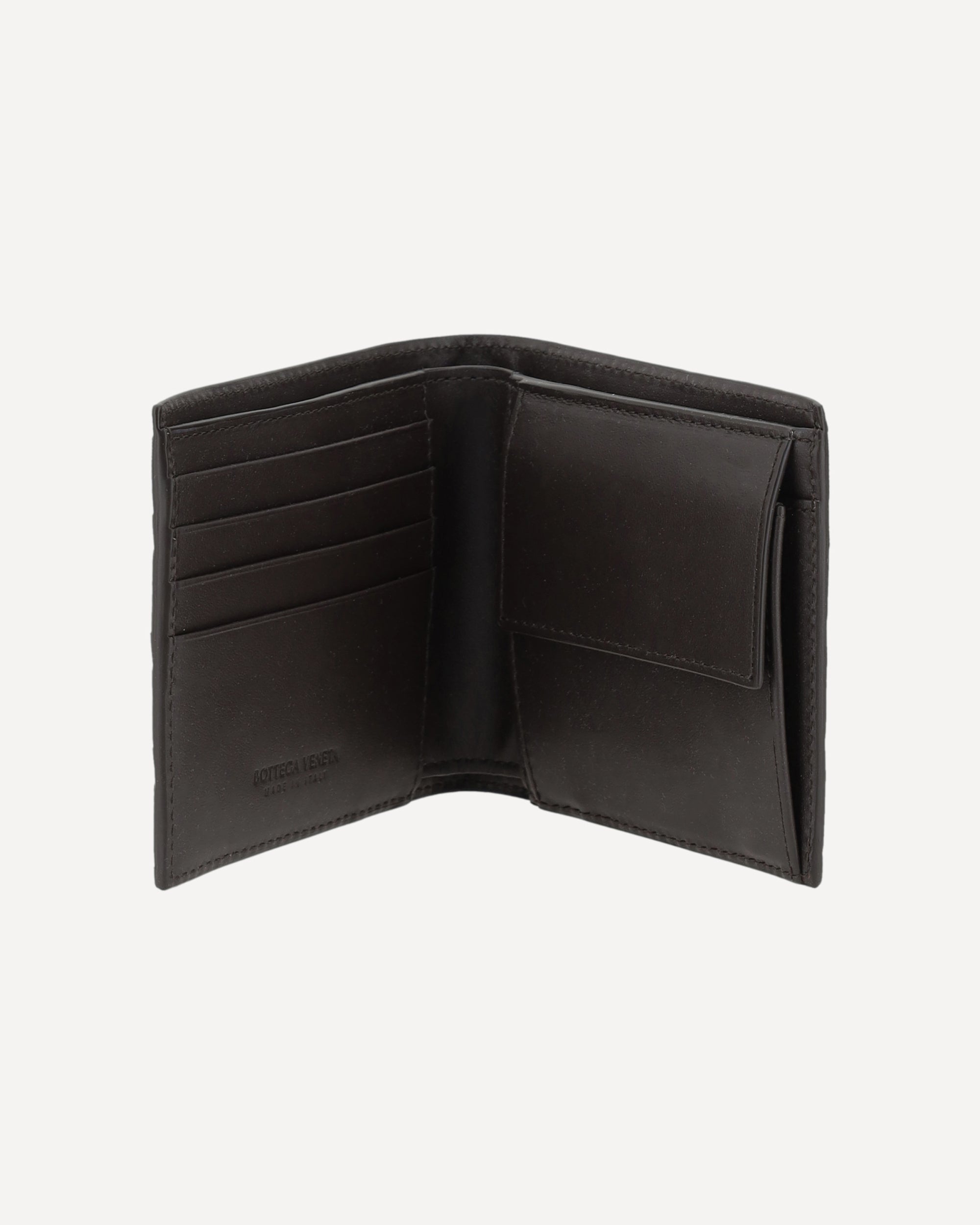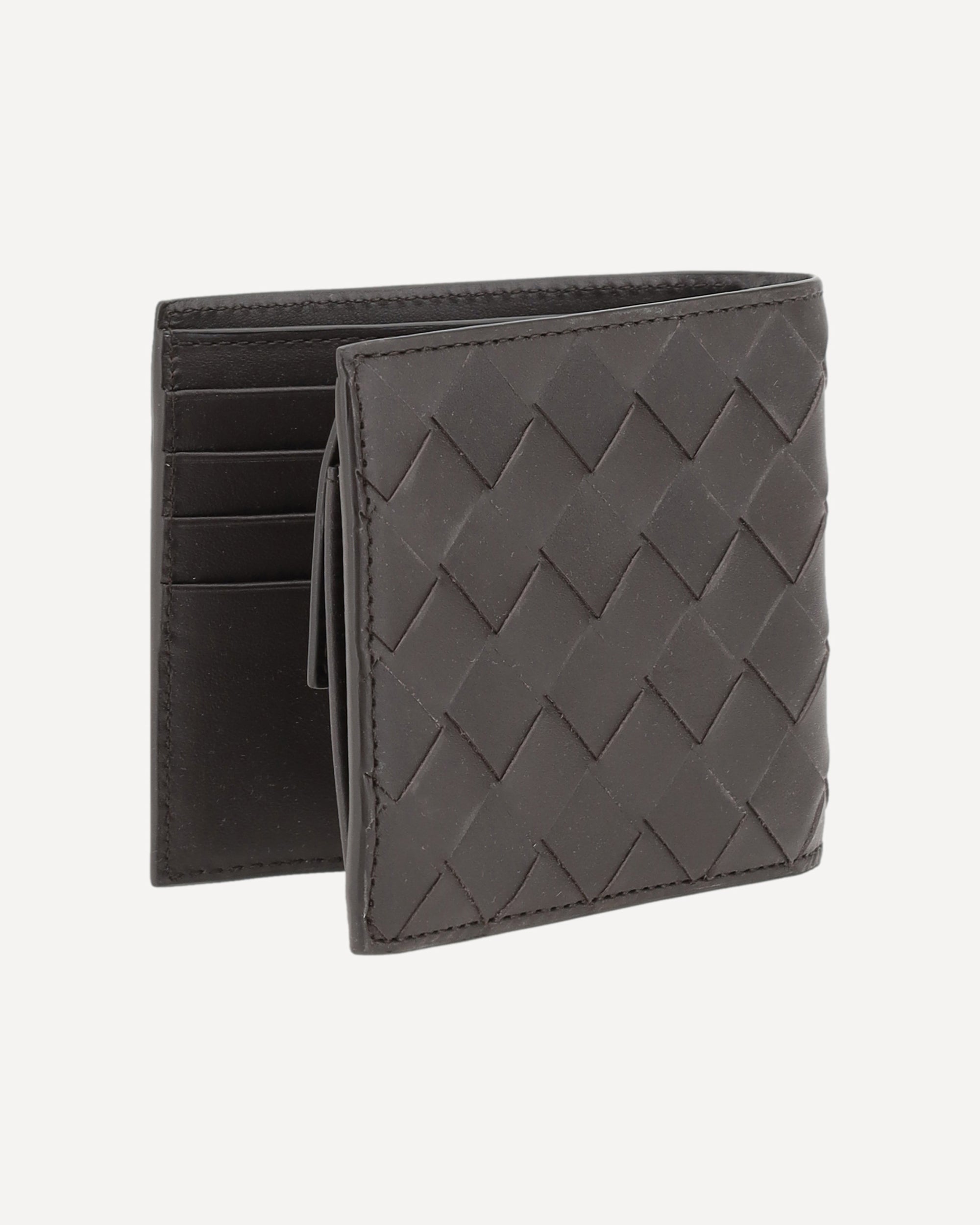 Billfold leather Wallet by Bottega Veneta with interior card slots and two billfold compartments for excellent organization. The coin purse, with flap and snap button closure, adds practicality. The design is embellished with the brand's iconic woven pattern, giving it a distinctive and luxurious touch. A stylish and functional accessory for any occasion.