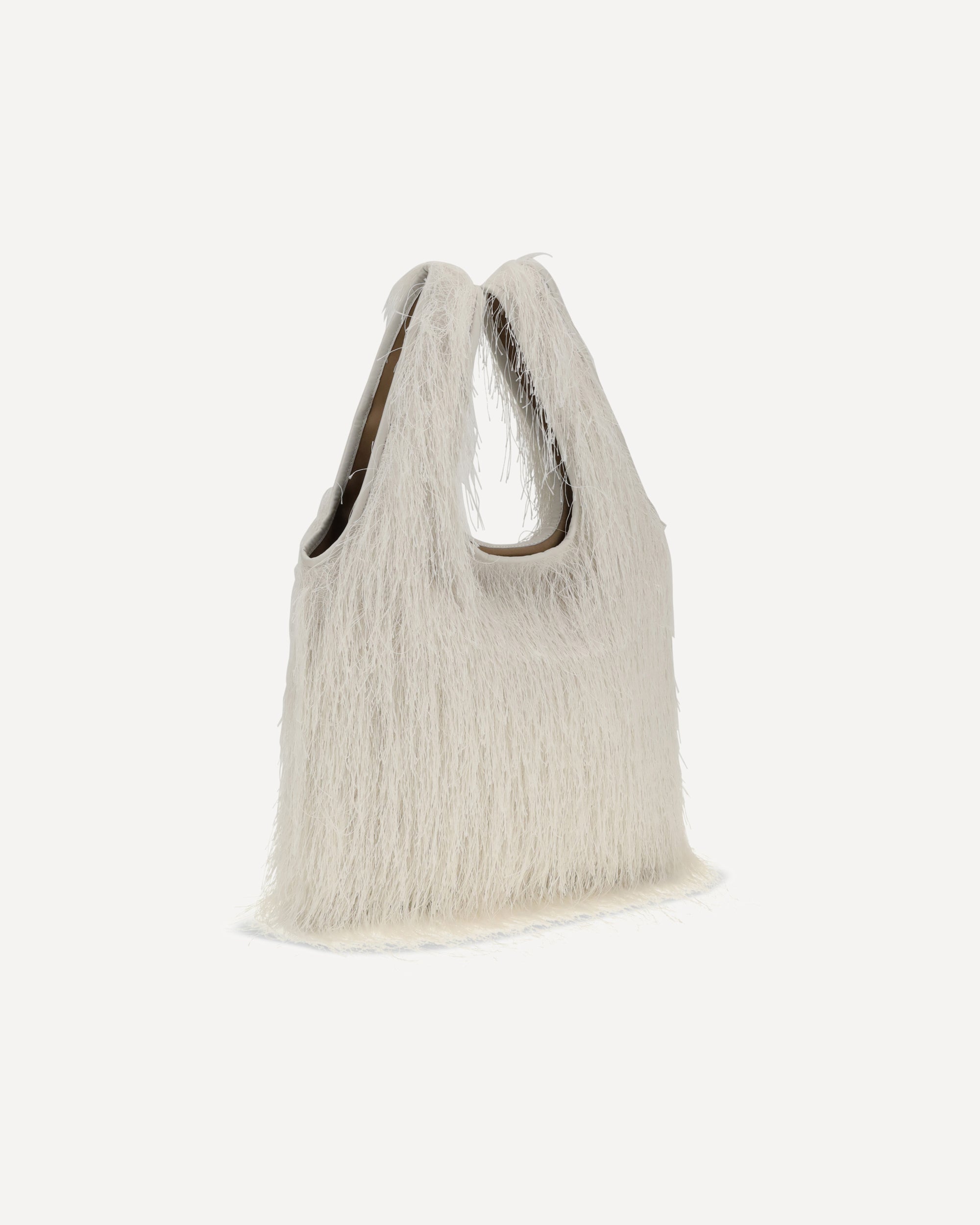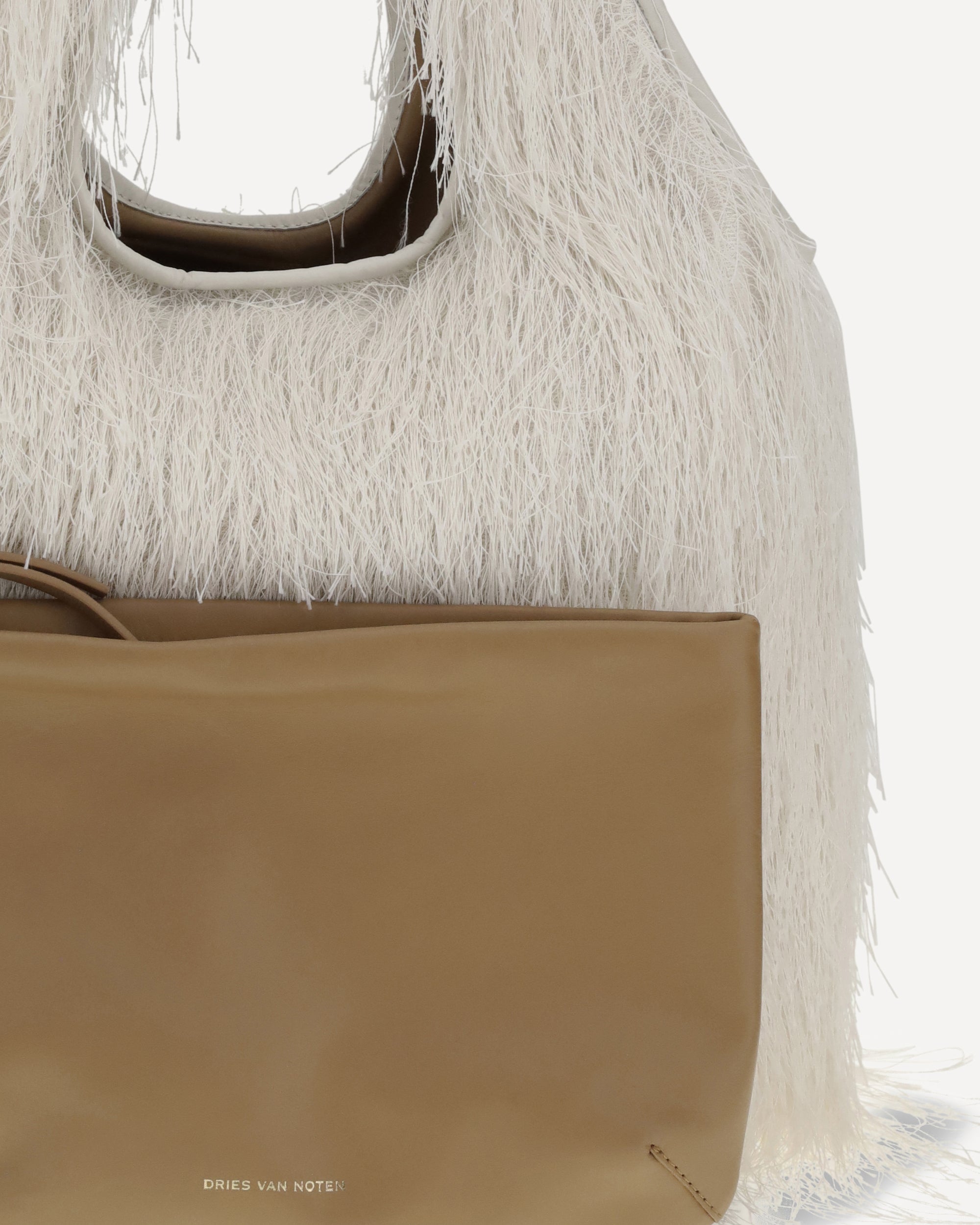The fringed Tote Bag by Dries Van Noten is a dramatic and lightweight accessory, perfect for adding movement and personality to your look. Crafted from flowing fabric with dynamic fringes, it features long handles that allow it to be comfortably worn over the shoulder. A practical detachable internal pouch completes the design, ideal for keeping essentials close at hand.