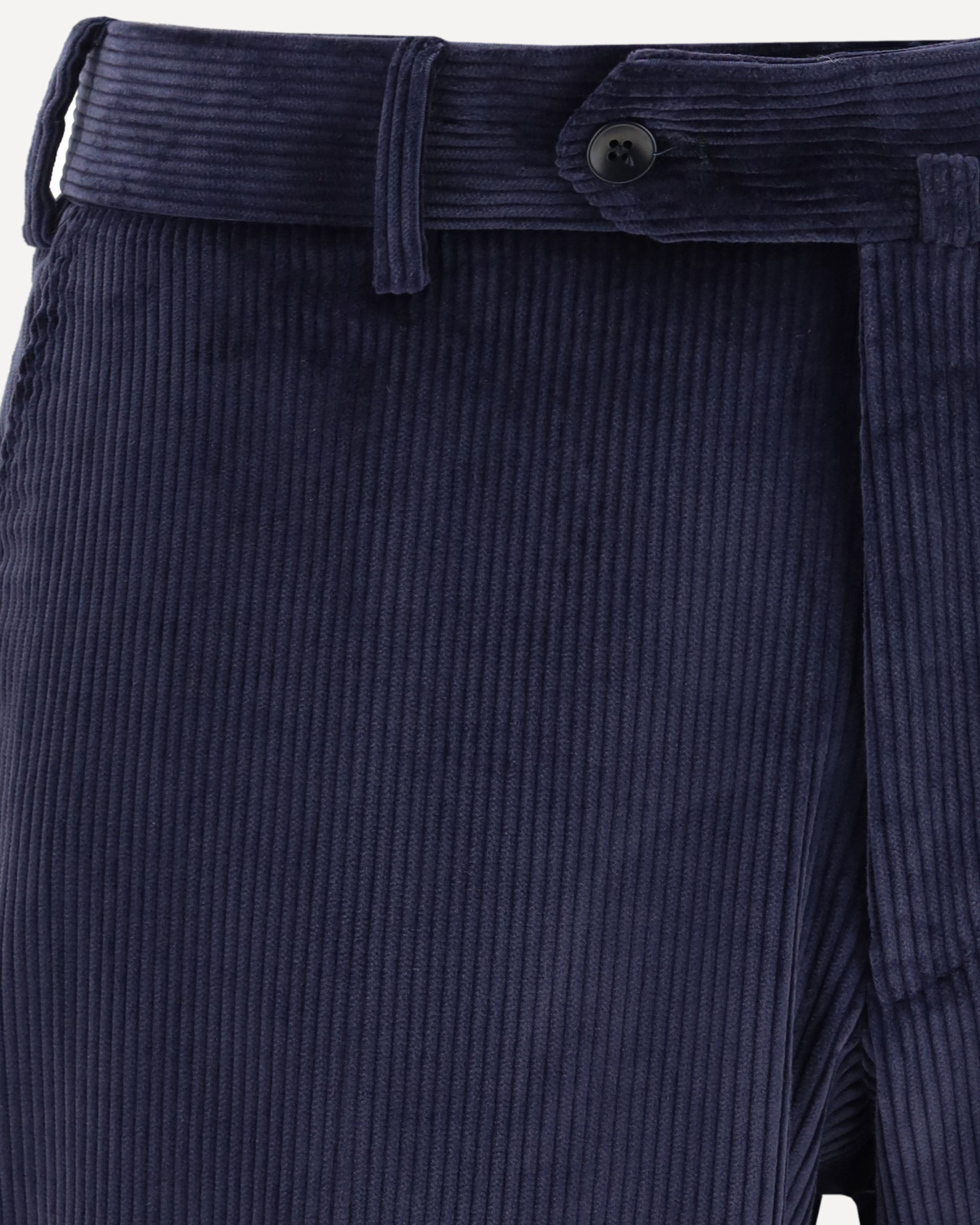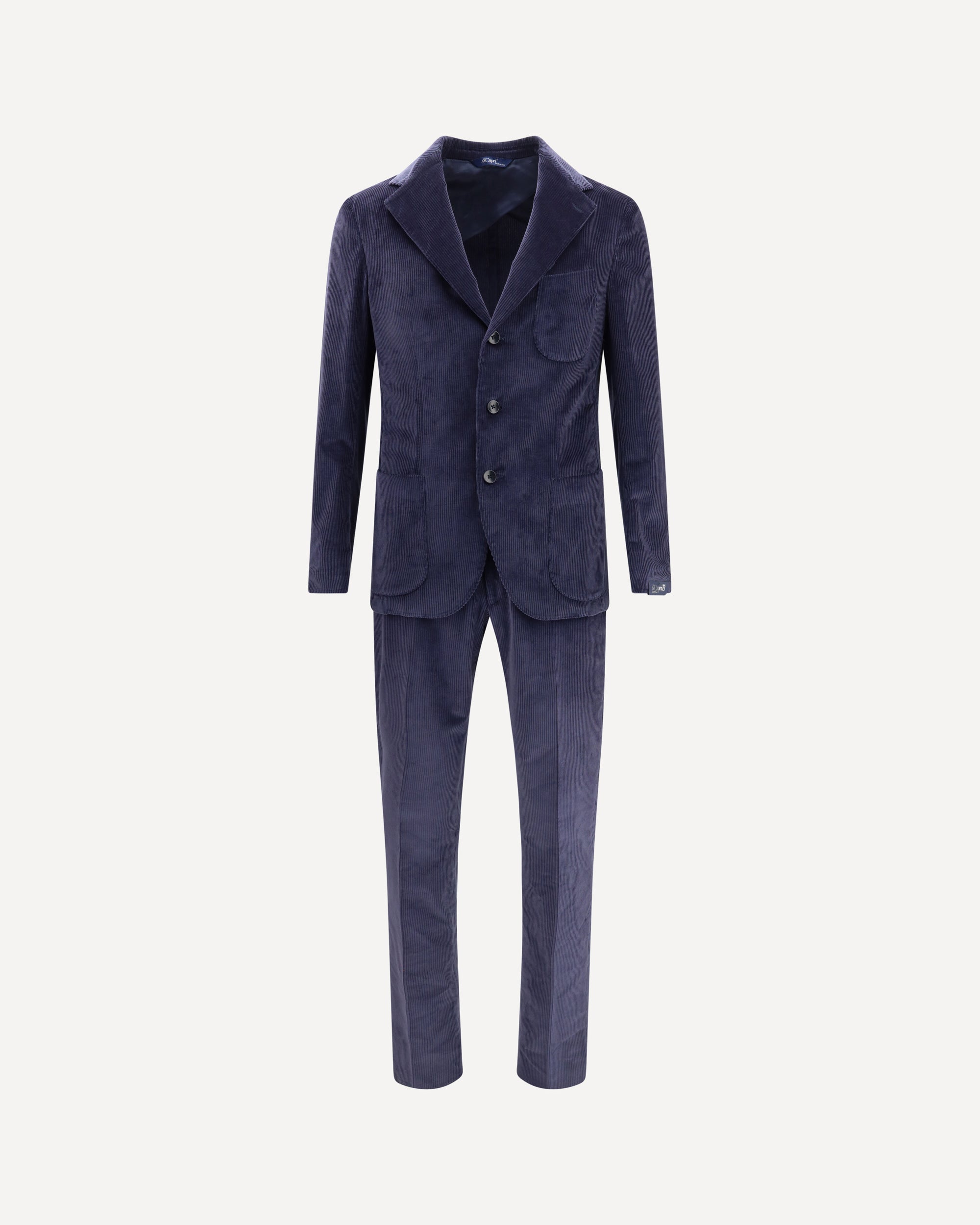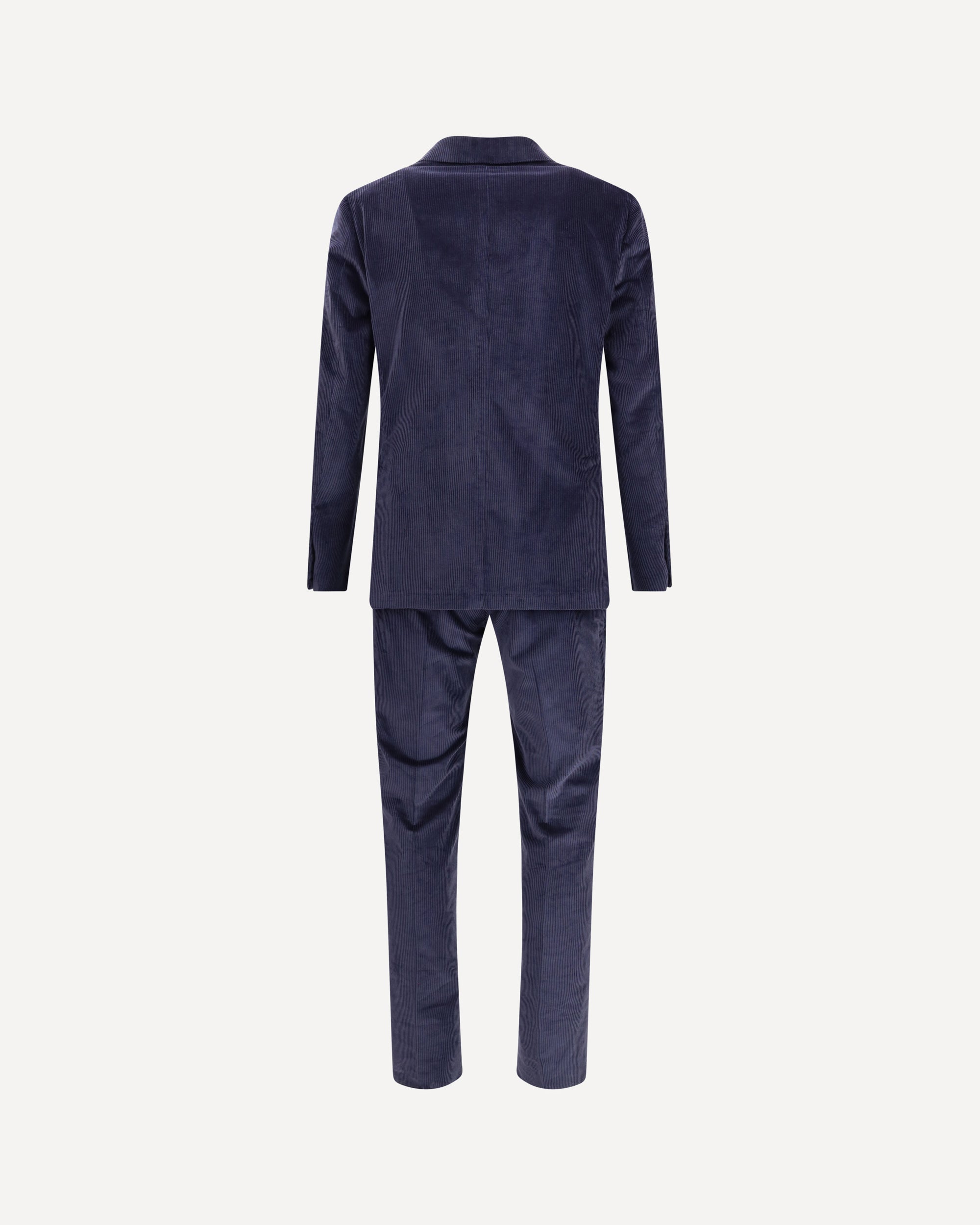 The ribbed cotton Suit by Gi Capri blends refined tailoring with a contemporary and textured aesthetic. The single-breasted blazer, featuring a button closure and back vents, offers a naturally structured silhouette. Peaked lapels and welt pockets highlight its balanced design, while the ribbed cotton fabric adds depth and character. The trousers, detailed with a front zip-and-button fastening, side slash pockets, back welt pockets, and belt loops, ensure a customizable fit. A versatile and elegant suit, ideal for expressing modern sophistication in everyday wear.
