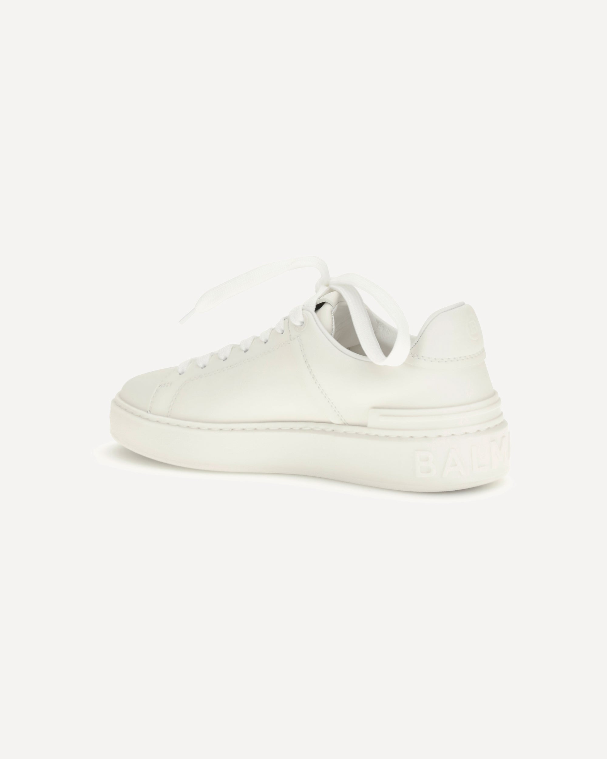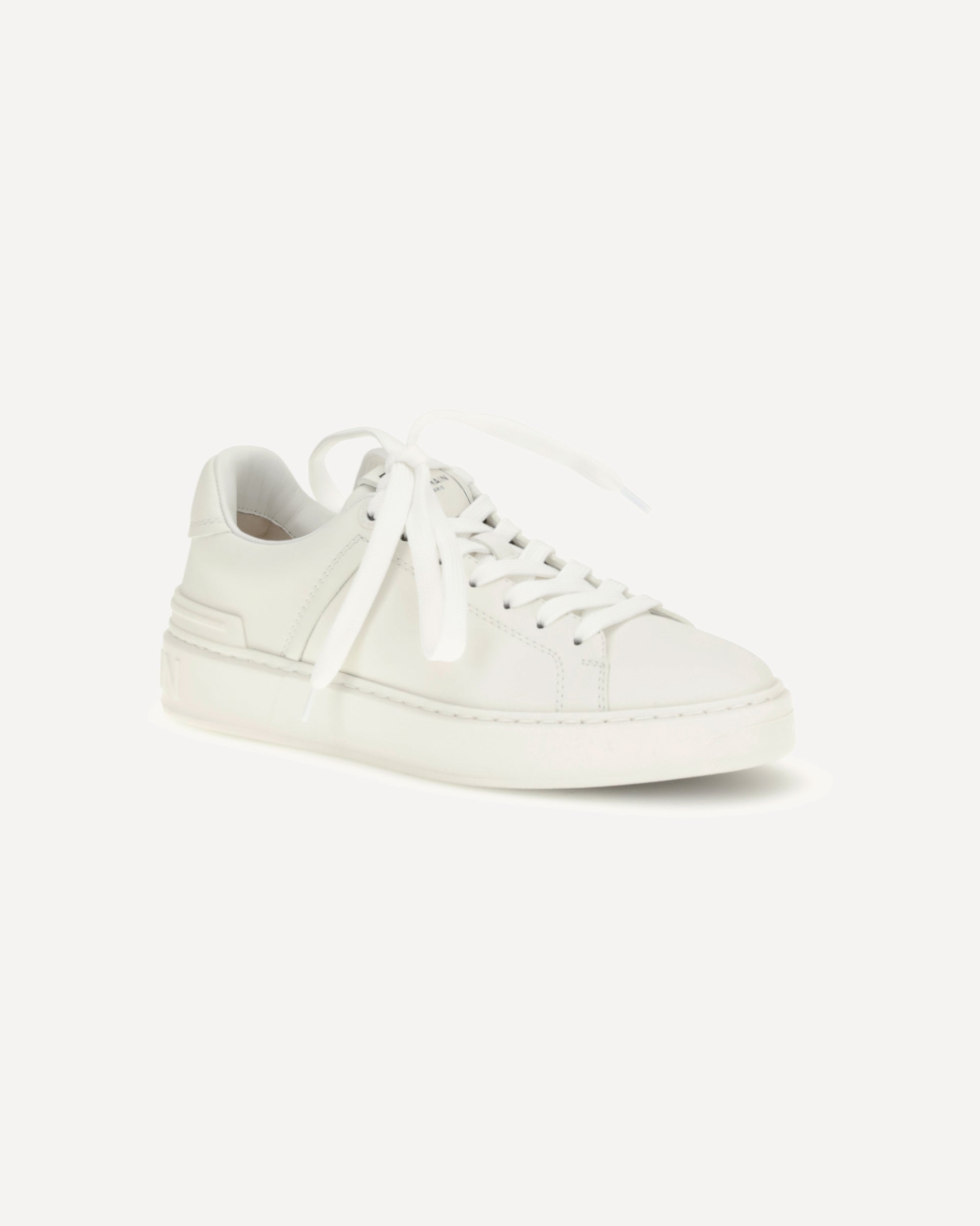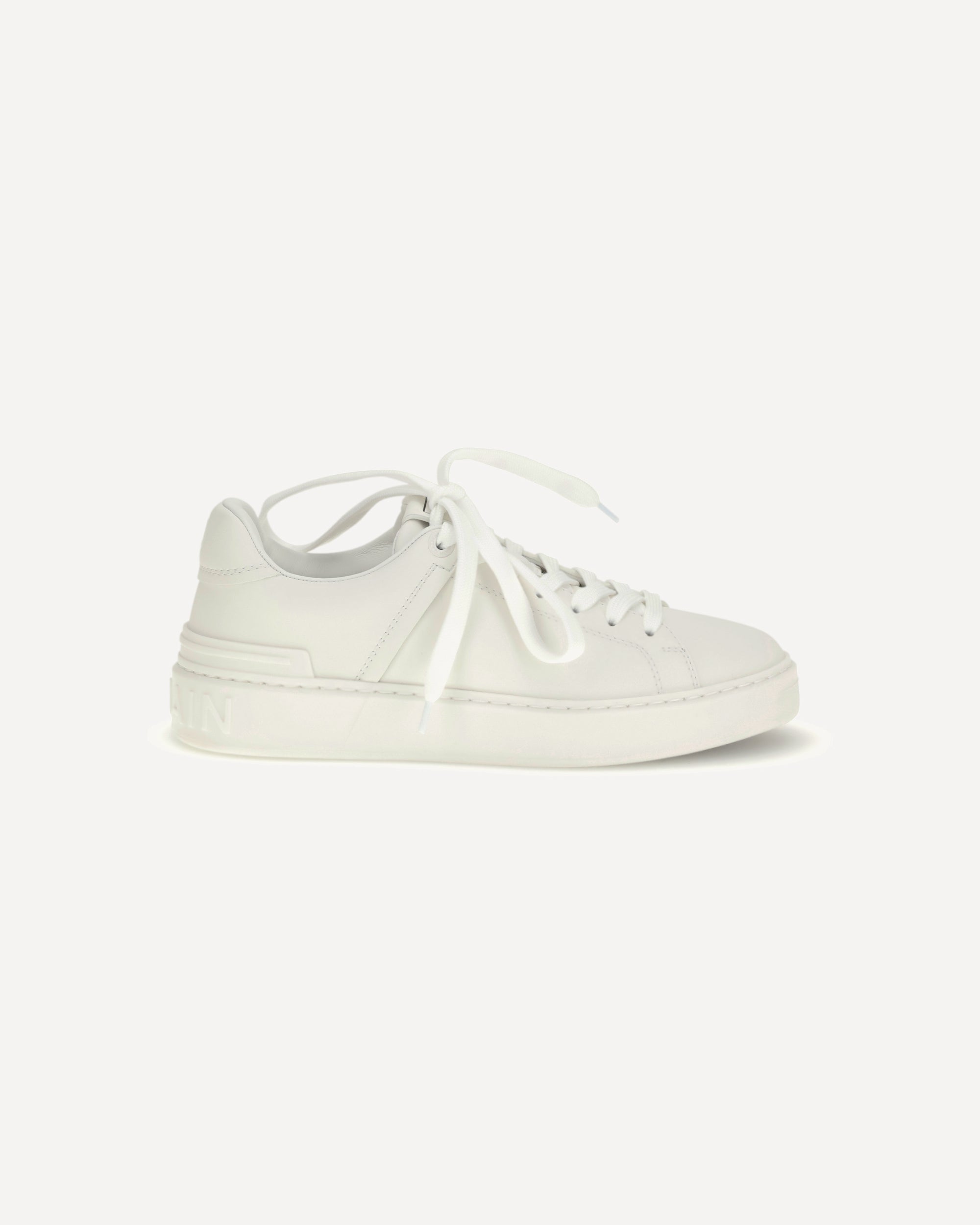 The B-Court Sneakers by Balmain combine clean lines and distinctive details typical of the Maison. They feature a lace-up closure with engraved eyelets and a contrasting leather label decorated with the Balmain Paris logo. The leather counter is embellished with PB logo embossing, adding an iconic touch to a sleek and contemporary model.