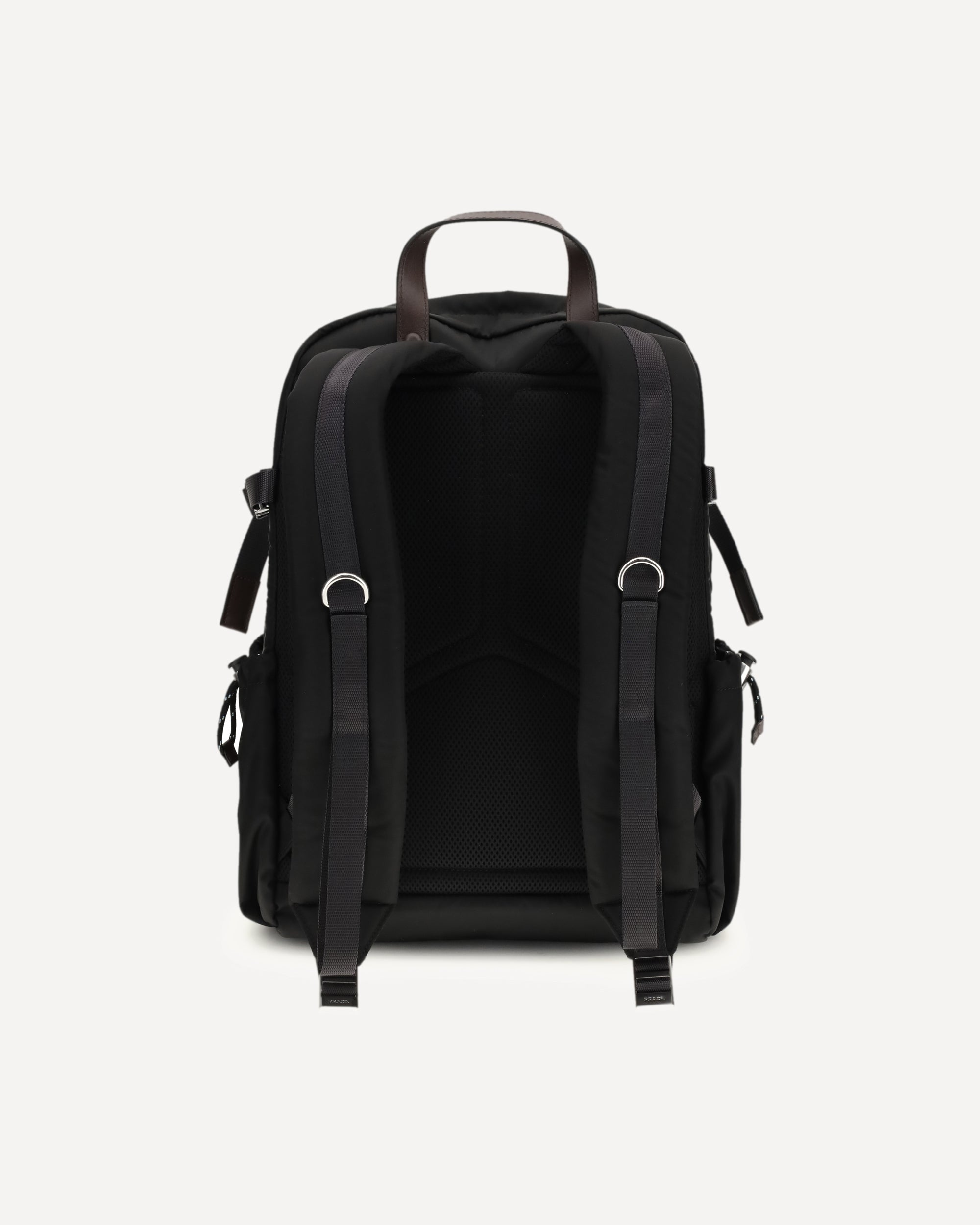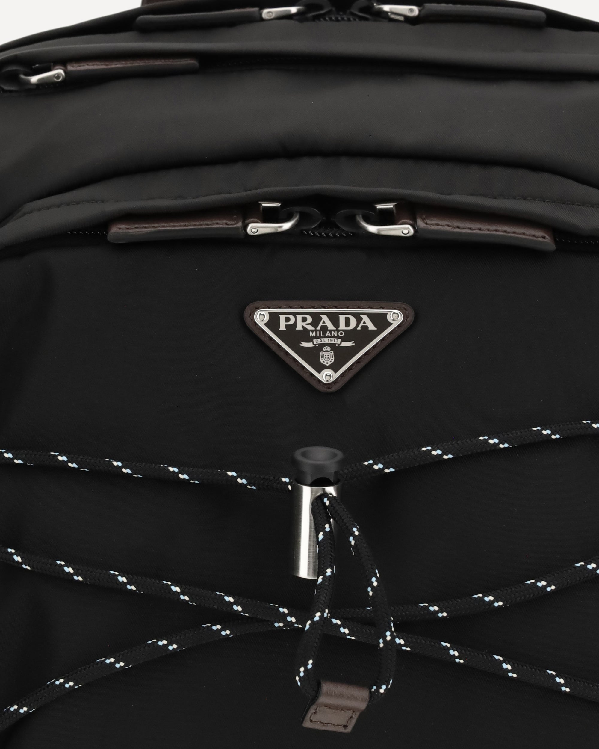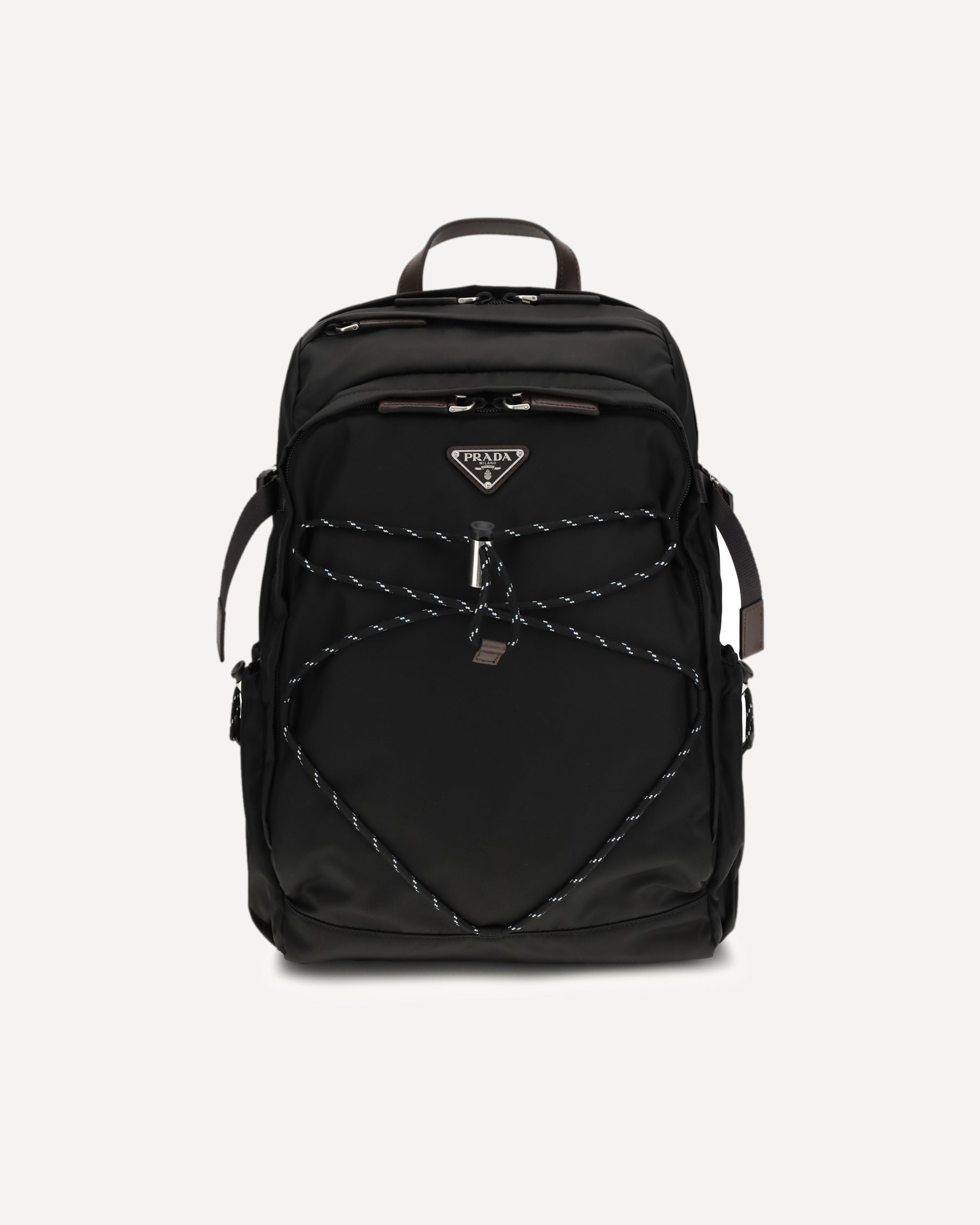 The Re-Nylon and leather Speedrock Backpack by Prada combines technical functionality and urban design. Featuring an adjustable technical drawstring, flat leather handle and adjustable fabric shoulder straps, it ensures comfort and practicality. The triangular enameled metal logo on the front adds iconic detail, while the zippered closure ensures maximum protection.The exterior is organized with three zippered pockets and a drawstring bottle pocket, while the padded mesh back offers breathability. The interior features a zippered pocket and a patch pocket, complemented by the Re-Nylon lining for a technical and sophisticated style.
