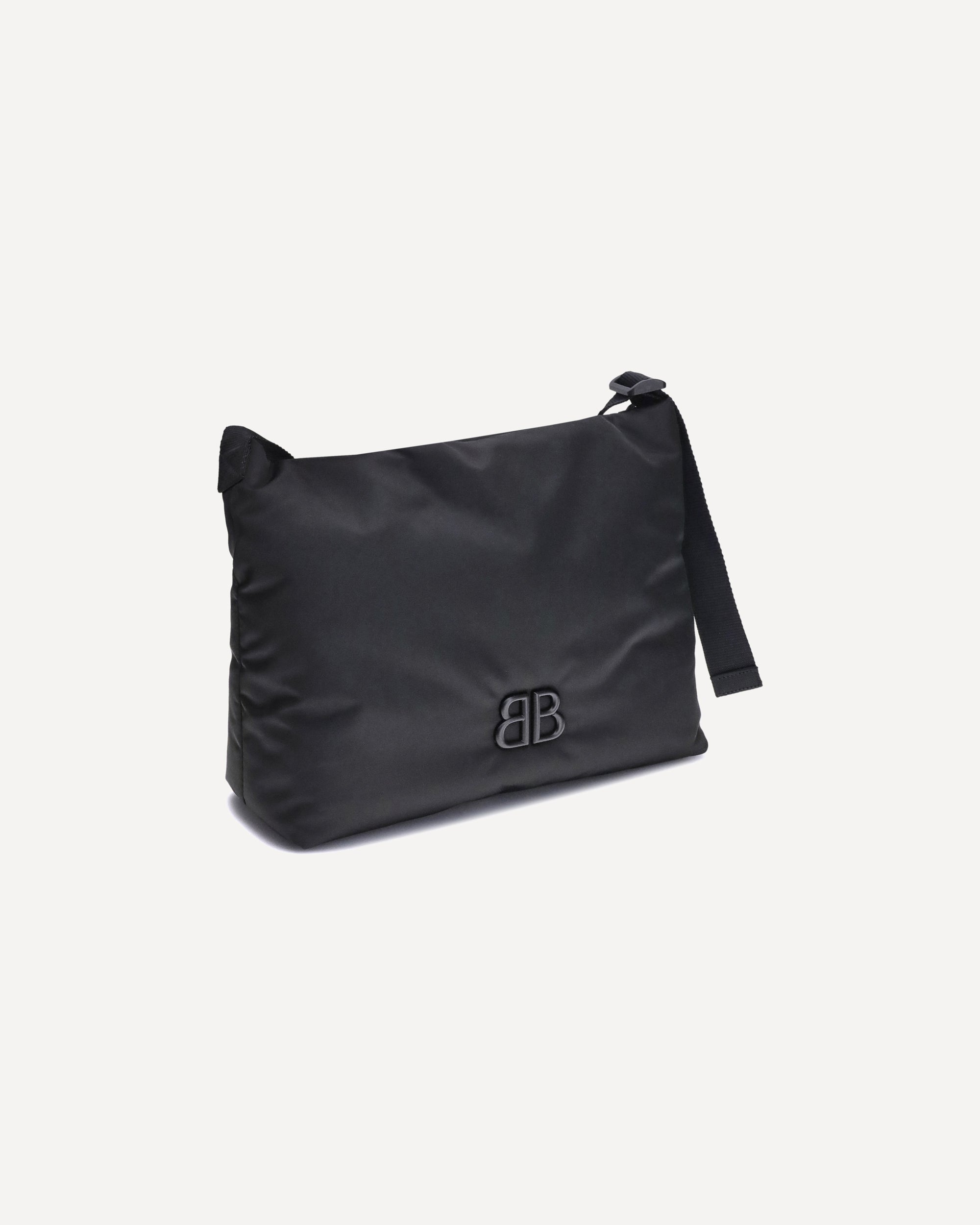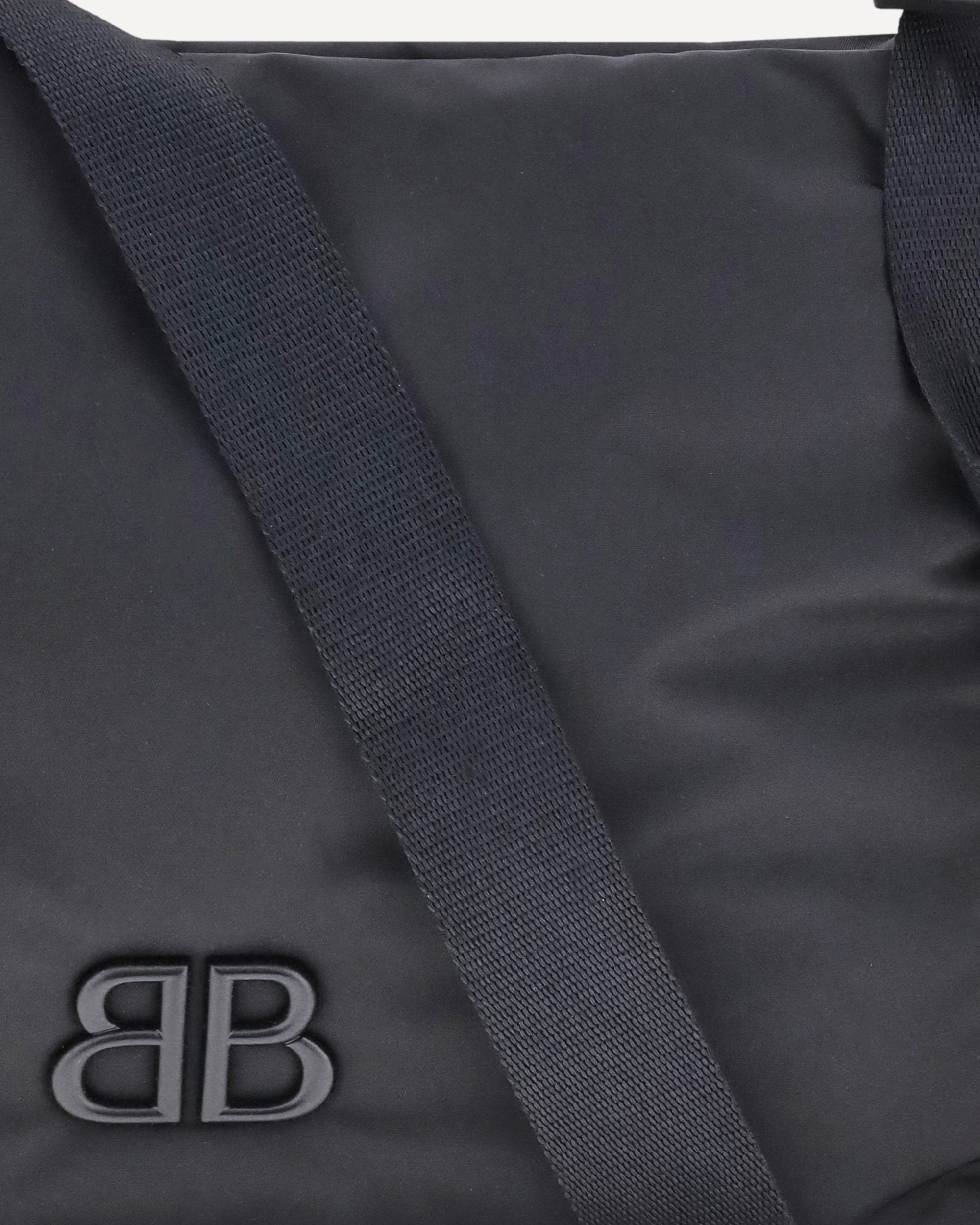 Fabric Shoulder Bag by Balenciaga with a contemporary and versatile design, ideal for everyday use. The flat shoulder strap ensures comfort and practicality, while the BB logoed magnetic flap closure adds a distinctive and prestigious touch. Inside, a single large compartment makes it easy to organize essentials while maintaining a minimal and elegant look. Perfect for those looking for a functional accessory without sacrificing style.