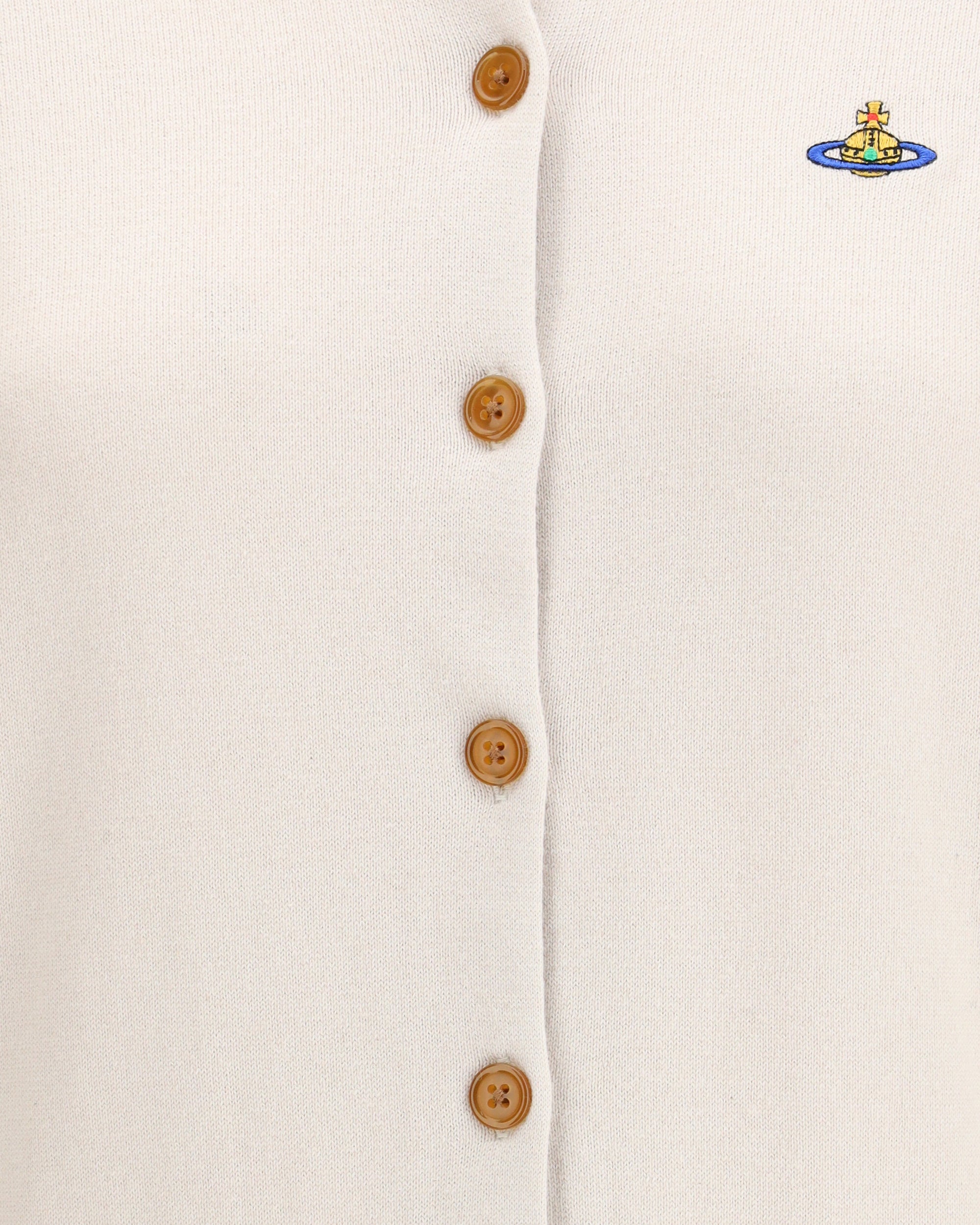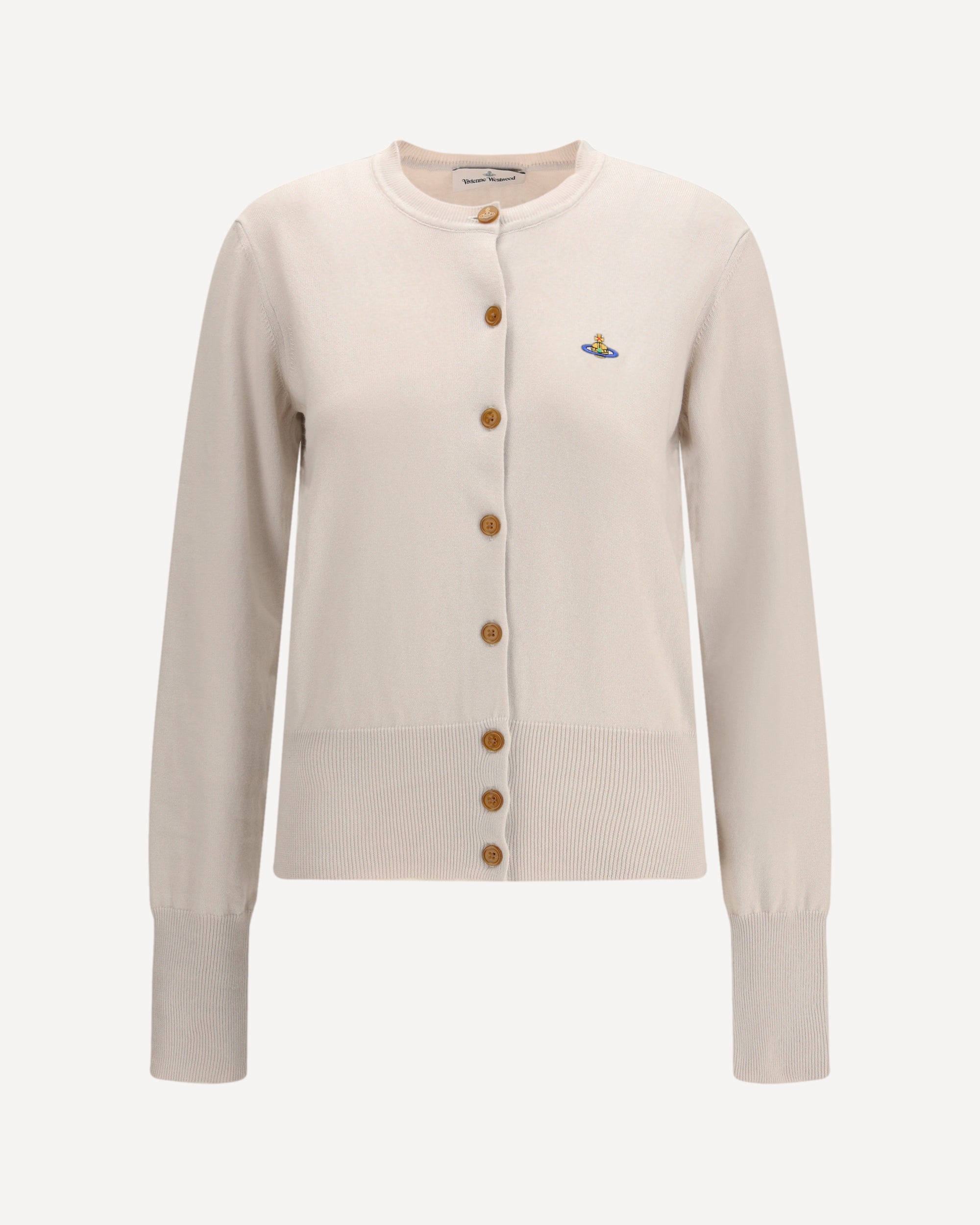 Cotton Bea Cardigan by Vivienne Westwood features a ribbed crew neck and front button closure. Finished with ribbed cuffs and high hem, it features the Orb logo embroidered on the front, the iconic symbol of the fashion house. An essential and versatile garment, perfect for adding a distinctive touch to everyday looks.