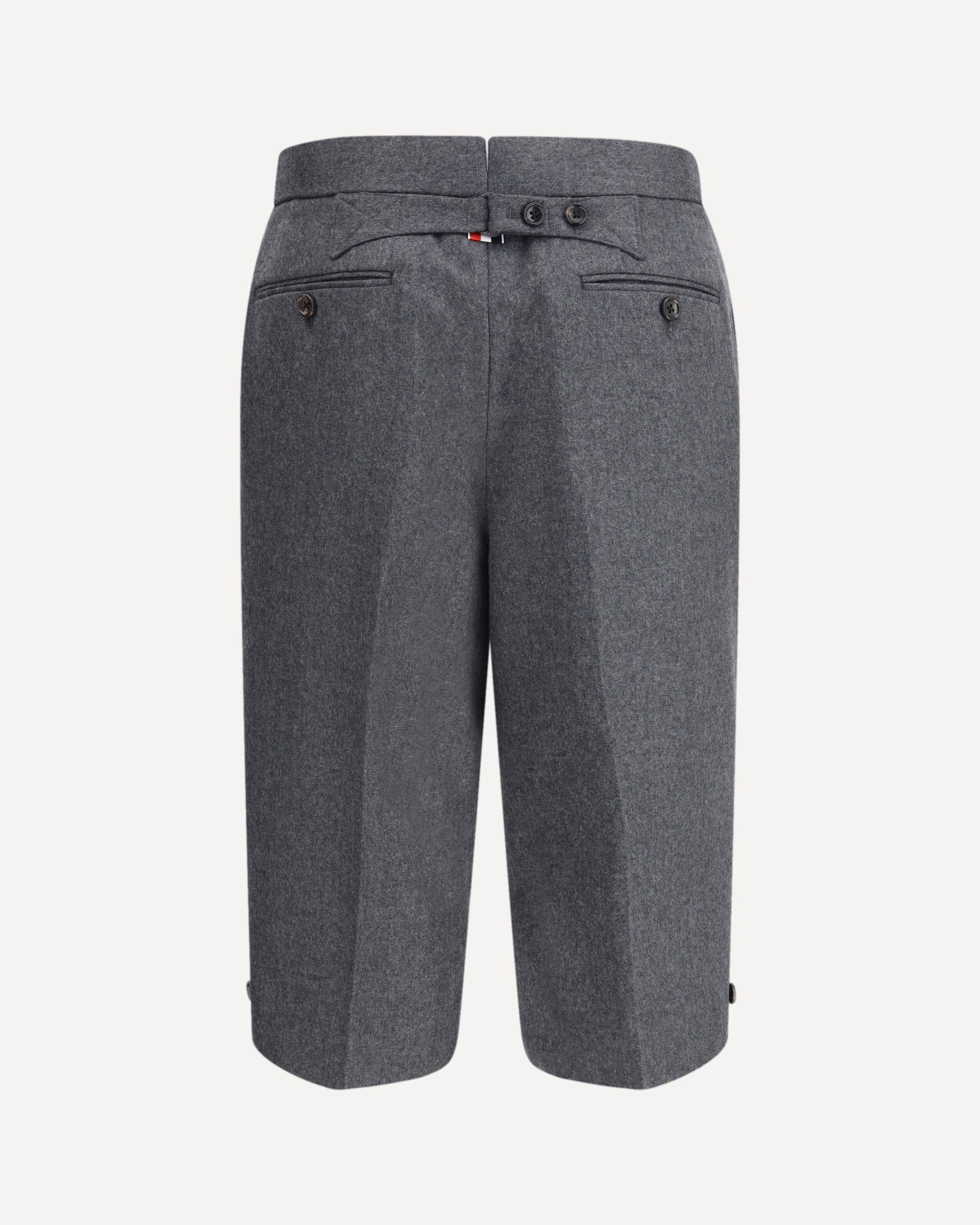 The wool Bermuda Shorts by Thom Browne combine sartorial elegance with contemporary style. They feature a button and concealed hook-and-eye closure, two side pockets and two back welt pockets. Small side slits add comfort and freedom of movement for a refined yet casual look.