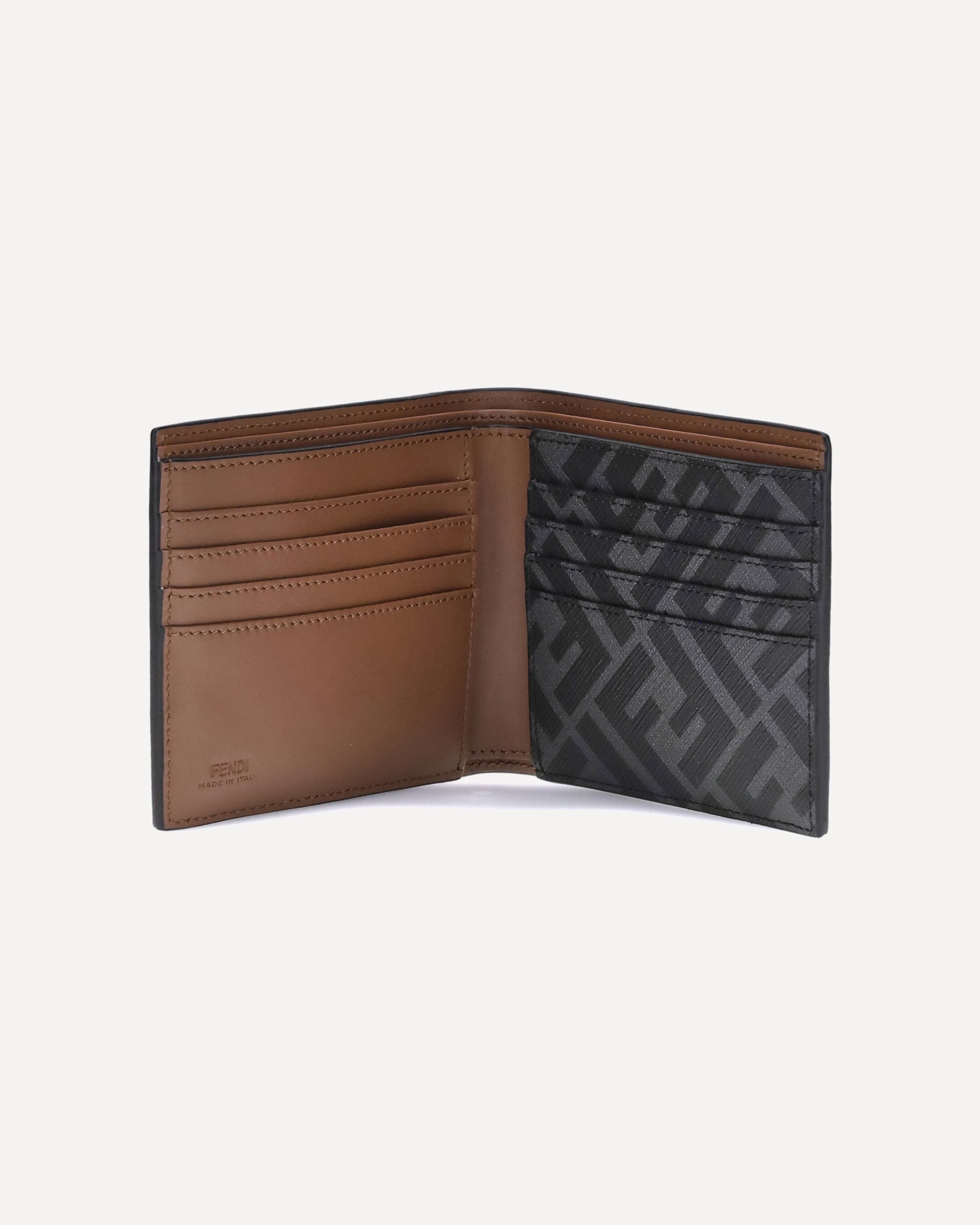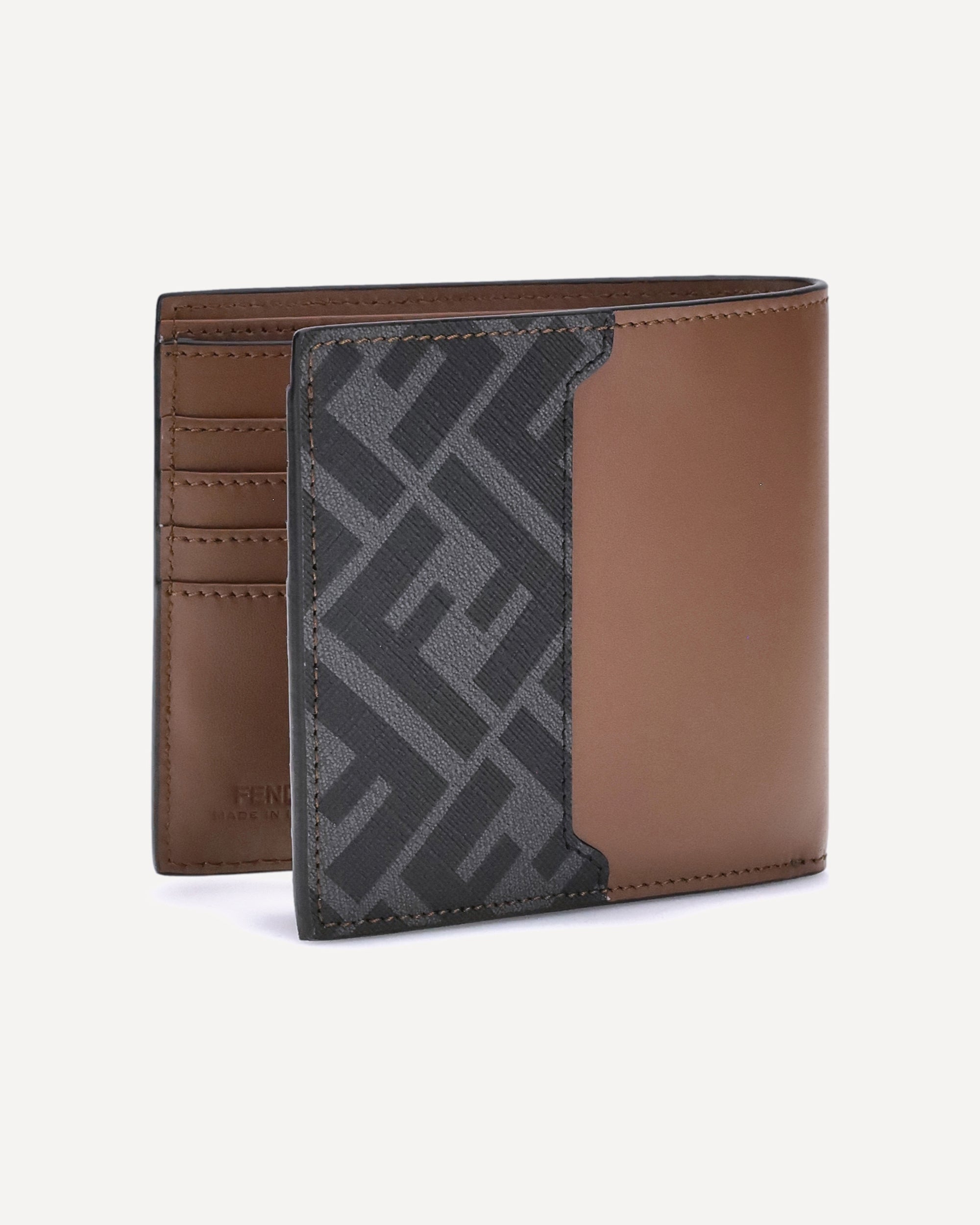 Leather Wallet by Fendi with an elegant and functional design, featuring the classic bifold model. The front is decorated with the three-dimensional plaque of the iconic FF logo, while the back features the contrasting FF motif repeated on the panel. The interior features card slots, a compartment for banknotes and a card slot pocket on the back, for compact and stylish organization.