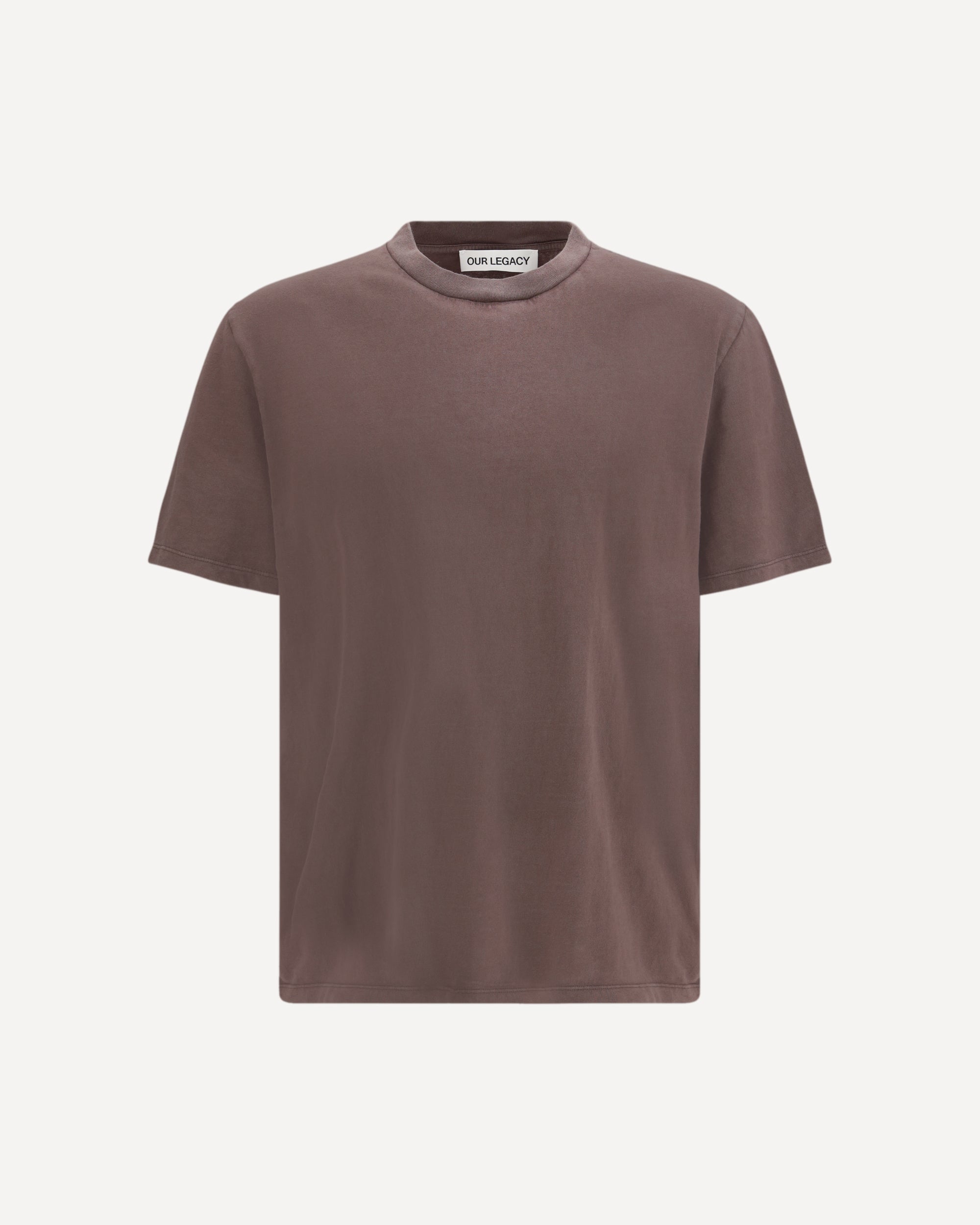 The Box T-shirt in Legacy Jersey by Our Legacy, featuring a relaxed, slightly boxy silhouette. The Worn Brown hue comes from natural pigment dyeing, giving the piece an authentic, lived-in look. The ribbed collar and straight hem refine this essential design with understated character.