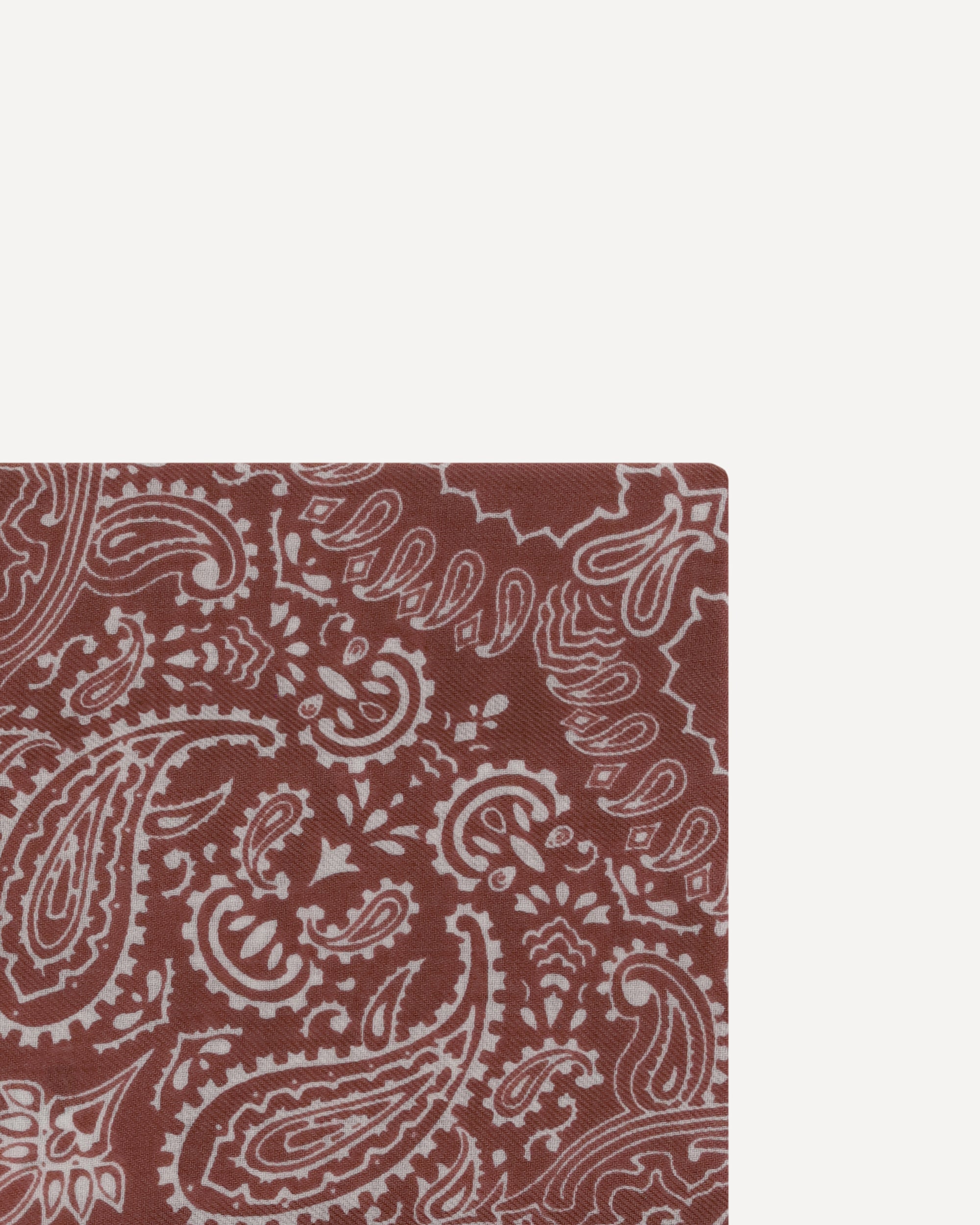 Destin's Bandana Scarf is made of soft wool and features a classic bandana pattern. Measuring 90x90 cm, it combines comfort and style in a versatile and characterful accessory.