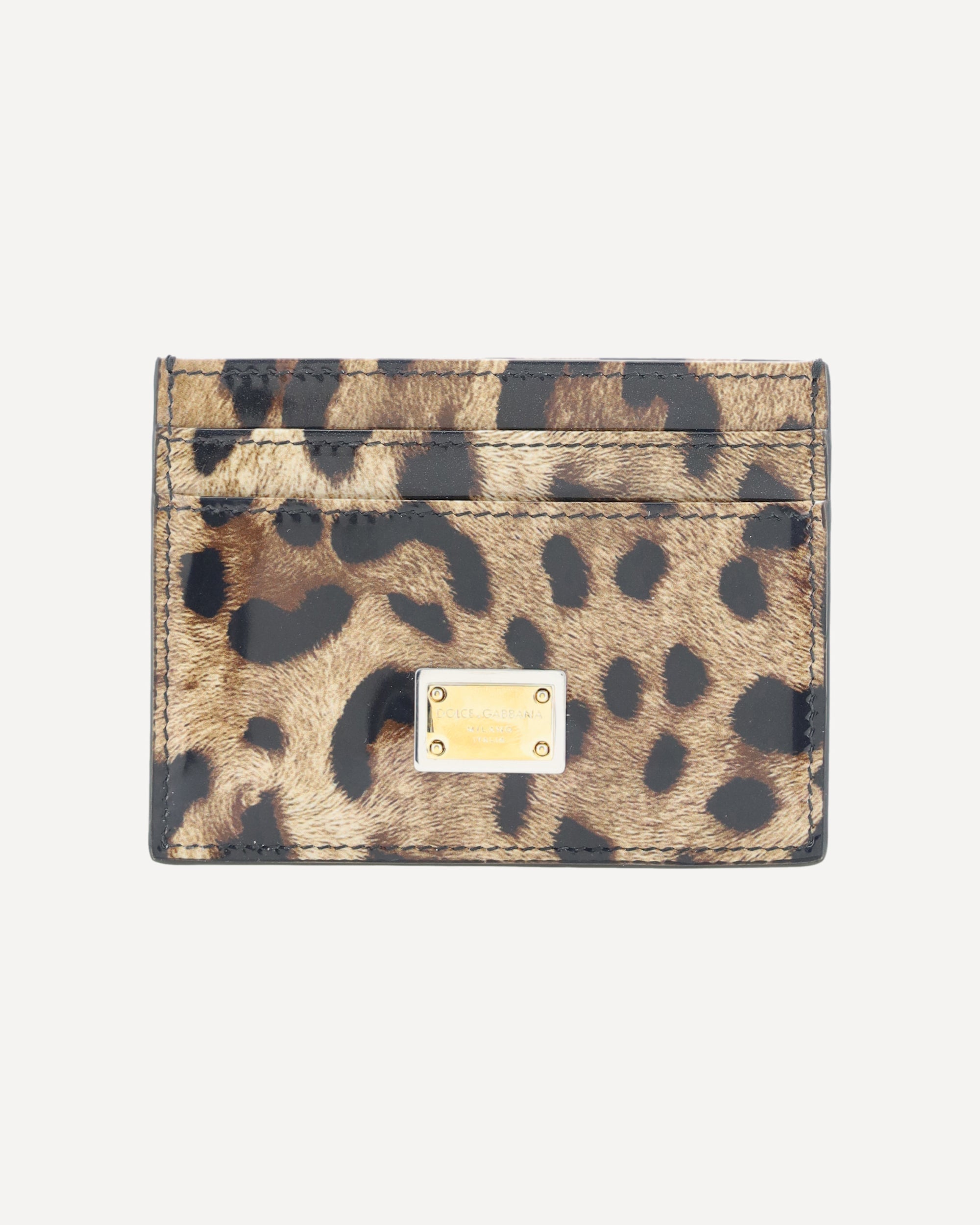 Leather Card Holder by Dolce&Gabbana, all-over leopard print, three-dimensional plaque with iconic brand signature applied on front, card slots on front and back.