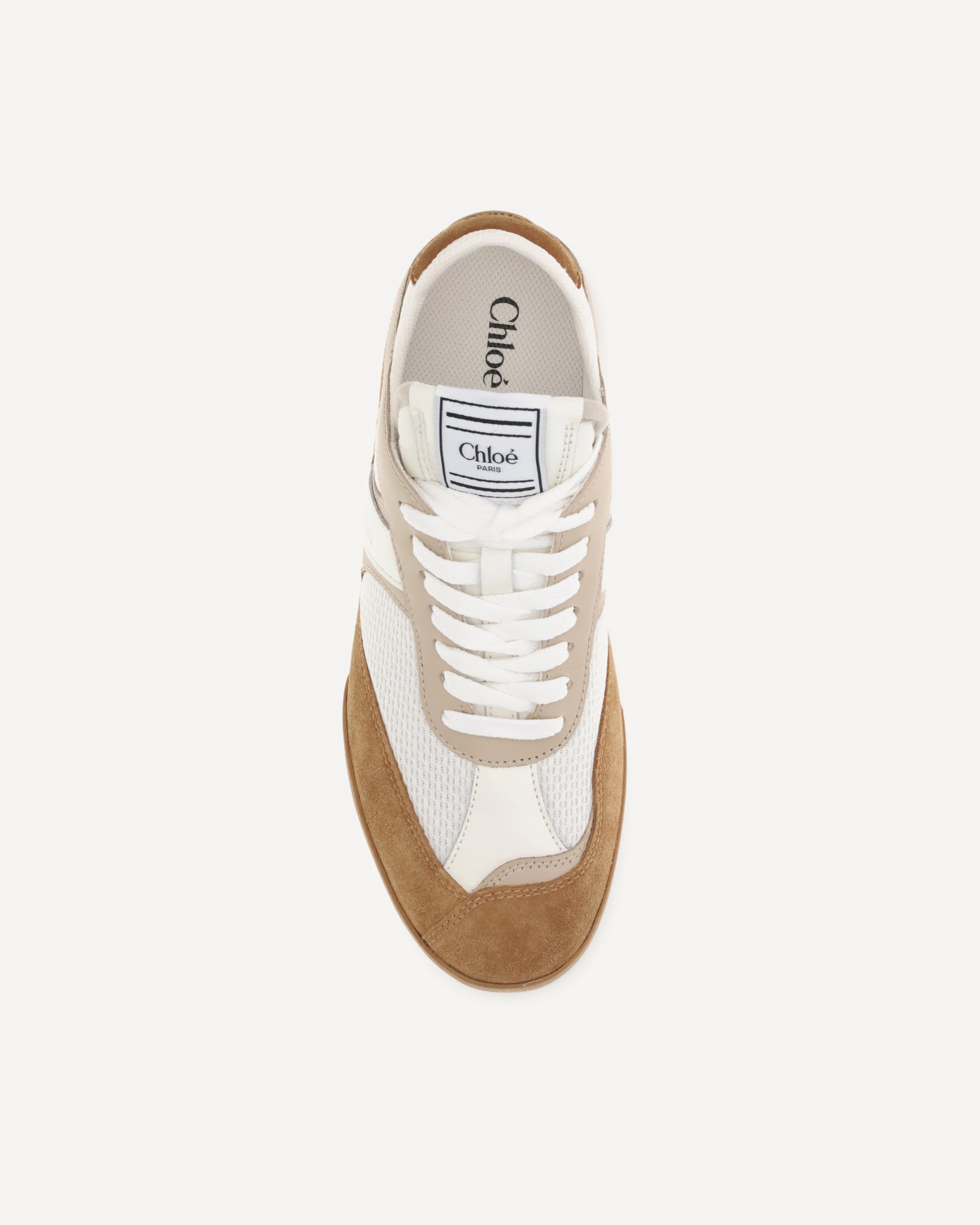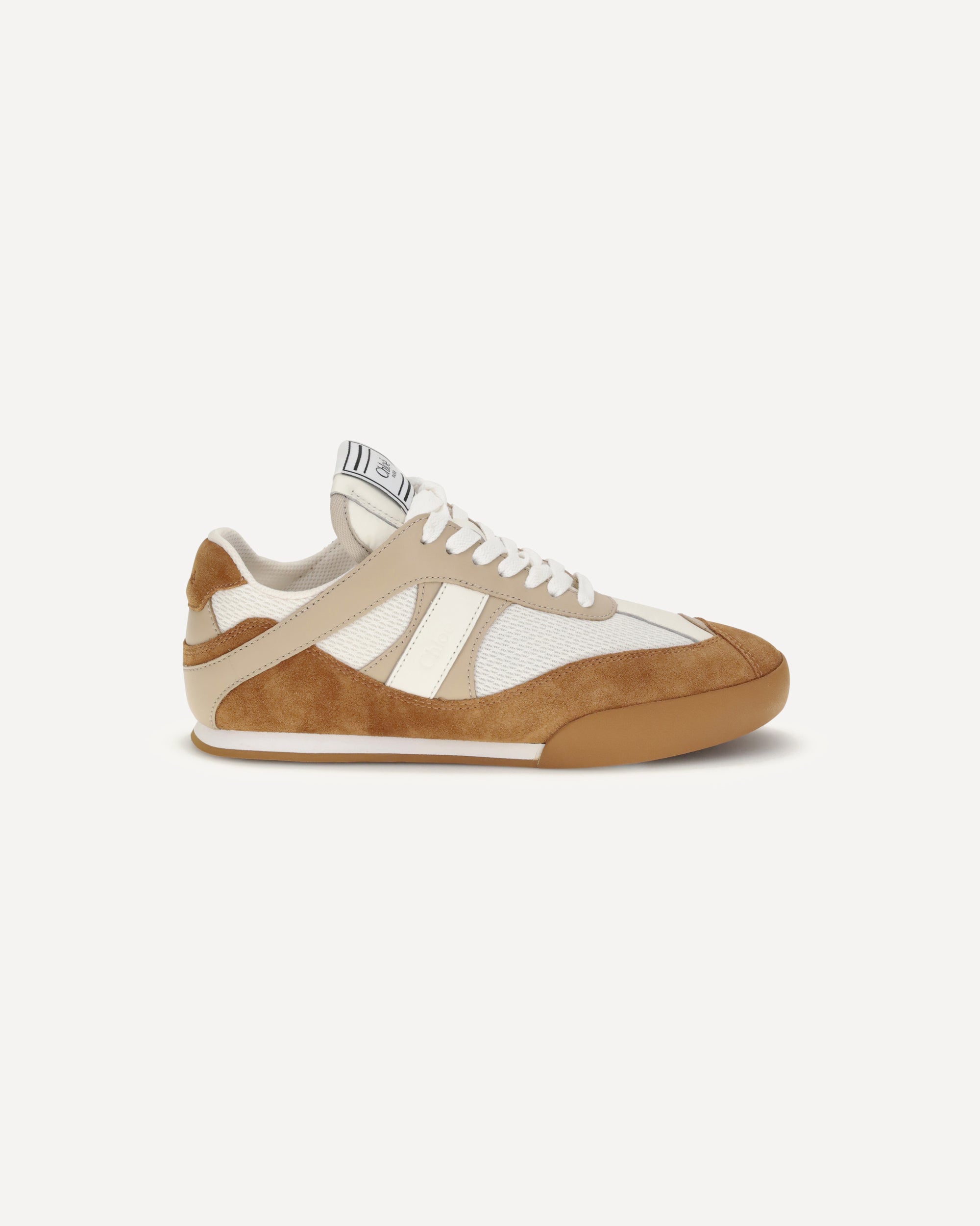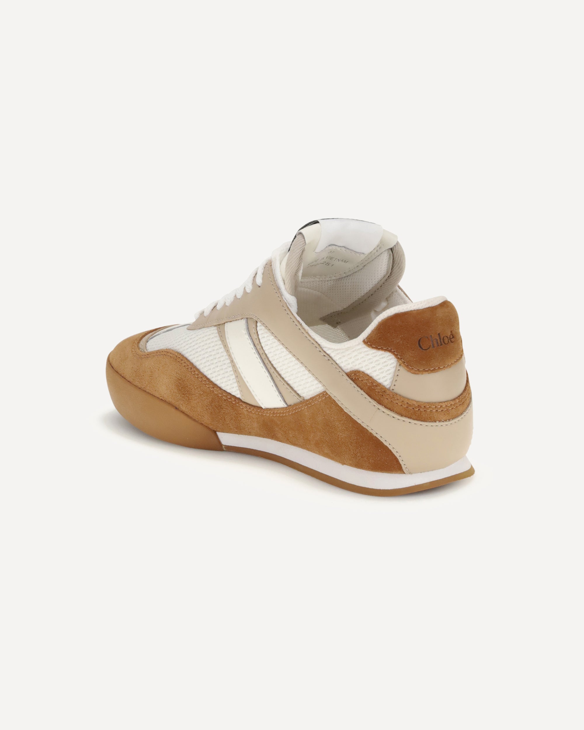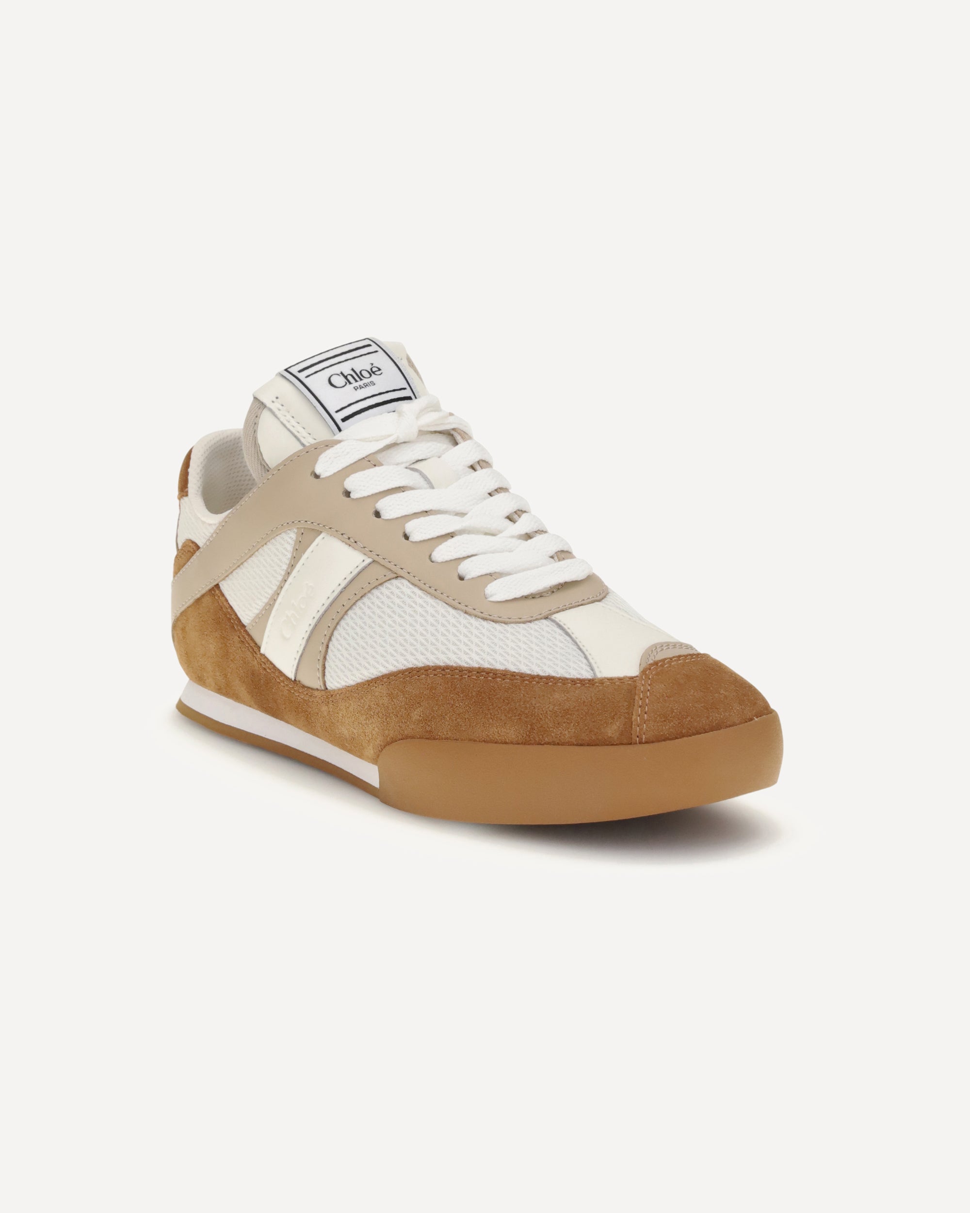 The Kick Sneakers by Chloé are inspired by the worlds of ballet and boxing. Made from recycled technical mesh and a mix of smooth and suede calfskin, they feature an updated design with a lighter silhouette and the Chloé logo embossed on the sides and back.Comfortable and functional, they combine a recycled sole with an inner wedge for added height and support. The boxing-style label with the Chloé logo completes the look with a distinctive touch.