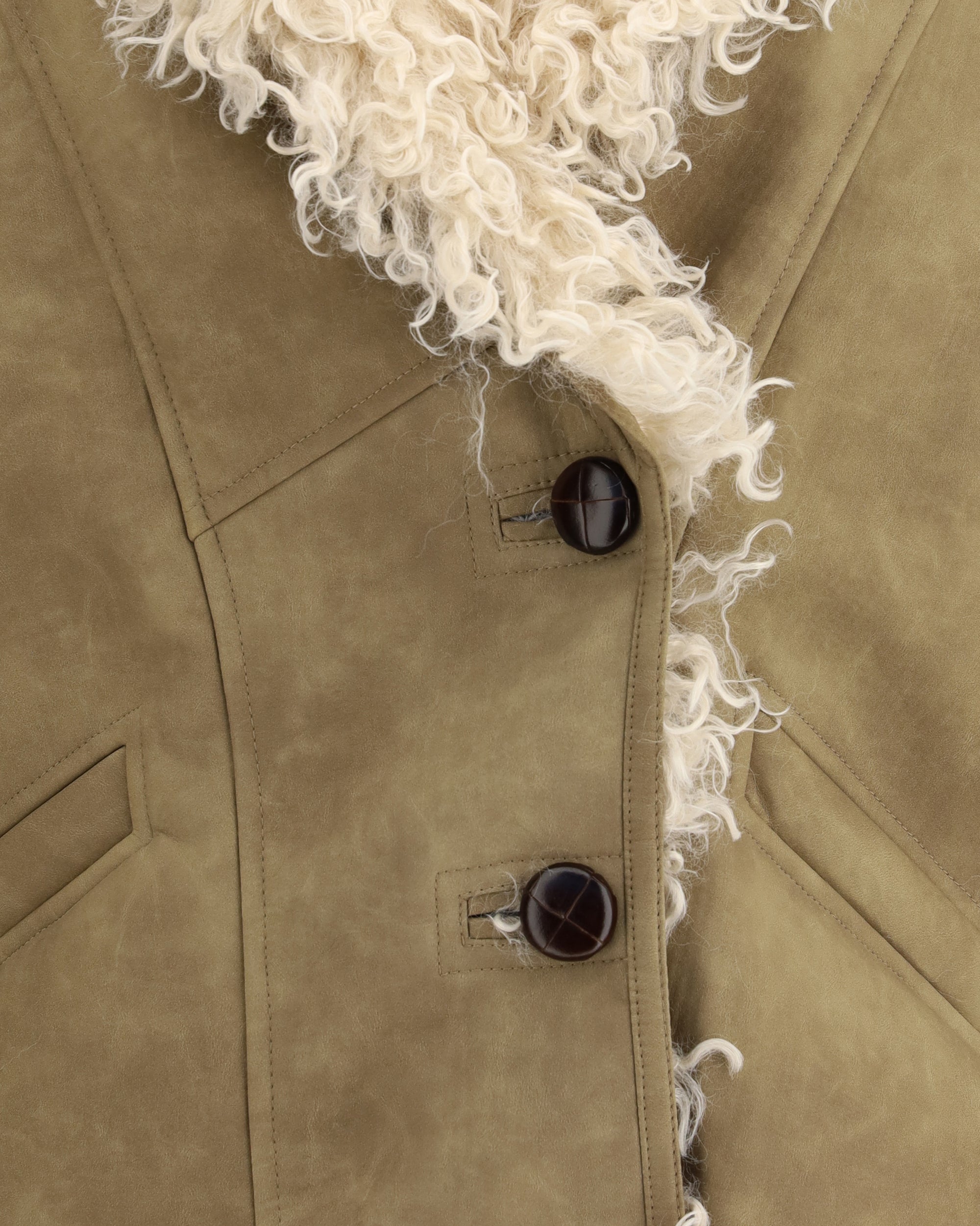 Marant Étoile's Clea Shearling-effect faux fur Coat combines warmth and style in a sophisticated design. Featuring a shawl collar, front button closure, long sleeves and raglan side pockets, it has a versatile and feminine midi cut, ideal for completing winter looks with elegance.