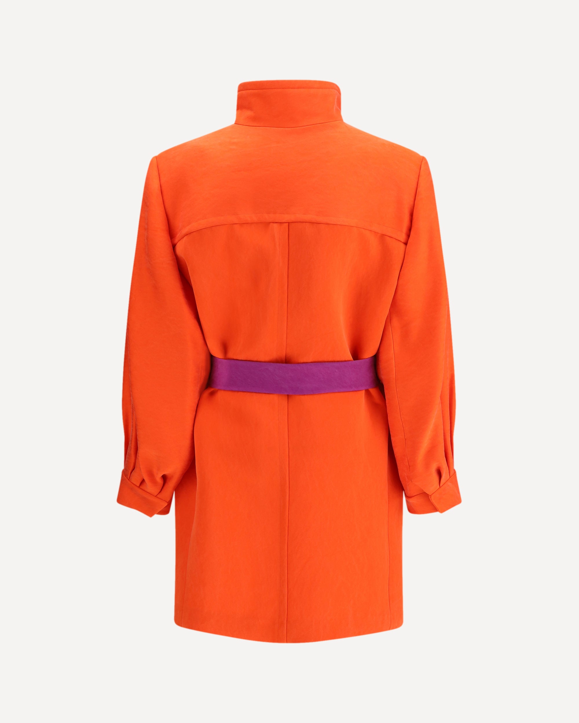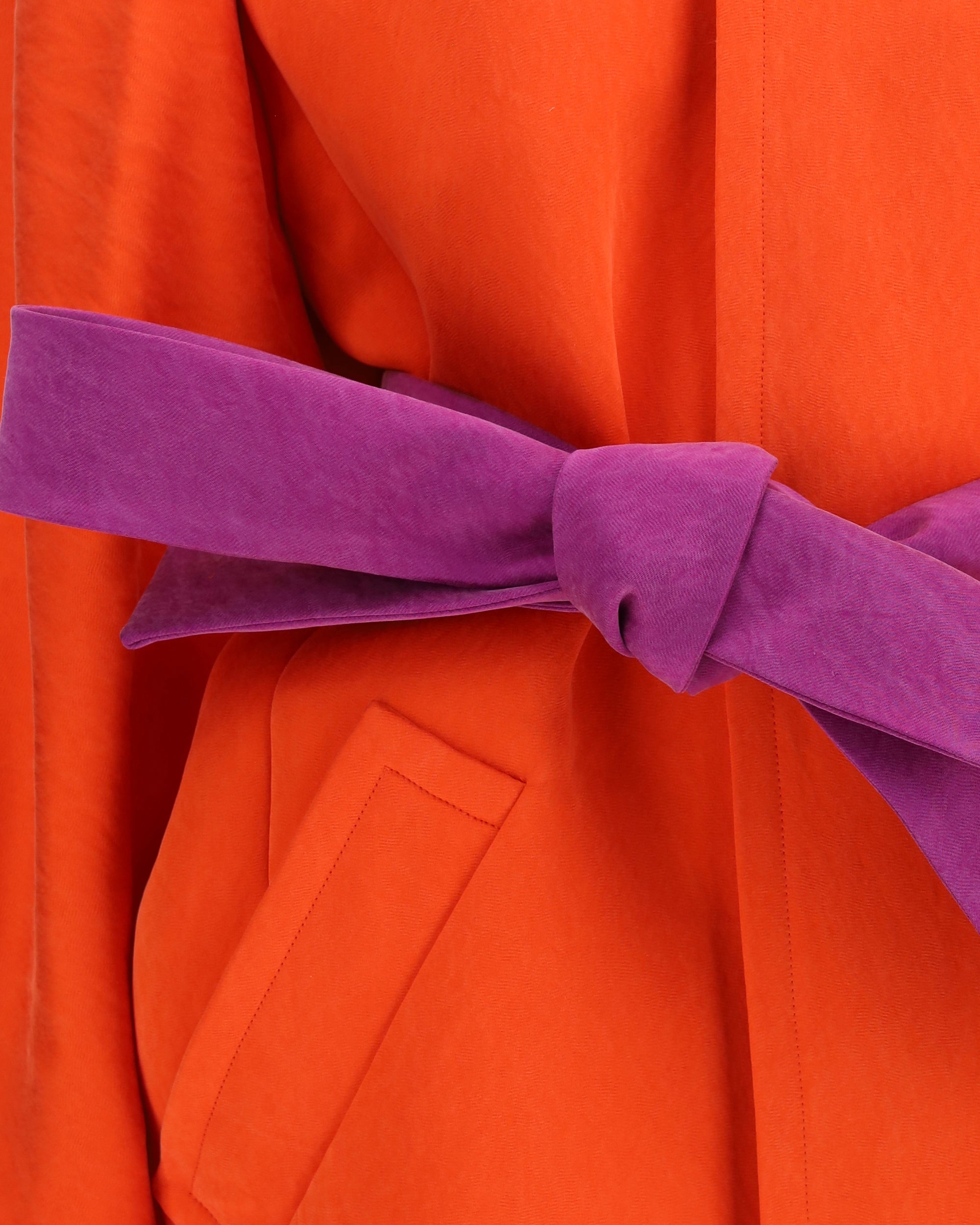 The Belted Stonewashed Silk Satin Coat by Yves Saint Laurent is crafted from certified silk with a subtle sheen and features a smooth satin lining. The design includes a stand-up collar with a snap button, puff sleeves, and a concealed front fastening. Front welt pockets and single-button cuffs complete the impeccable construction, enhanced by a contrasting belt that ties at the waist to define the silhouette. Elegant and refined, it embodies the Maison’s aesthetic with a perfect balance of tailored structure and fluid sensuality.
