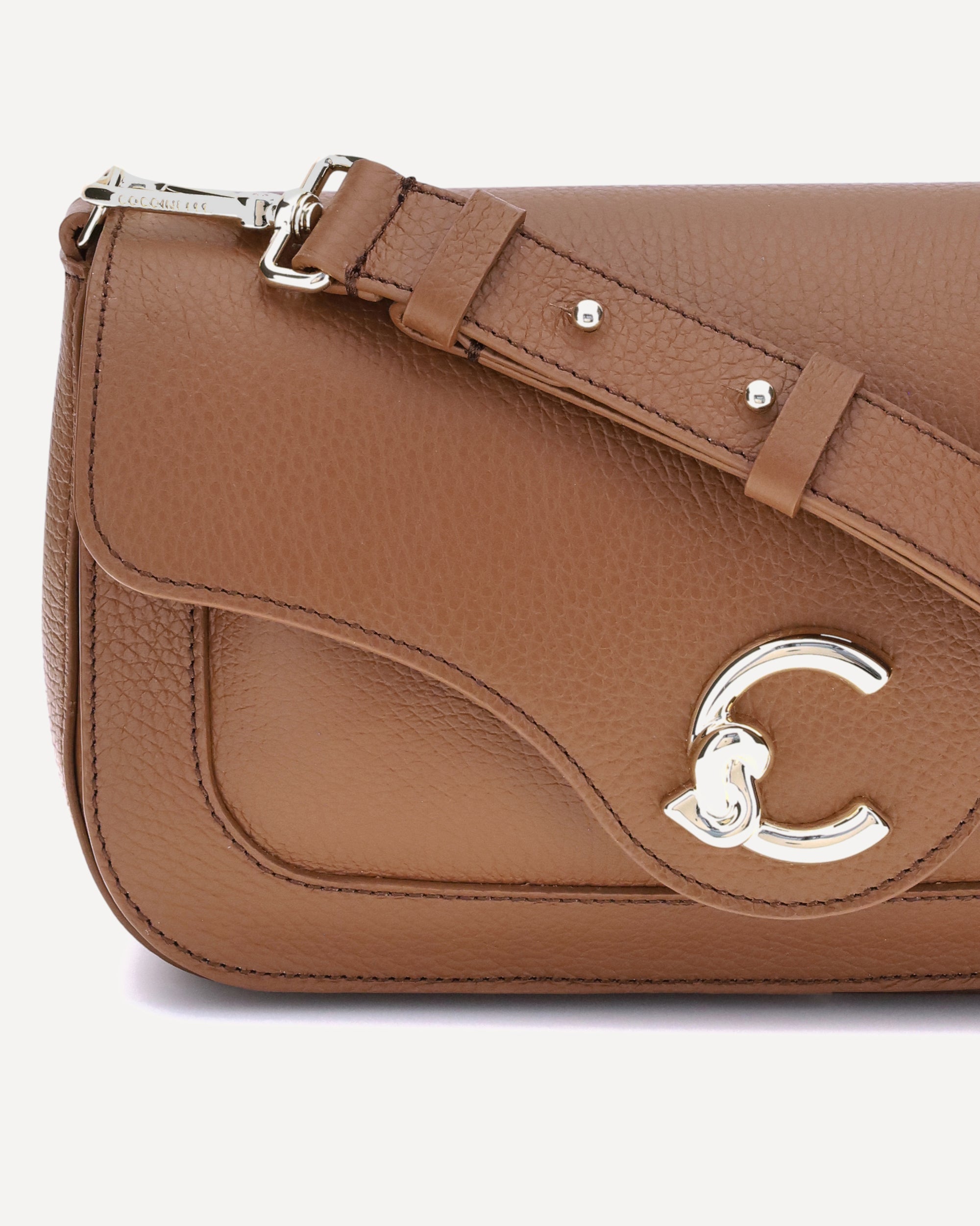 The C-Me Shoulder Bag by Coccinelle is a perfect balance between elegance and practicality, made of natural grain leather that enhances its refinement. The design is enhanced by the detail of the C-Me logo and the gold stamp, distinctive symbols of the brand. Equipped with a magnetic closure, it has a gusset construction that amplifies its capacity, with a front pocket and an internal zip pocket for perfect organization. The adjustable and removable handle allows you to wear it both on the shoulder, even in the long version, and as a crossbody, for an always versatile style.