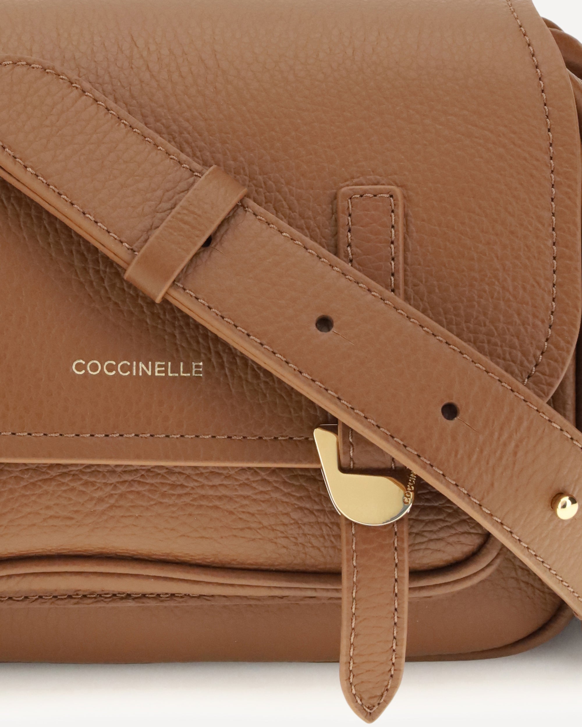 The Campus Small Bag by La Coccinelle combines elegance and practicality with its refined grained leather and secure zip and magnetic flap closure. The adjustable and removable leather shoulder strap offers versatile carrying options. Inside, two pockets and two compartments, one with a zip, provide organized space. The high-quality interior fabric and gold-plated accents, including the stamped logo, complete the design with a subtle touch of luxury.