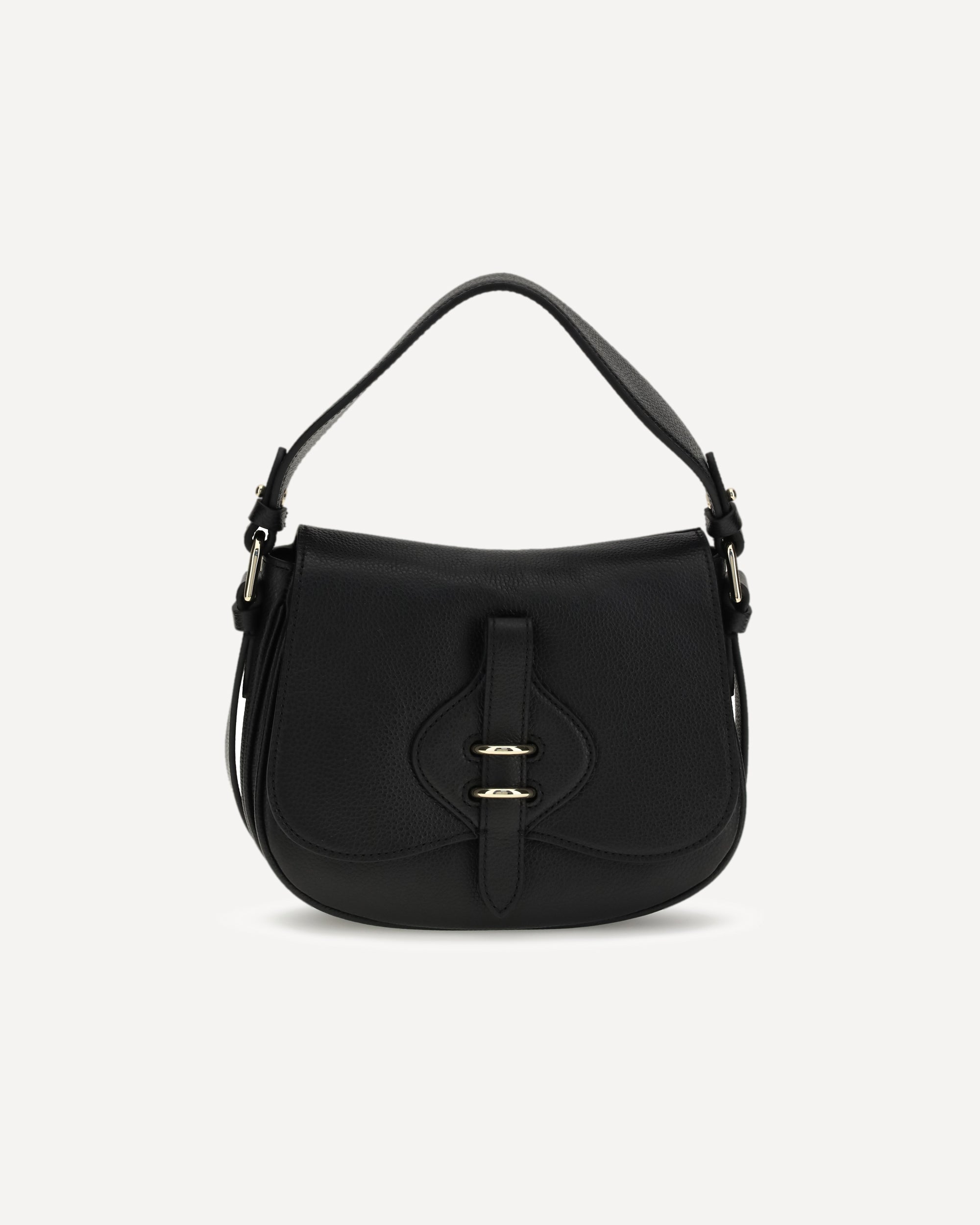 The small Mavery Shoulder Bag by Coccinelle is made of micrograin leather and features a practical magnet closure. It can be carried either by hand, thanks to the removable handle, or over the shoulder, via the removable and adjustable leather shoulder strap. The interior is organized into two compartments, offering order and functionality. The light gold electroplating and gold stamp logo complete the design with a bright and contemporary elegance.