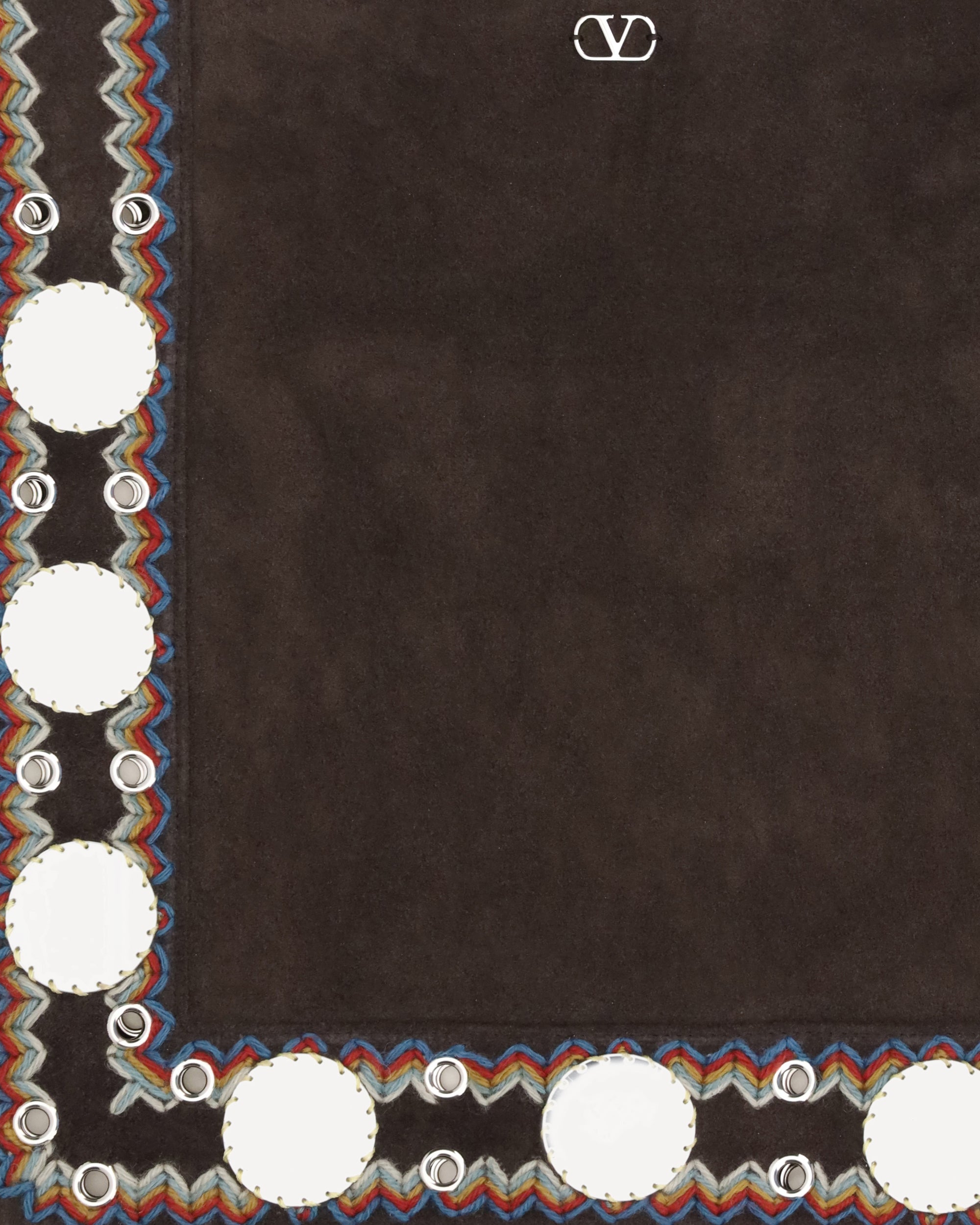 The Nellcôte shoulder bag by Valentino Garavani is made of soft suede and enhanced with elegant fringes, featuring a trim decorated with spherical studs and rivets that give it a unique character. Thanks to the adjustable suede shoulder strap, it can be comfortably worn either on the shoulder or cross-body, easily adapting to different occasions. The palladium-finish metal details and the small metal element with the VLogo Signature add a refined and distinctive touch to the accessory.