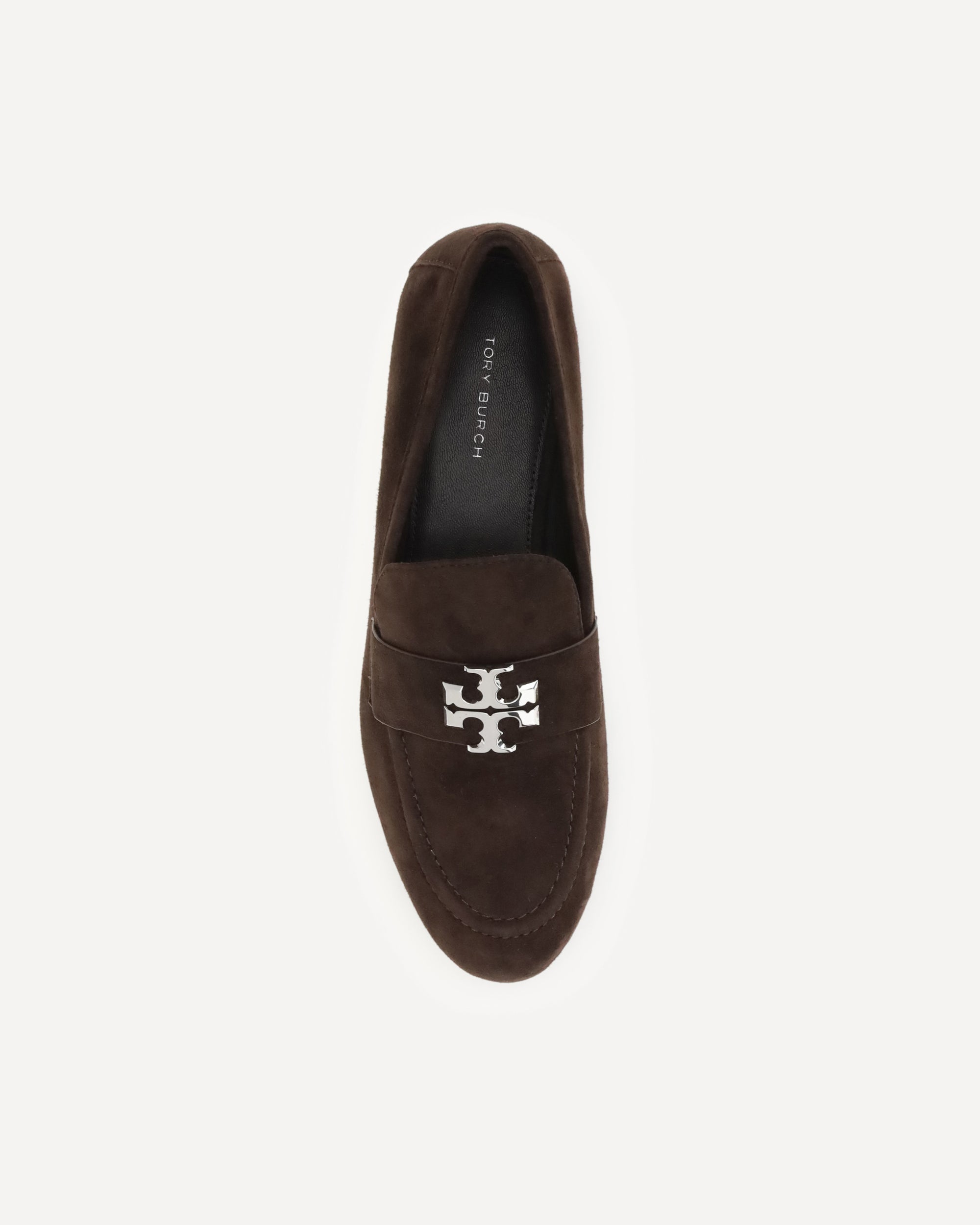 The Eleanor Loafers by Tory Burch are crafted from soft suede and feature the signature double T silver-tone hardware, an iconic brand detail. Elegant and refined, they combine classic style and comfort, making them perfect for both casual looks and more polished outfits. Their clean silhouette and meticulous finishing make them a versatile, chic accessory for everyday wear.