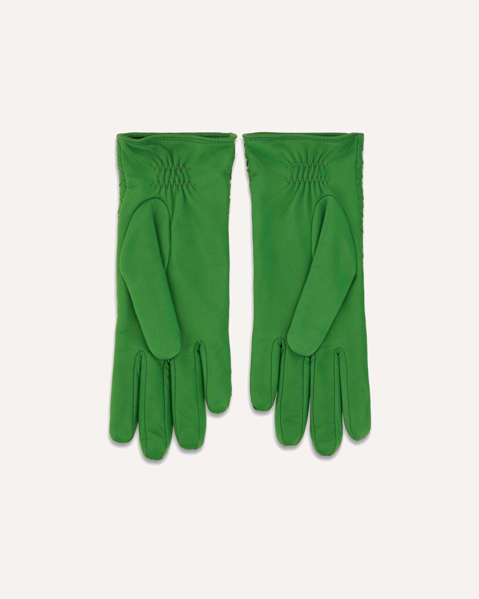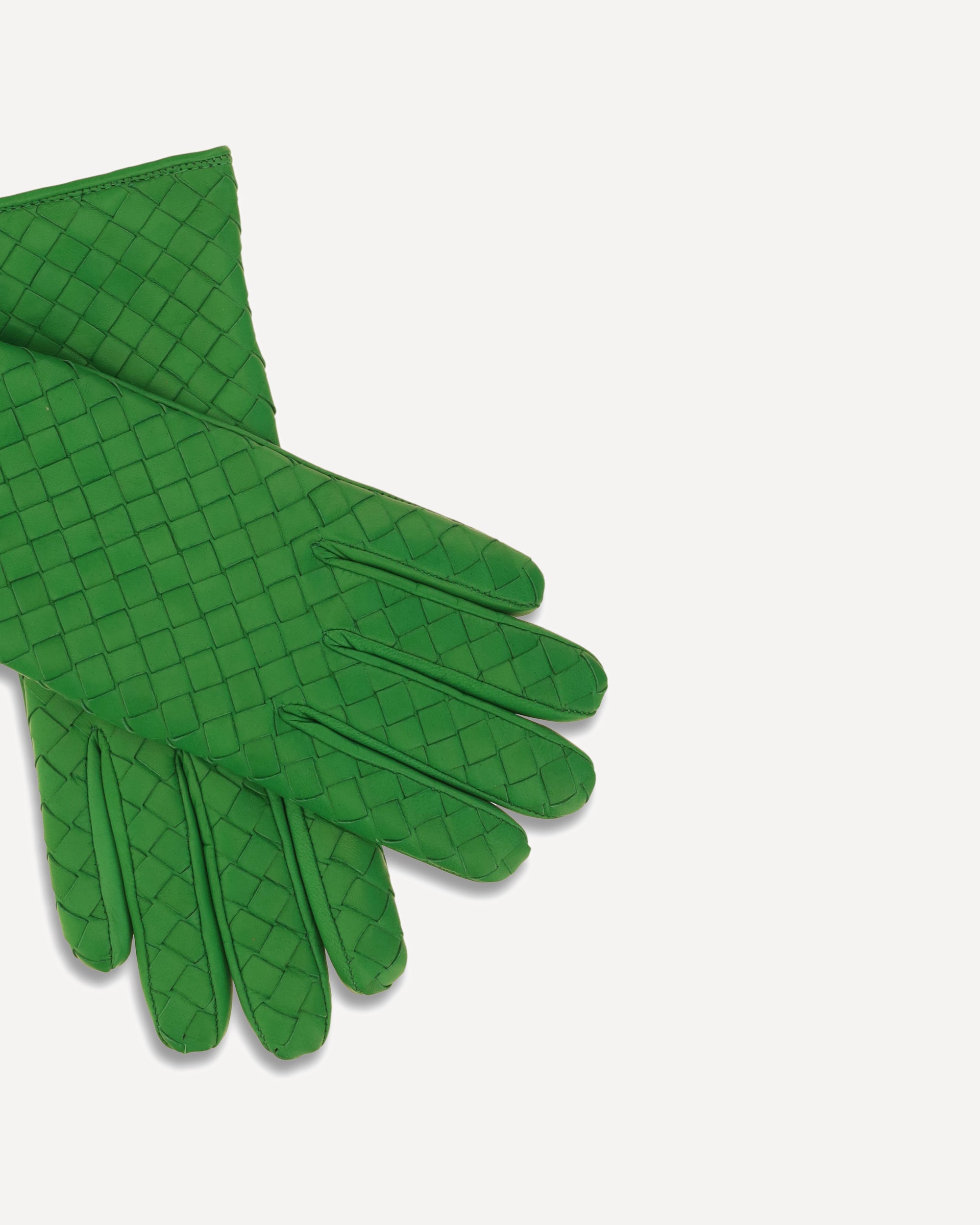 Lambskin leather Gloves by Bottega Veneta with iconic woven design on the back of the hands and slight elastic detail on the wrist for a comfortable and easy fit.