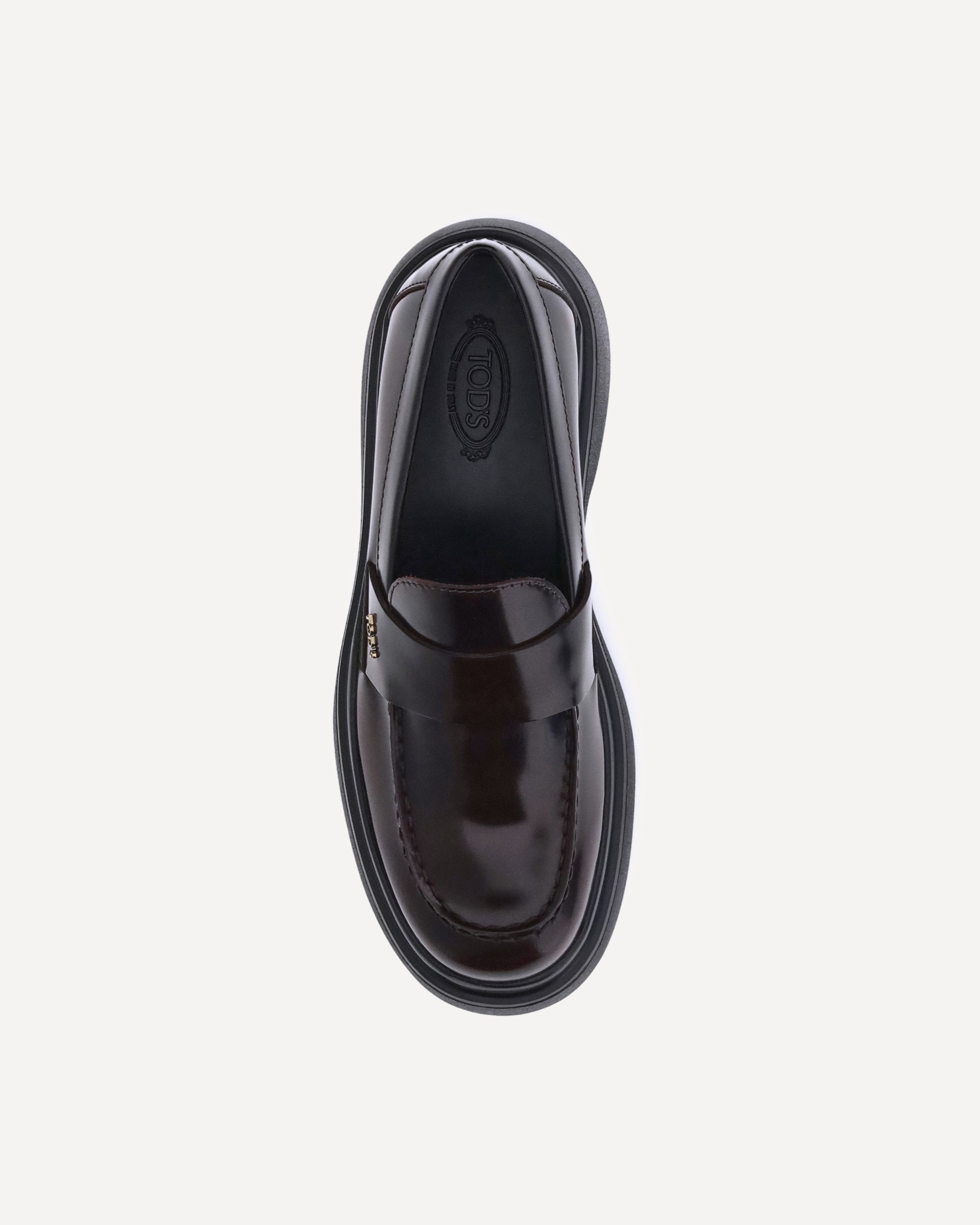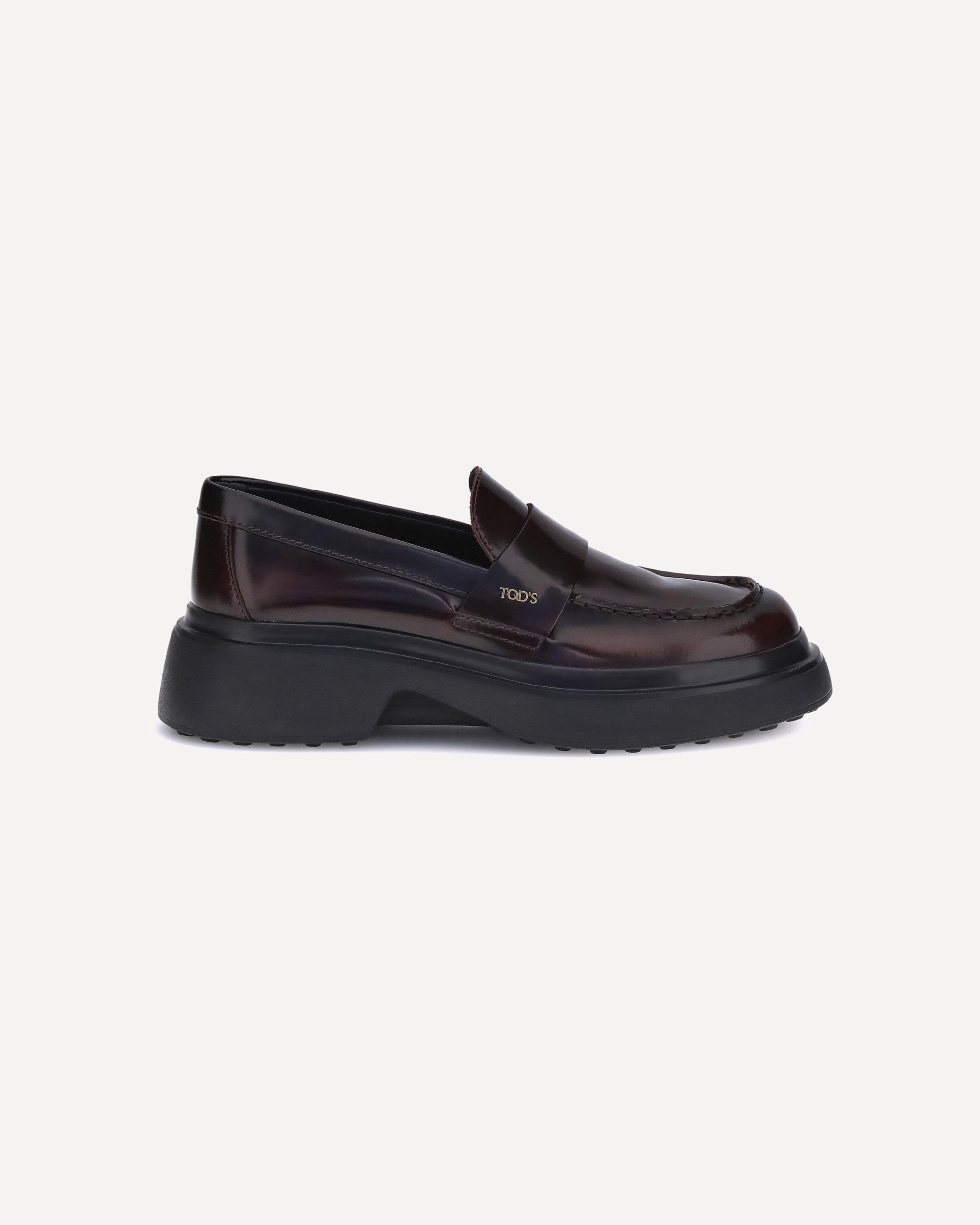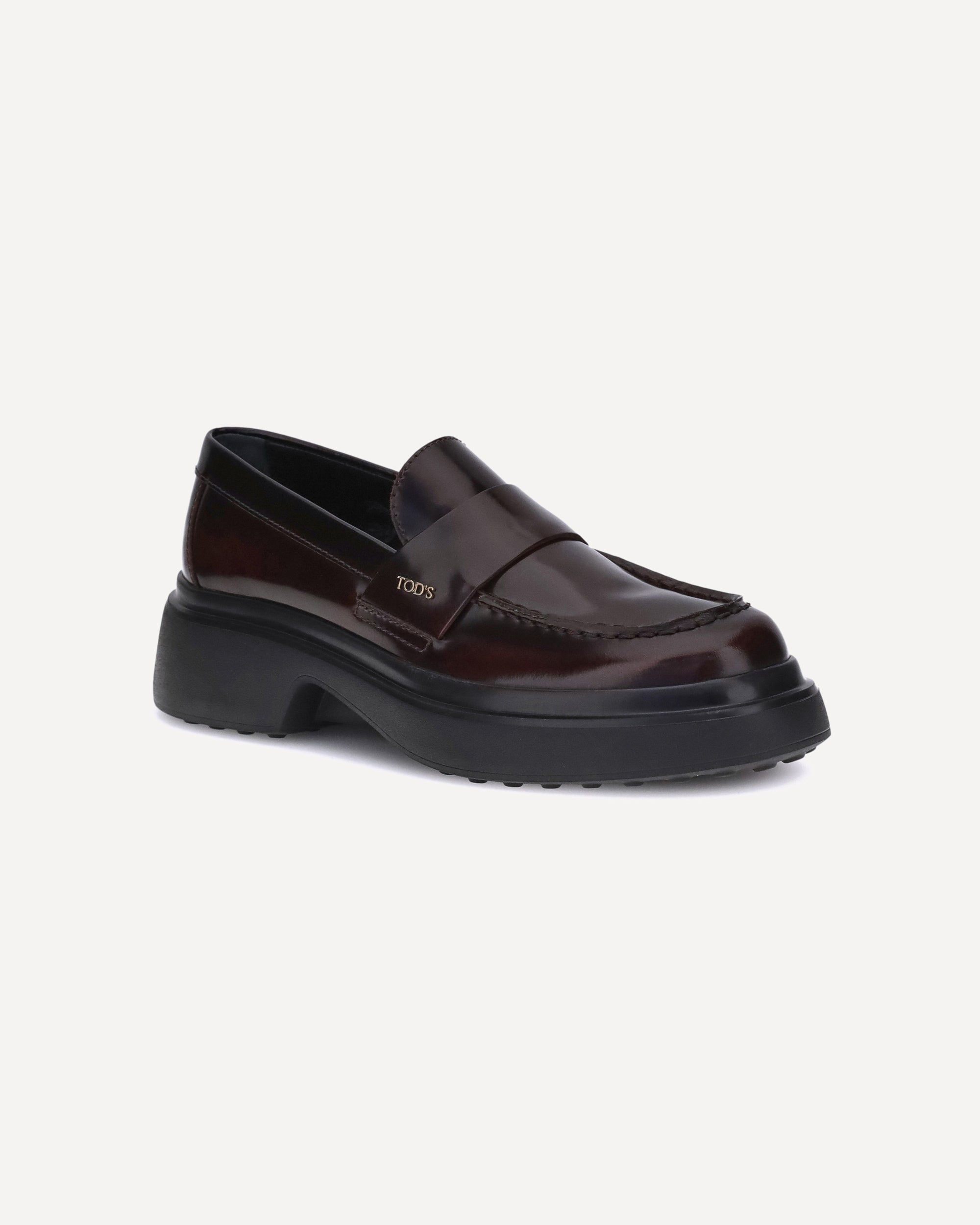 Tod's patent leather Loafers reinterpret a classic with a contemporary touch. Featuring a rubber platform sole that provides momentum and comfort, they have a rounded toe and a side logo plaque, a distinctive detail that elegantly signs the essential design of the model.