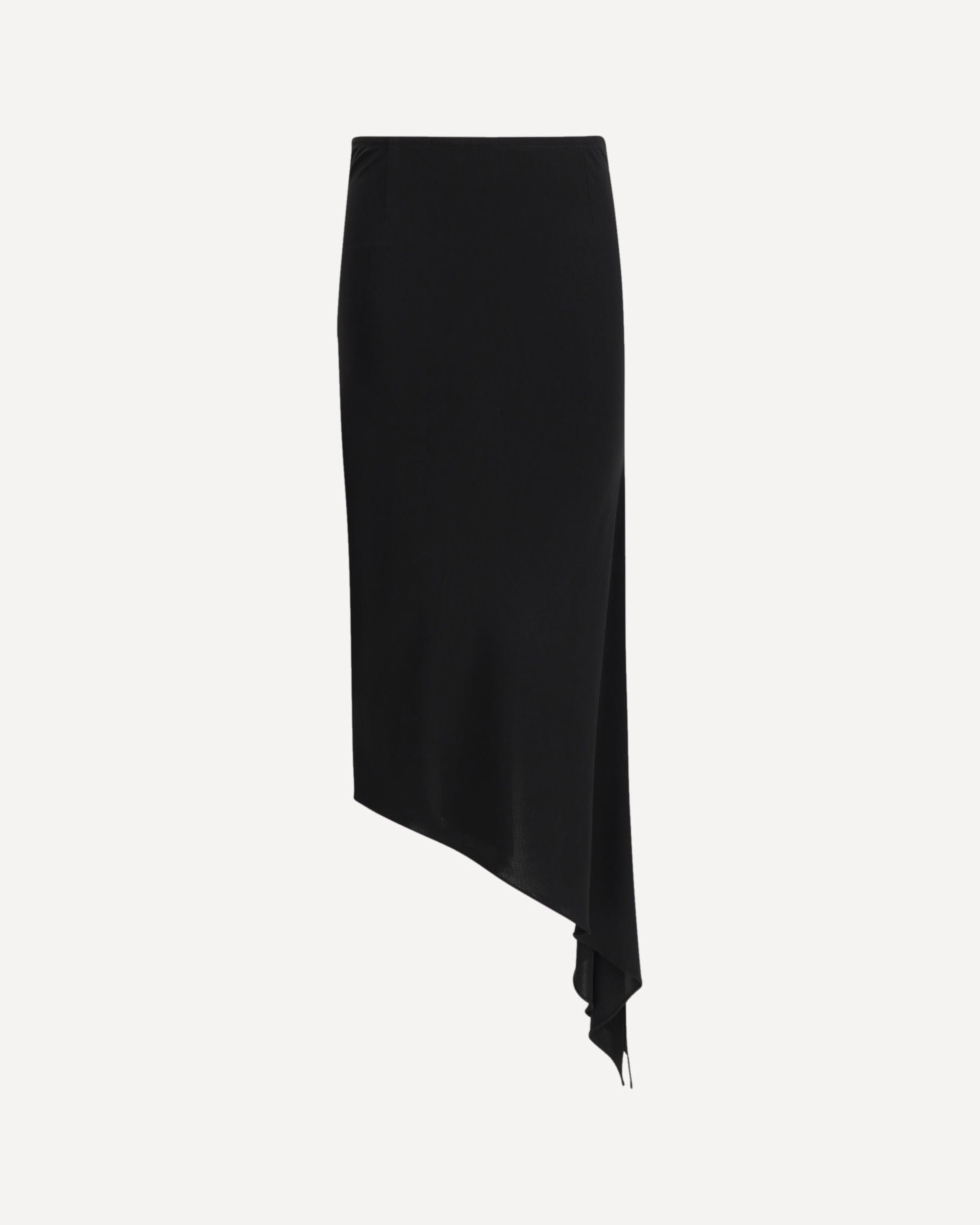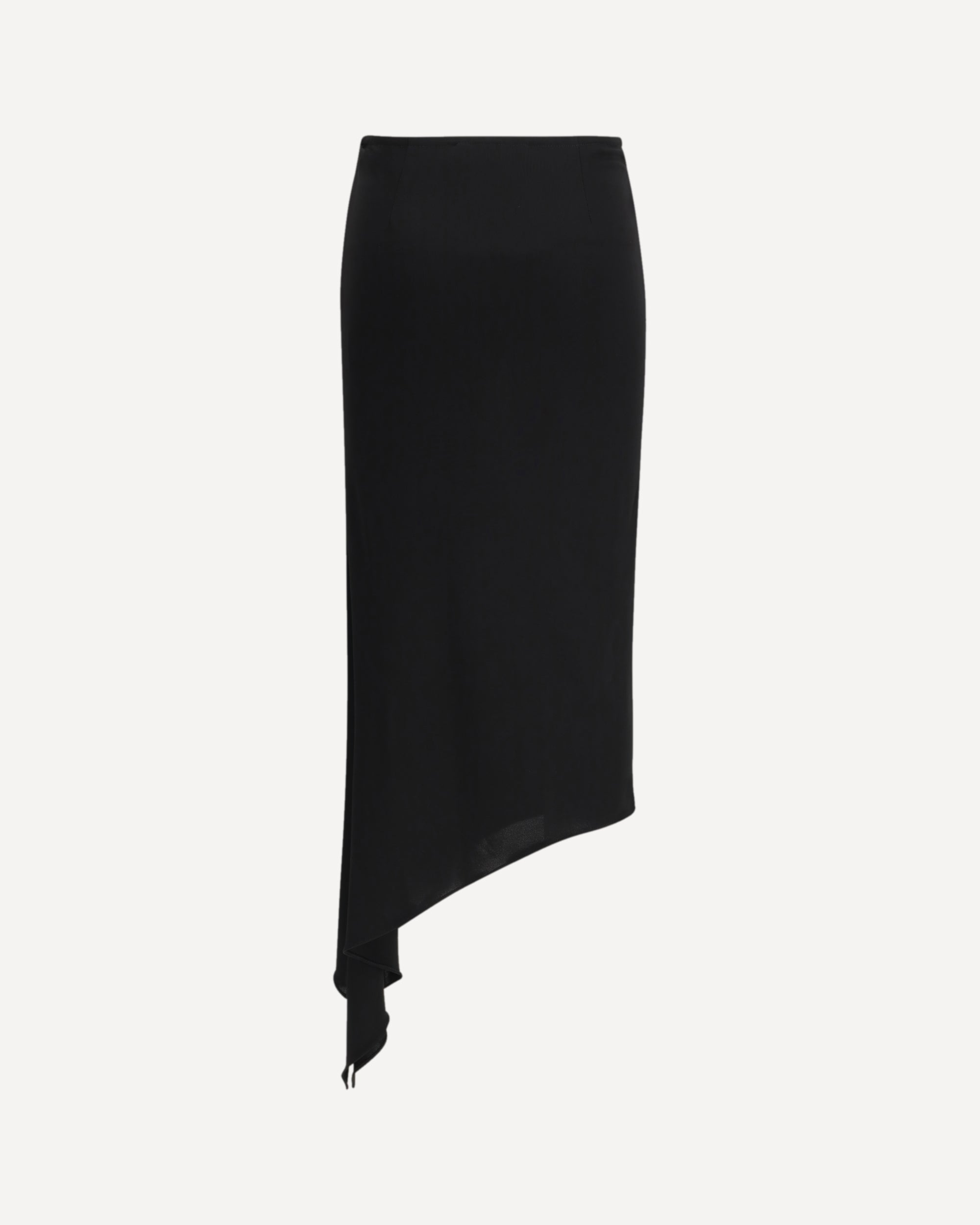 The pointed-slit Skirt by Francesco Murano plays with geometry and sheer contrasts. Crafted from lightweight Viscose with a subtle semi-sheer finish, it features an asymmetrical hemline that elongates the silhouette and adds dynamic movement. The sharp front slit introduces a bold and sensual accent, elevating a minimal design into a contemporary and refined style statement.