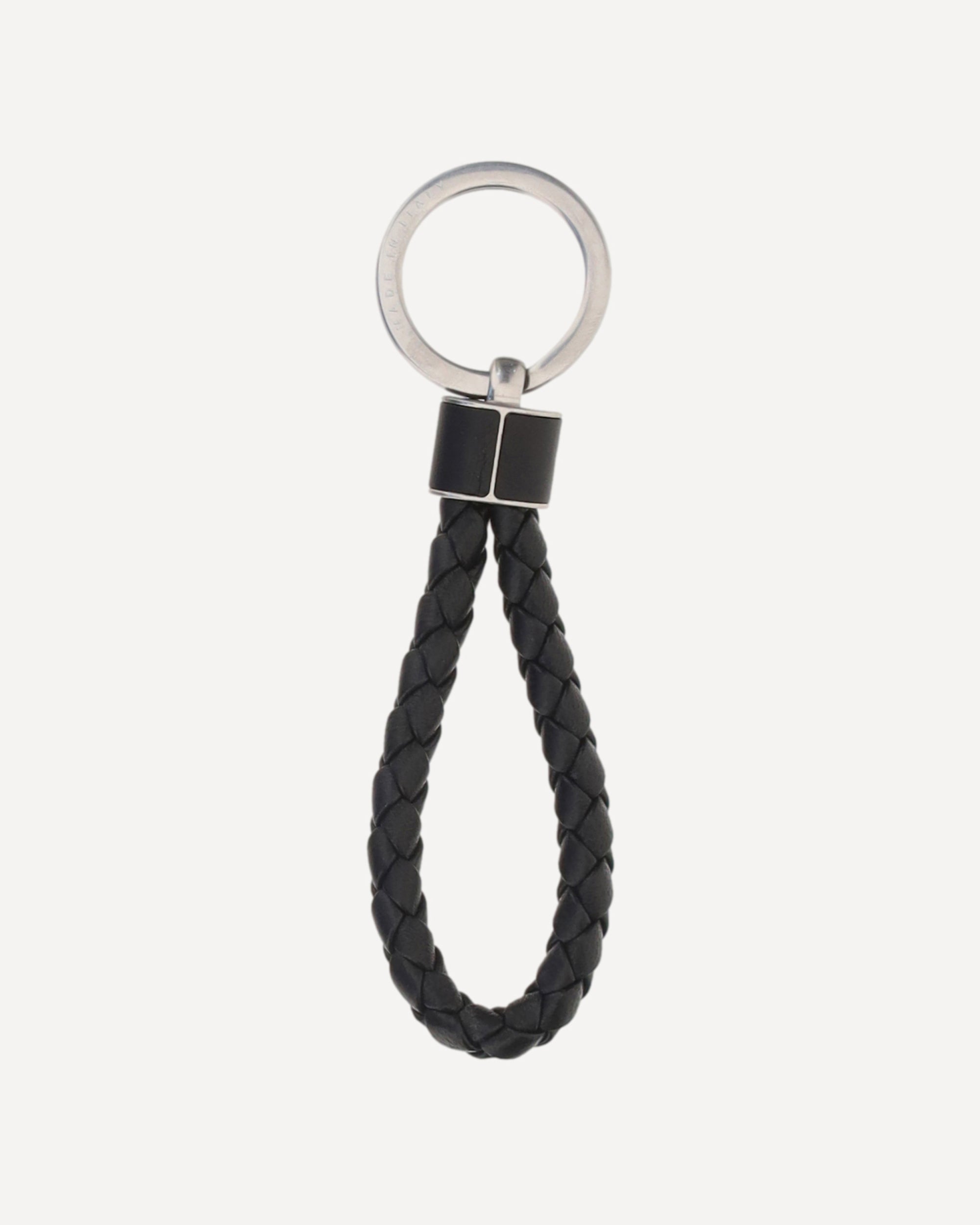 The leather Key Holder by Bottega Veneta combines elegance and functionality, with the iconic intrecciato motif and a sturdy metal ring. The hand-crafted leather pendant adds a distinctive and refined touch, expressing the brand's artisanal quality.