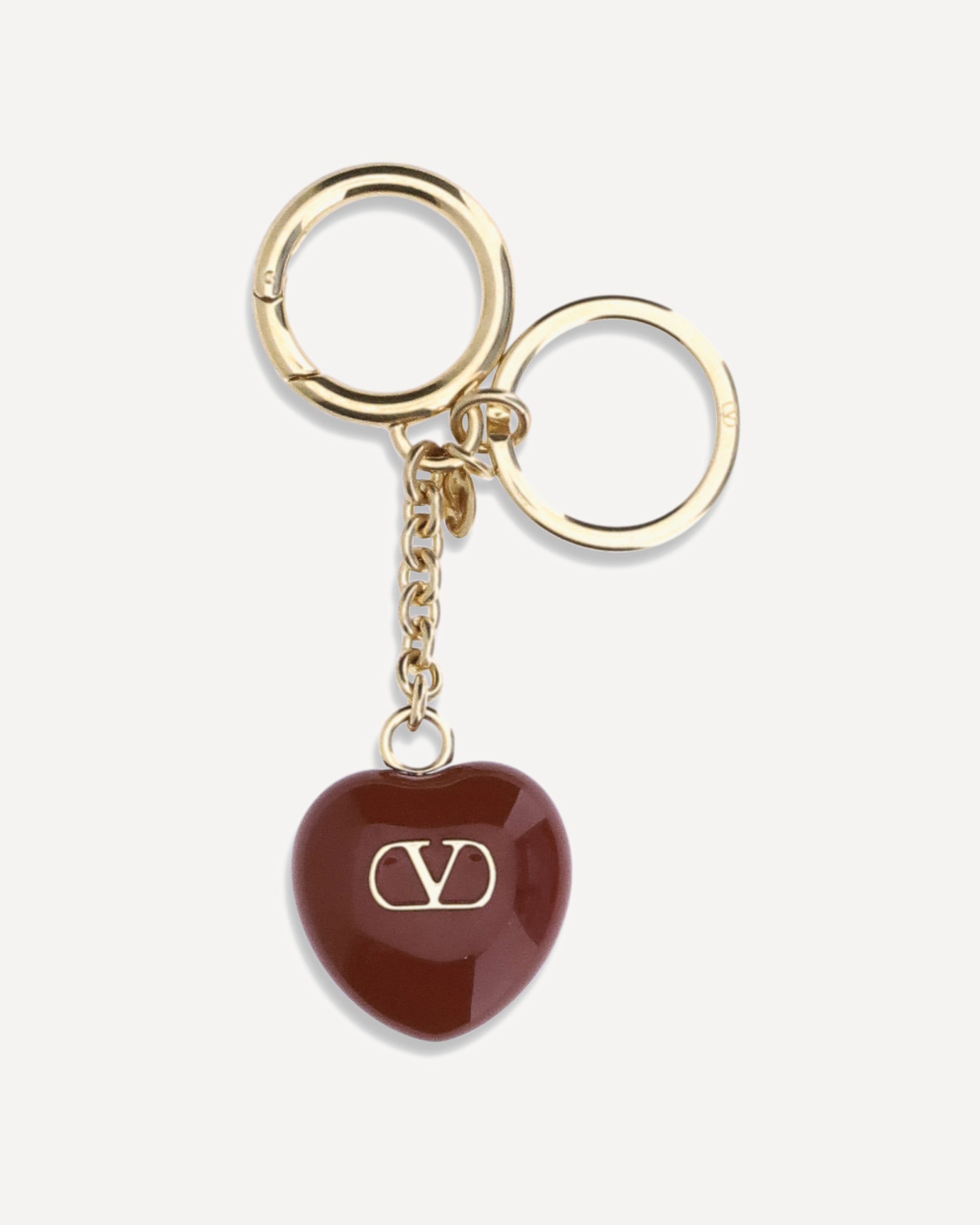 The Valentino Garavani Keychain features a durable double ring and a heart-shaped pendant embellished with the iconic contrasting VLogo. A stylish and functional accessory perfect for adding a touch of style to even everyday items.
