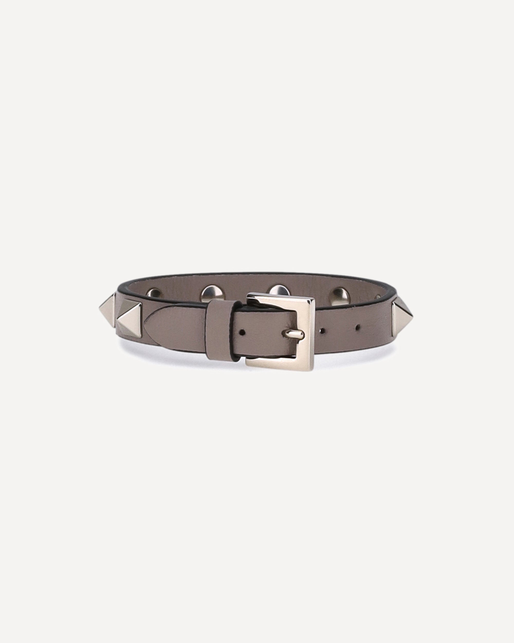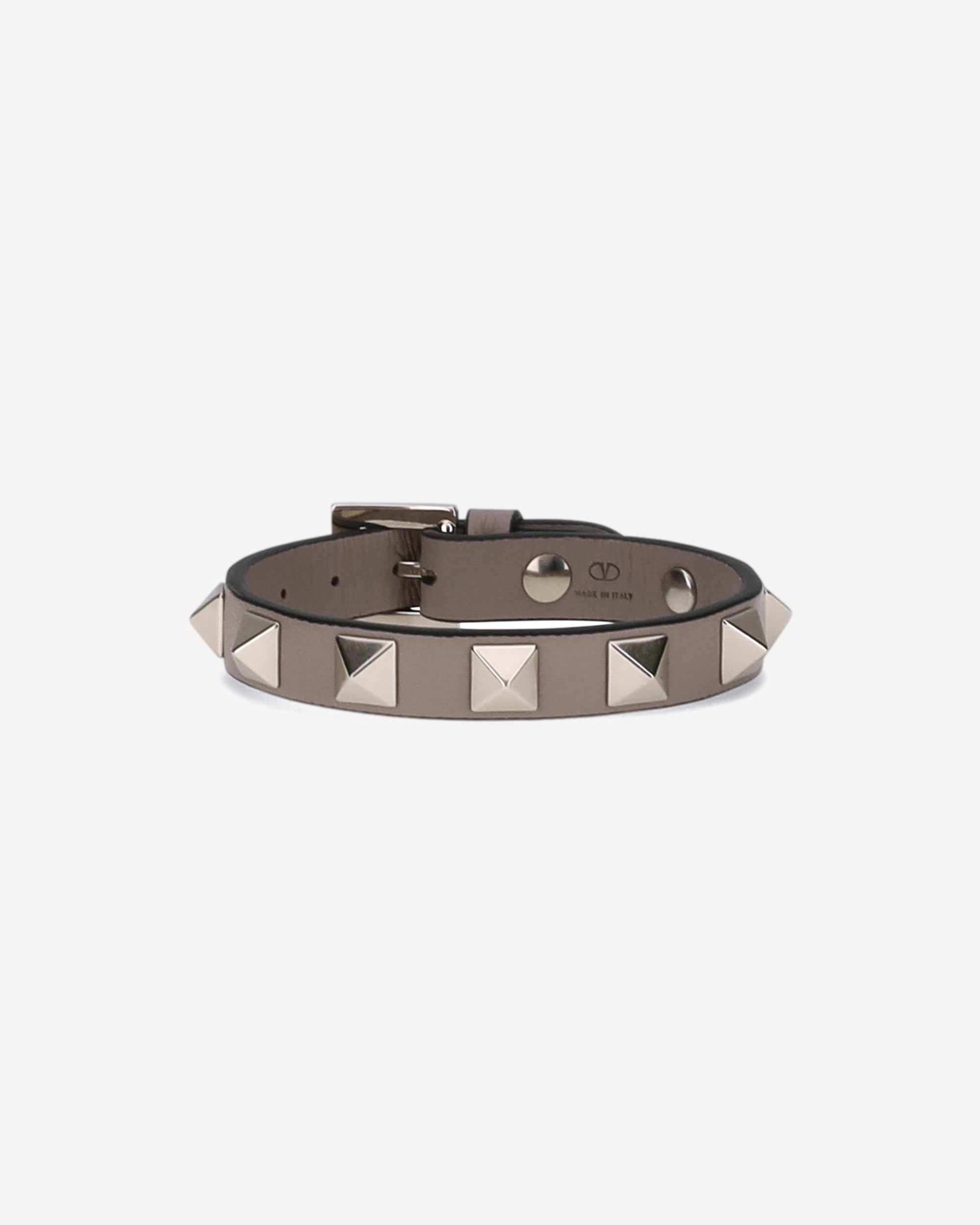 Valentino Garavani's Rockstud Bracelet features a leather design featuring iconic studs that enhance its rock-chic style. Adjustable and with a buckle closure, it is finished with the internal logo, a symbol of authenticity and quality.