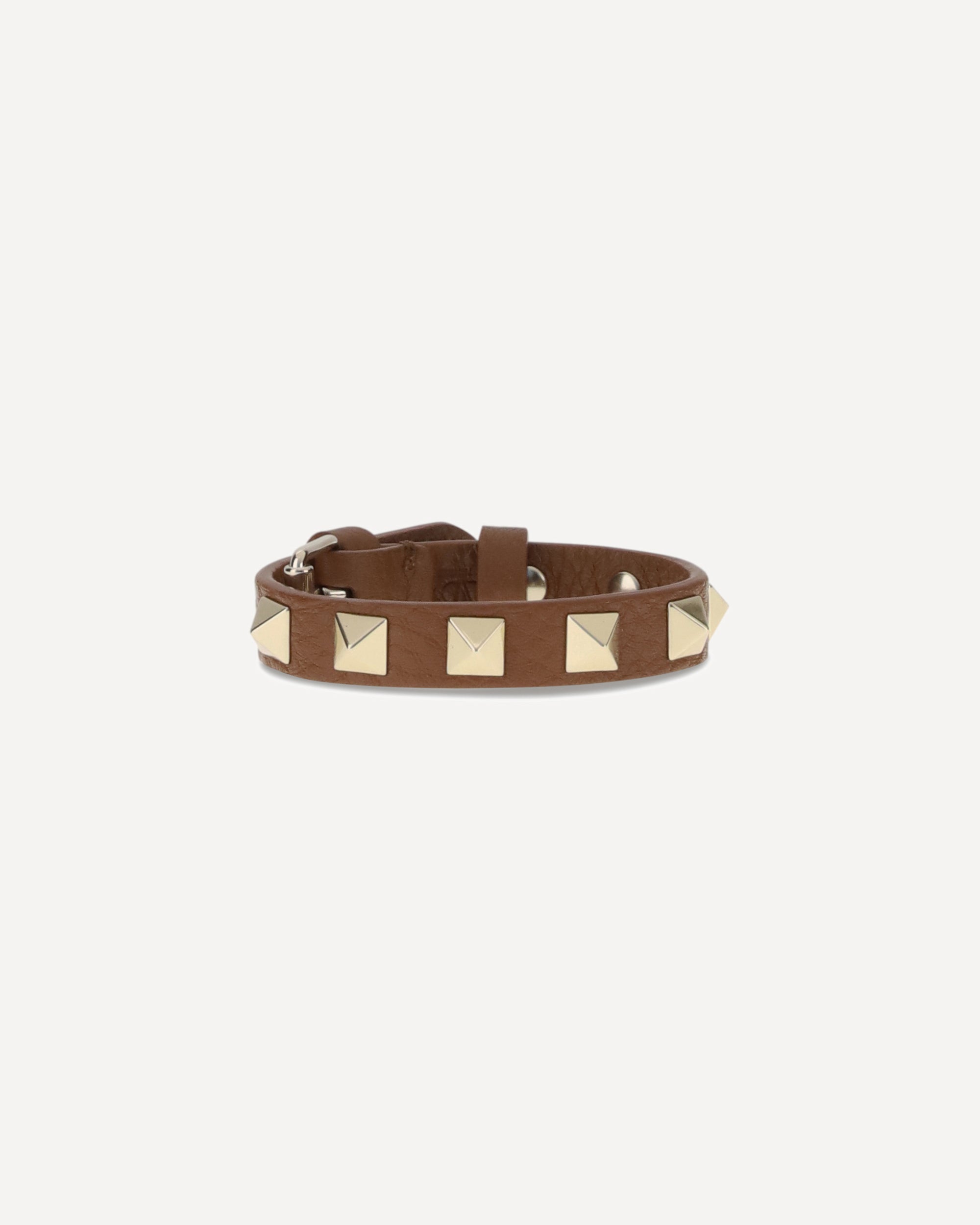 Valentino Garavani's Rockstud Bracelet features a leather design featuring iconic studs that enhance its rock-chic style. Adjustable and with a buckle closure, it is finished with the internal logo, a symbol of authenticity and quality.