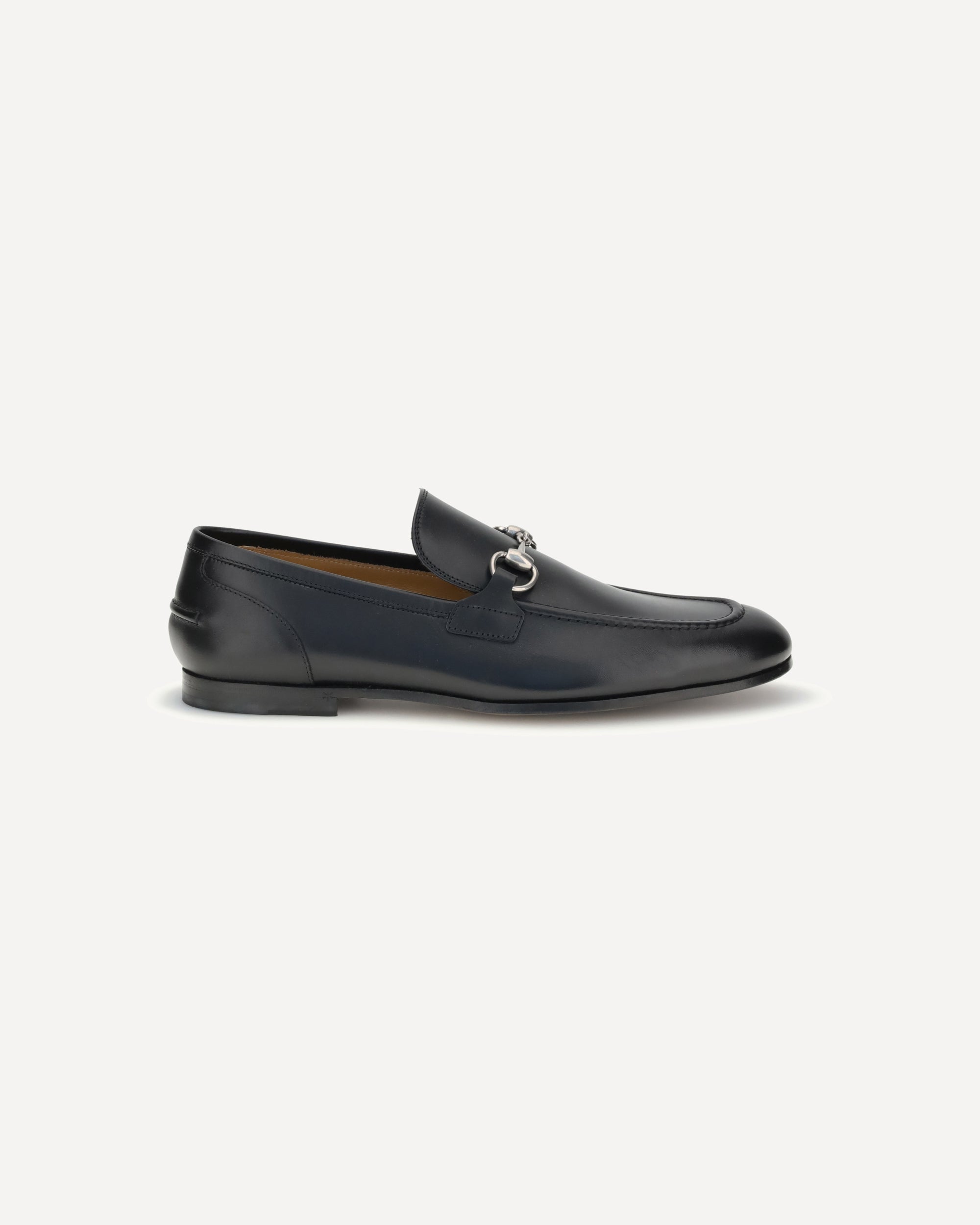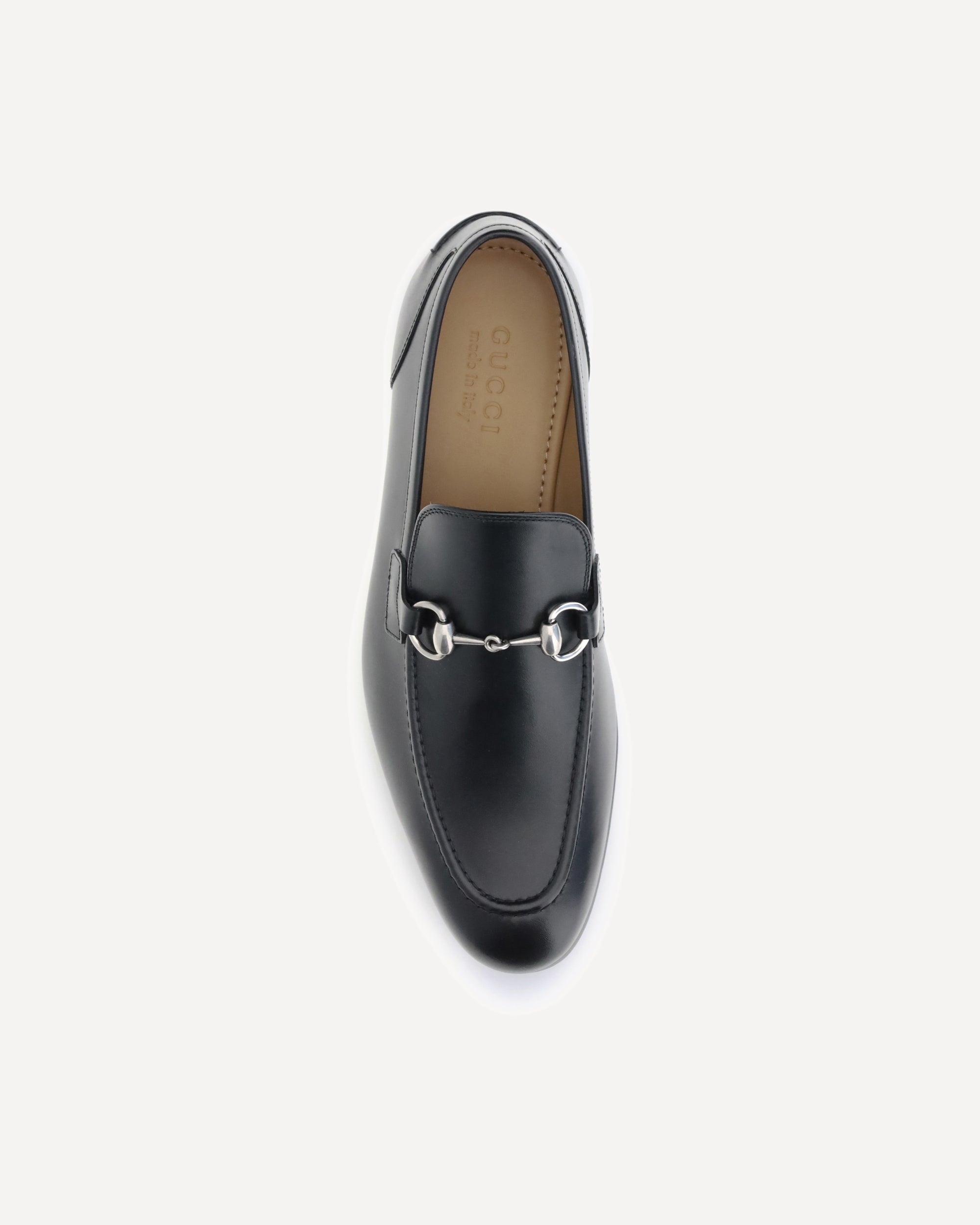 Gucci's smooth leather Jordan Loafers are a timeless classic, embellished with the iconic metallic Morsetto detail on the instep. Featuring a round toe and an elegant silhouette, they feature the logo embossed on the inside, a symbol of the brand's refined craftsmanship. An essential and sophisticated model, perfect for completing formal and casual looks.