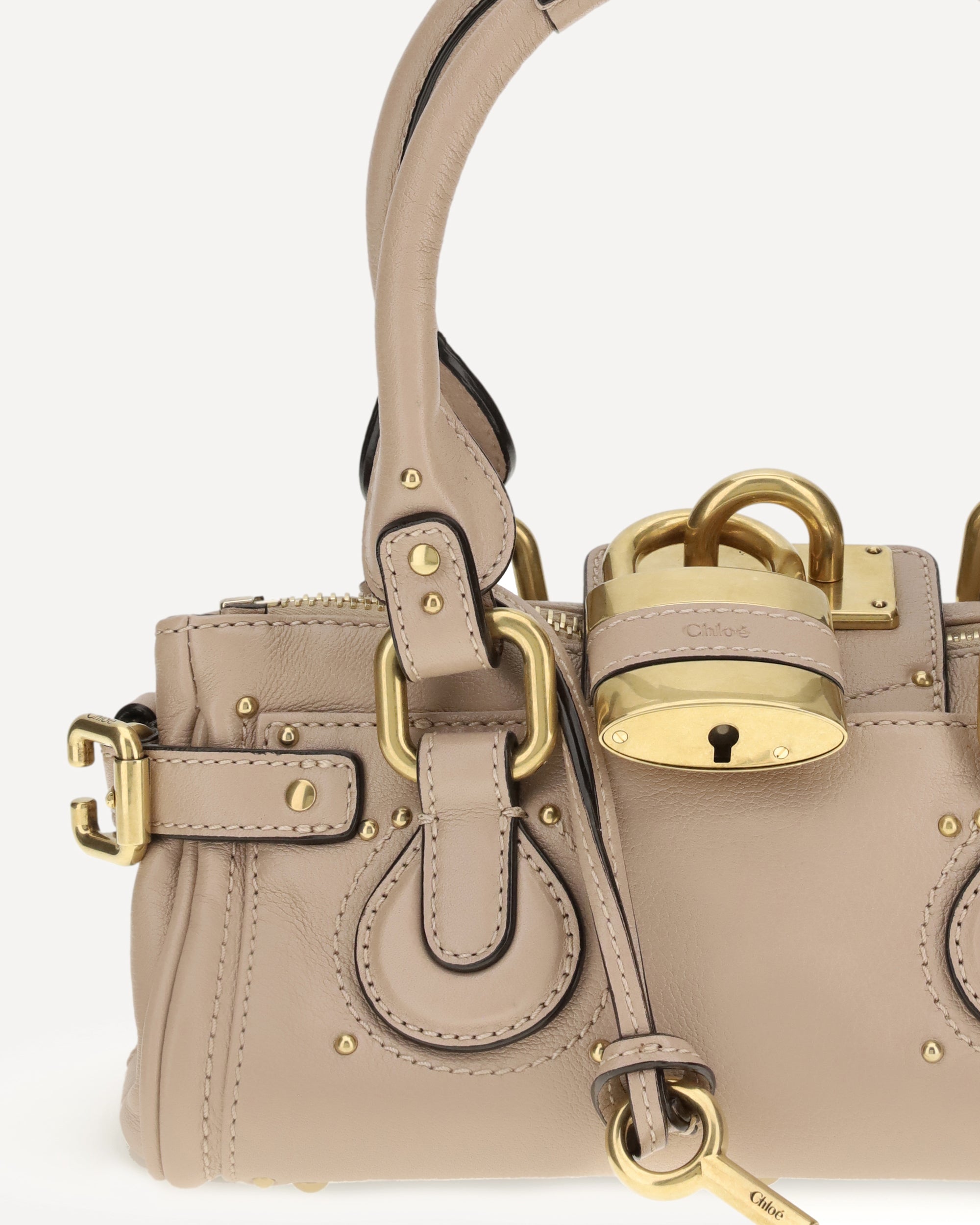 The Paddington small Shoulder Bag by Chloé in garnet leather is a more compact and lightweight version of the original, designed for those seeking practicality without sacrificing style. Its unique zipper, which makes it easy to open, is flanked by an oversize padlock and C-shaped buckles, distinctive details that lend an iconic touch to the design. Inside, the bag is thoughtfully organized, offering a main compartment, a flat front pocket, a back pocket, and an interior zippered pocket for neat storage. The zippered closure provides security
