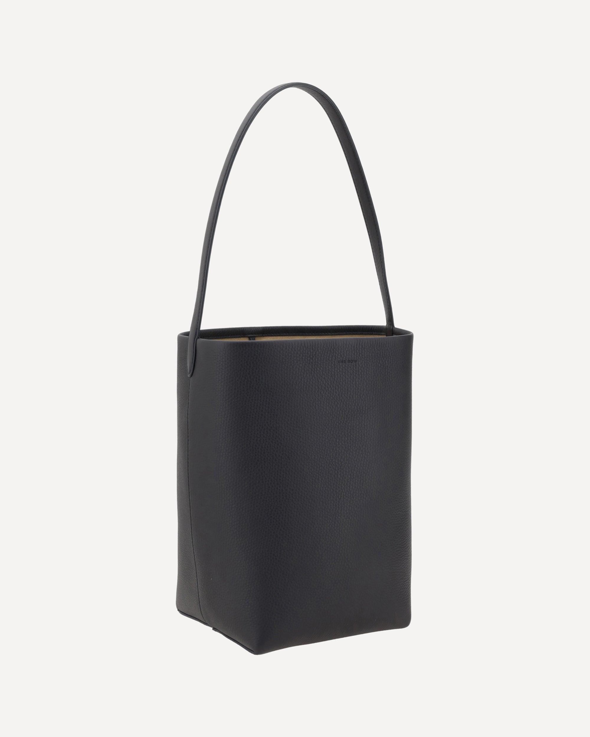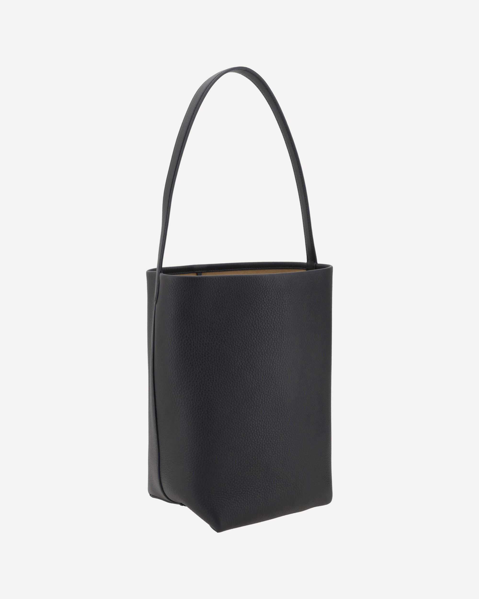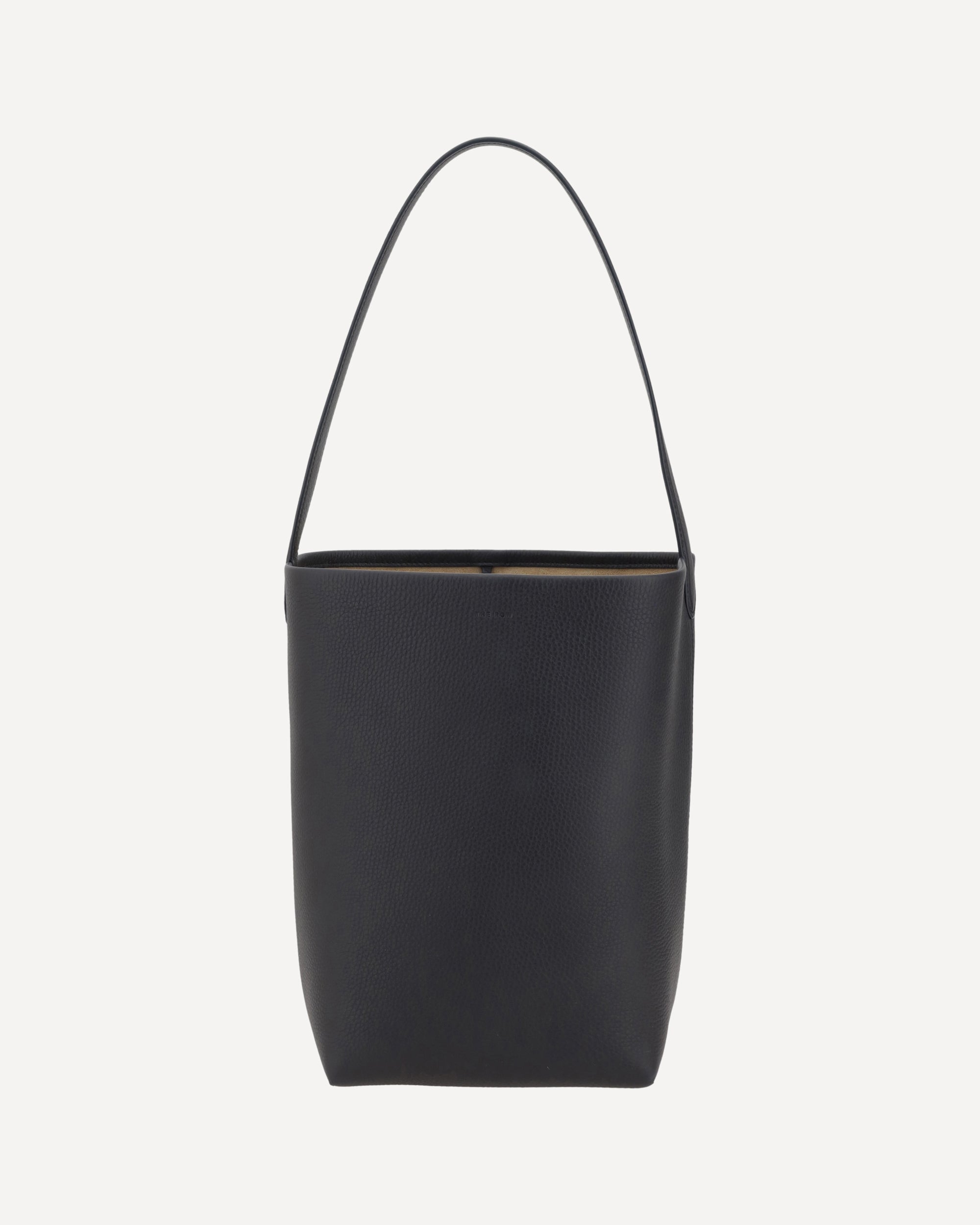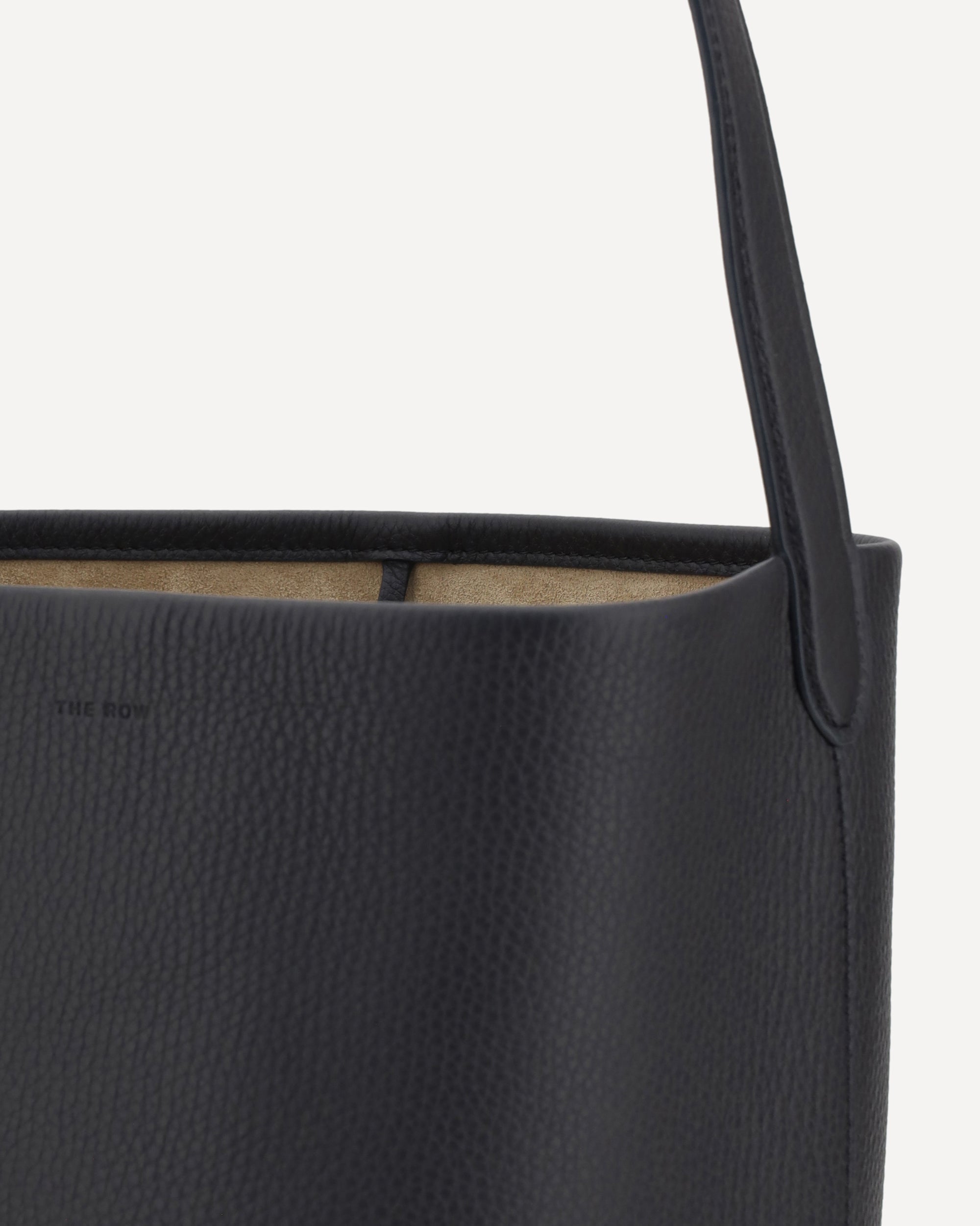 The Park medium leather Tote Bag by The Row is an elegant and refined accessory. Crafted from grained leather, it features a single flat handle at the top for convenient carrying. The brand's iconic signature is press-stamped on the front, while the interior closure is by means of knotted ribbons, adding a sophisticated and functional touch. Perfect for a minimalist and chic look.