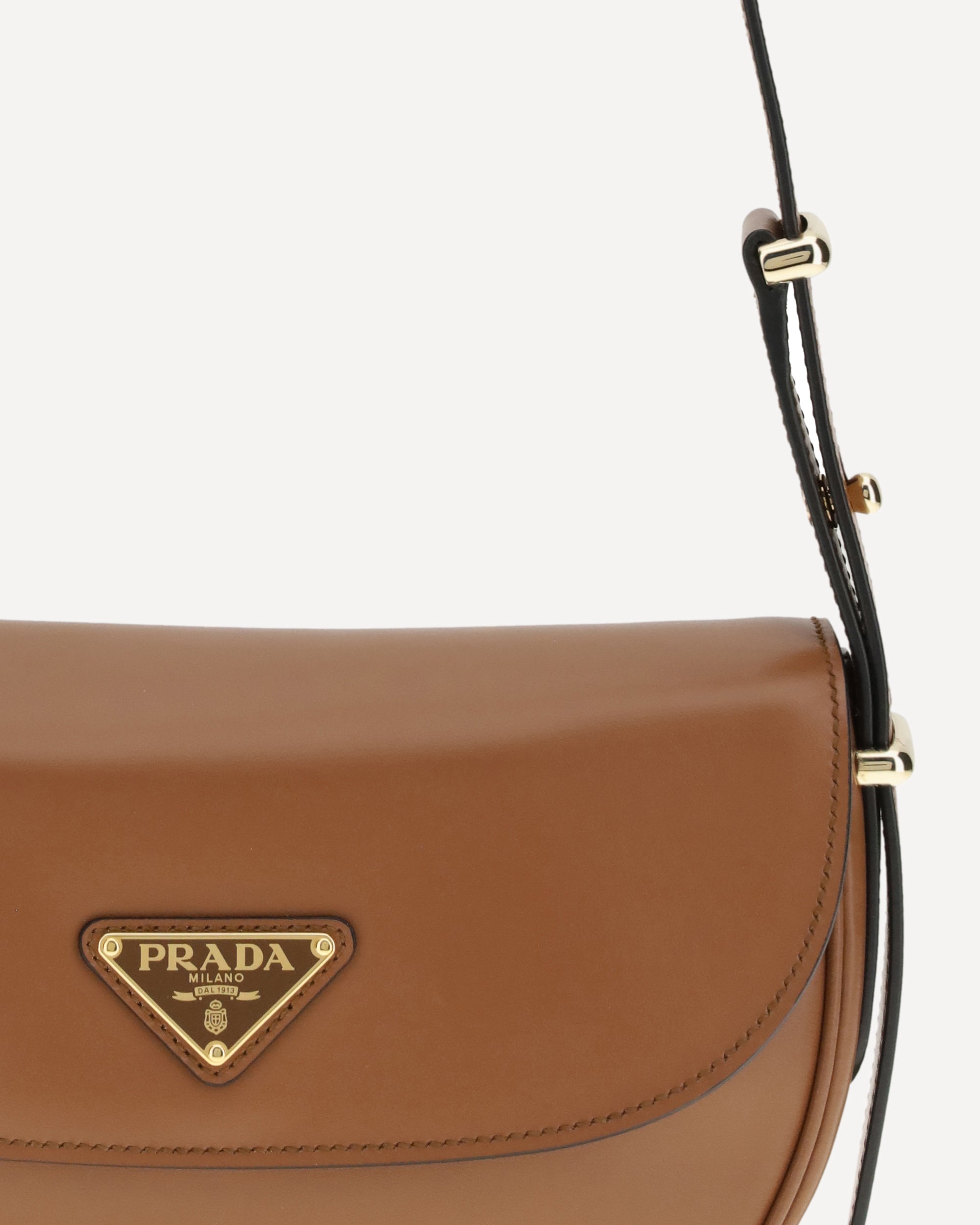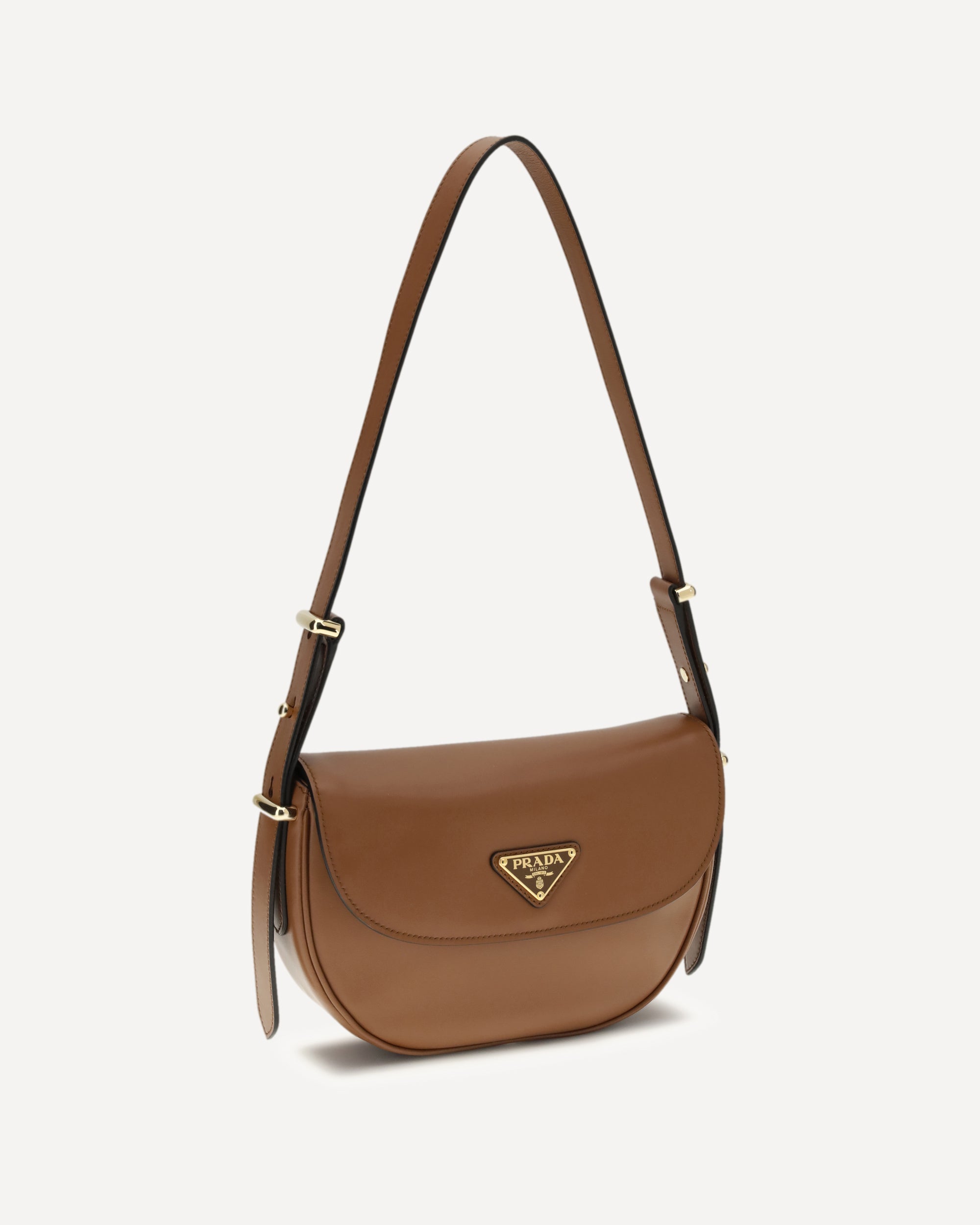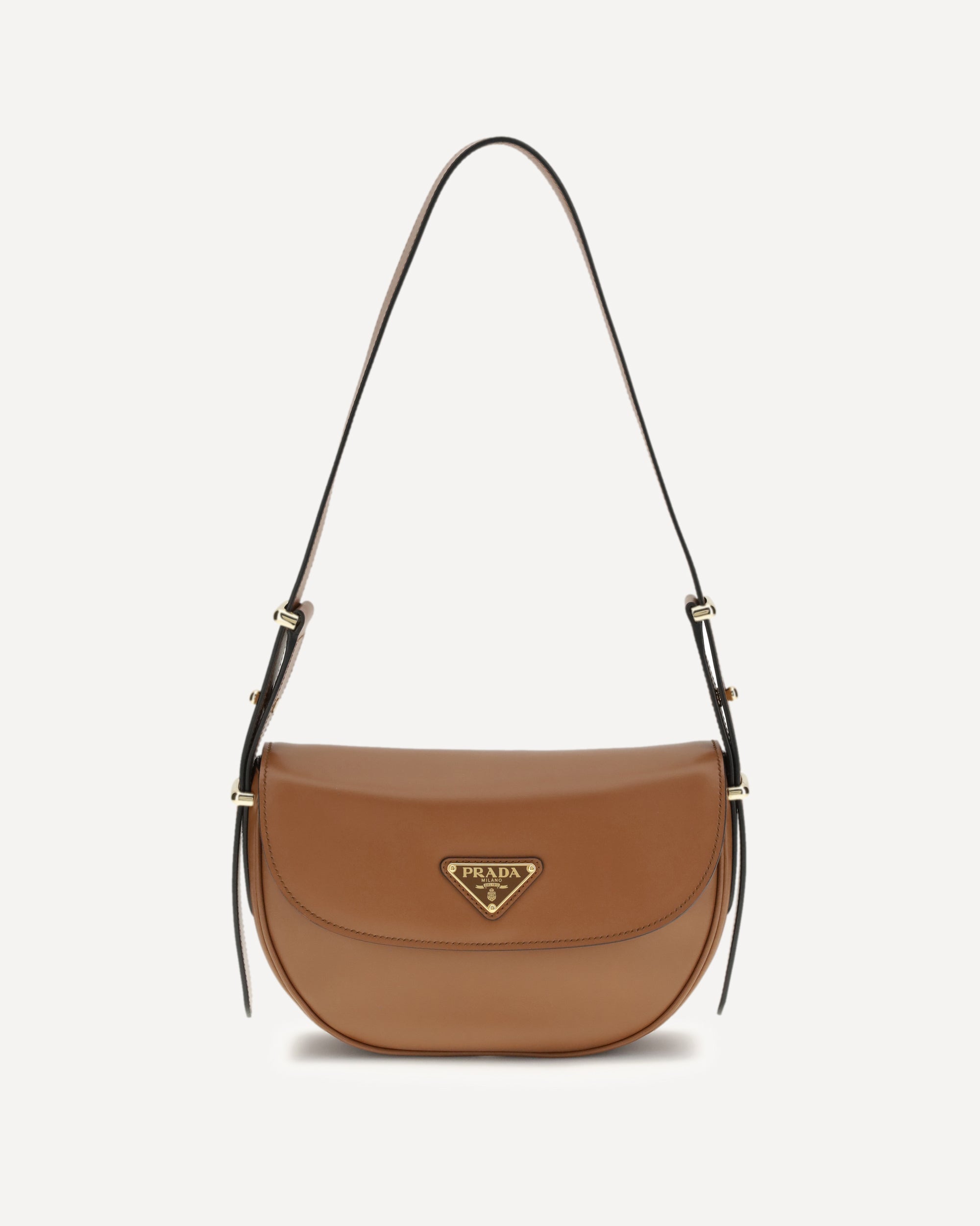 The leather Shoulder Bag is an elegant and versatile accessory perfect for completing any look with a touch of sophistication. The front closure with magnetic flap ensures practicality, while the iconic triangular logo applied on the front adds a distinctive and luxurious detail. The adjustable shoulder strap allows it to be worn with comfort, easily adapting to any need. Inside, a main compartment and back pocket provide ample space for essentials while maintaining order and functionality. A bag that combines aesthetics and practicality, ideal for any occasion.