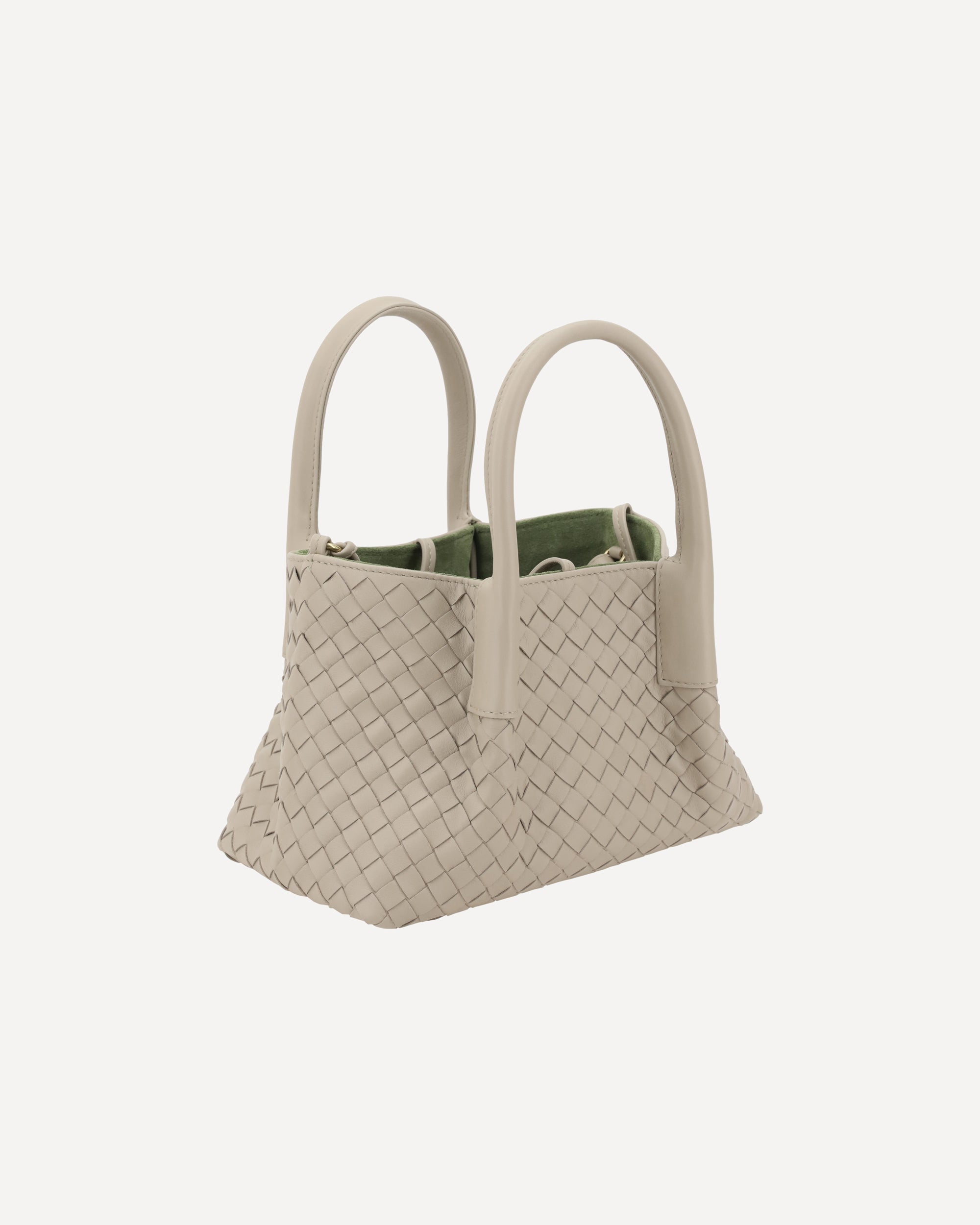 The Pinacoteca small Handbag by Bottega Veneta is a masterpiece of elegance and functionality. Featuring two tubular handles and an adjustable, removable shoulder strap, it offers versatility and comfort. The closure is made unique by four internal leather straps, while the removable internal zip pouch adds practicality and organization. The brand’s celebrated intrecciato motif, a symbol of craftsmanship and refinement, characterizes the bag’s design, making it a sophisticated and timeless accessory.