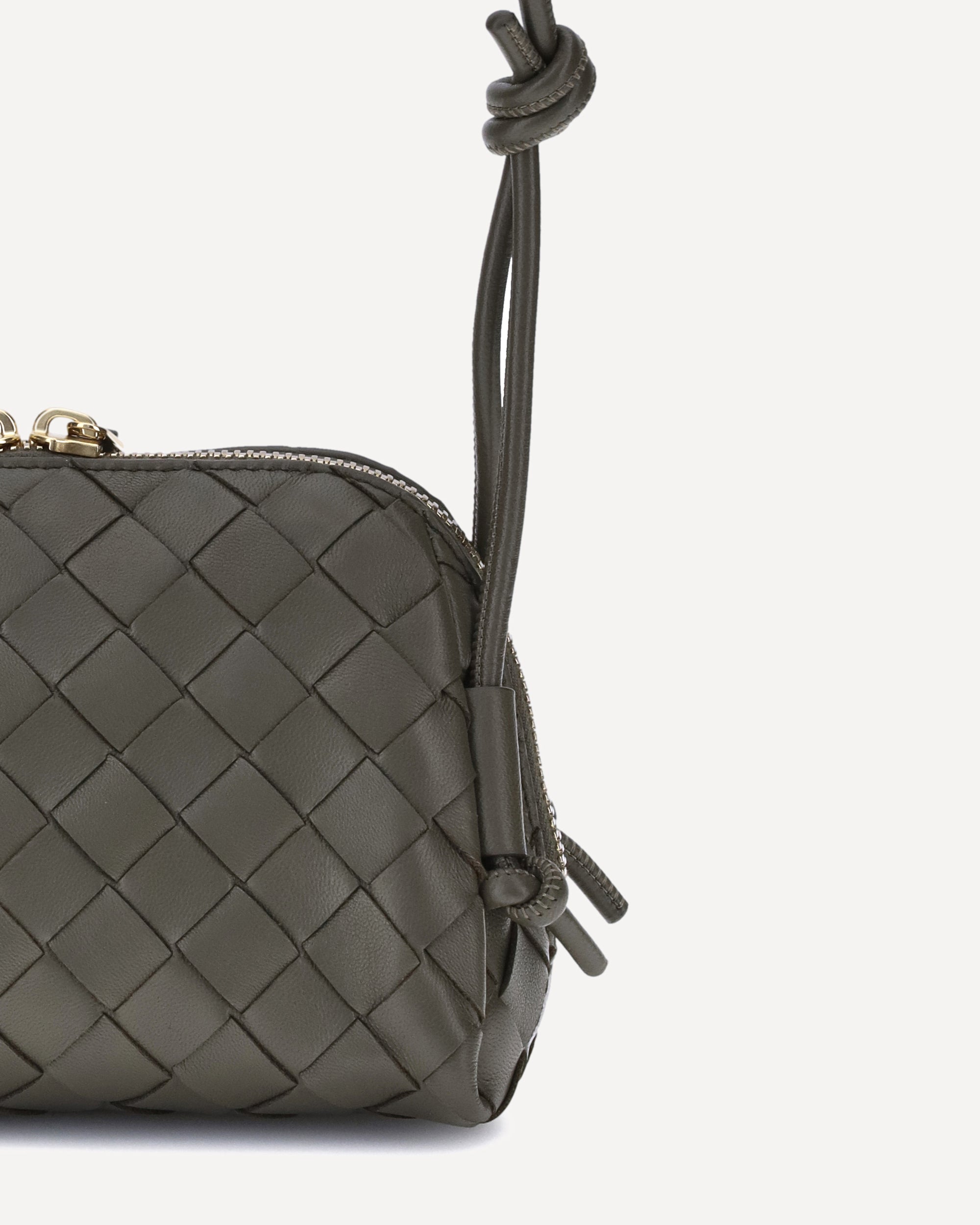 Concert Shoulder Bag by Bottega Veneta is made of fine leather and features the brand's iconic intrecciato weave design, repeated across the entire surface. The closure is with a double-slider zipper at the top, while the adjustable tubular shoulder strap, with movable knots, allows you to customize the length. Inside, a single compartment for easy and practical organization.